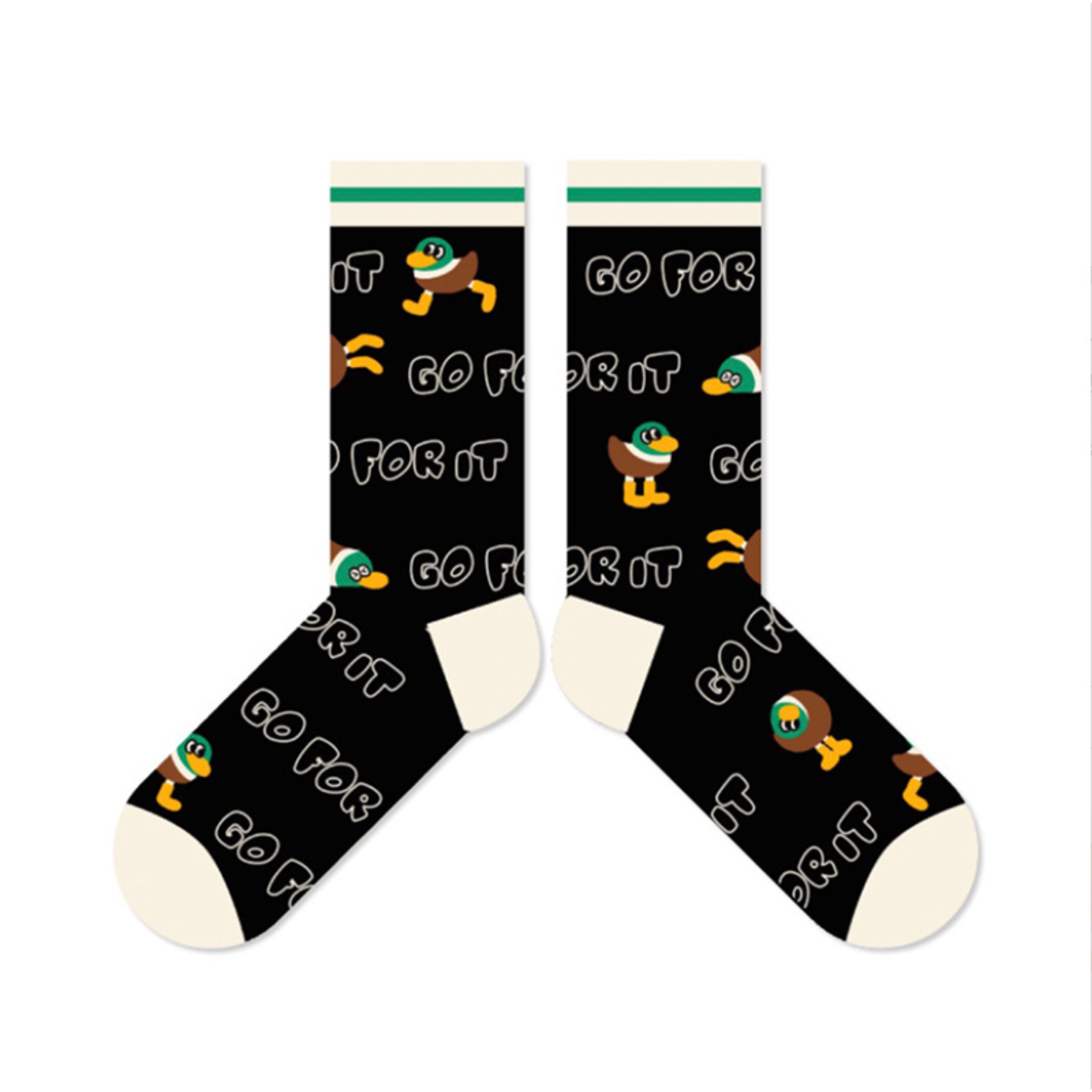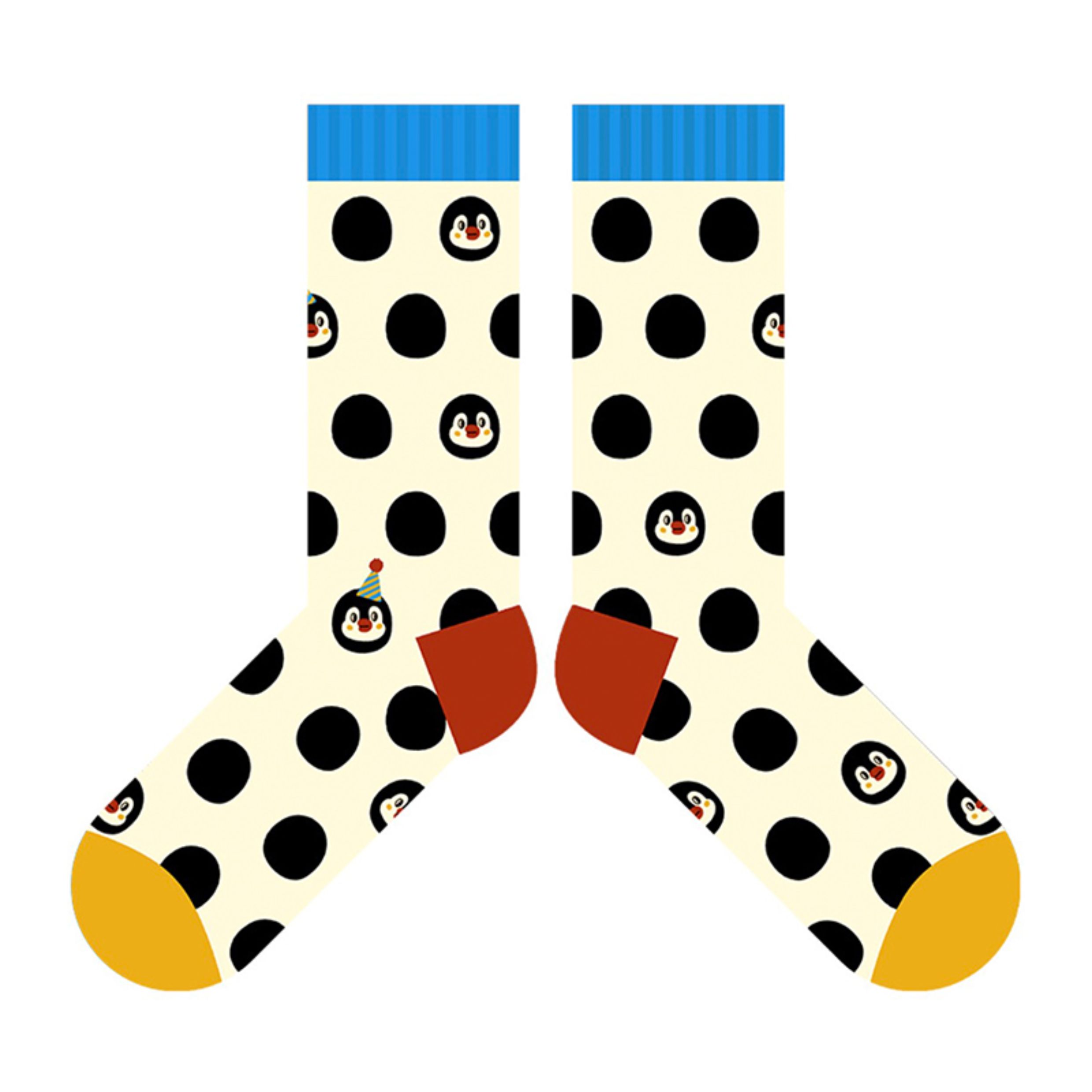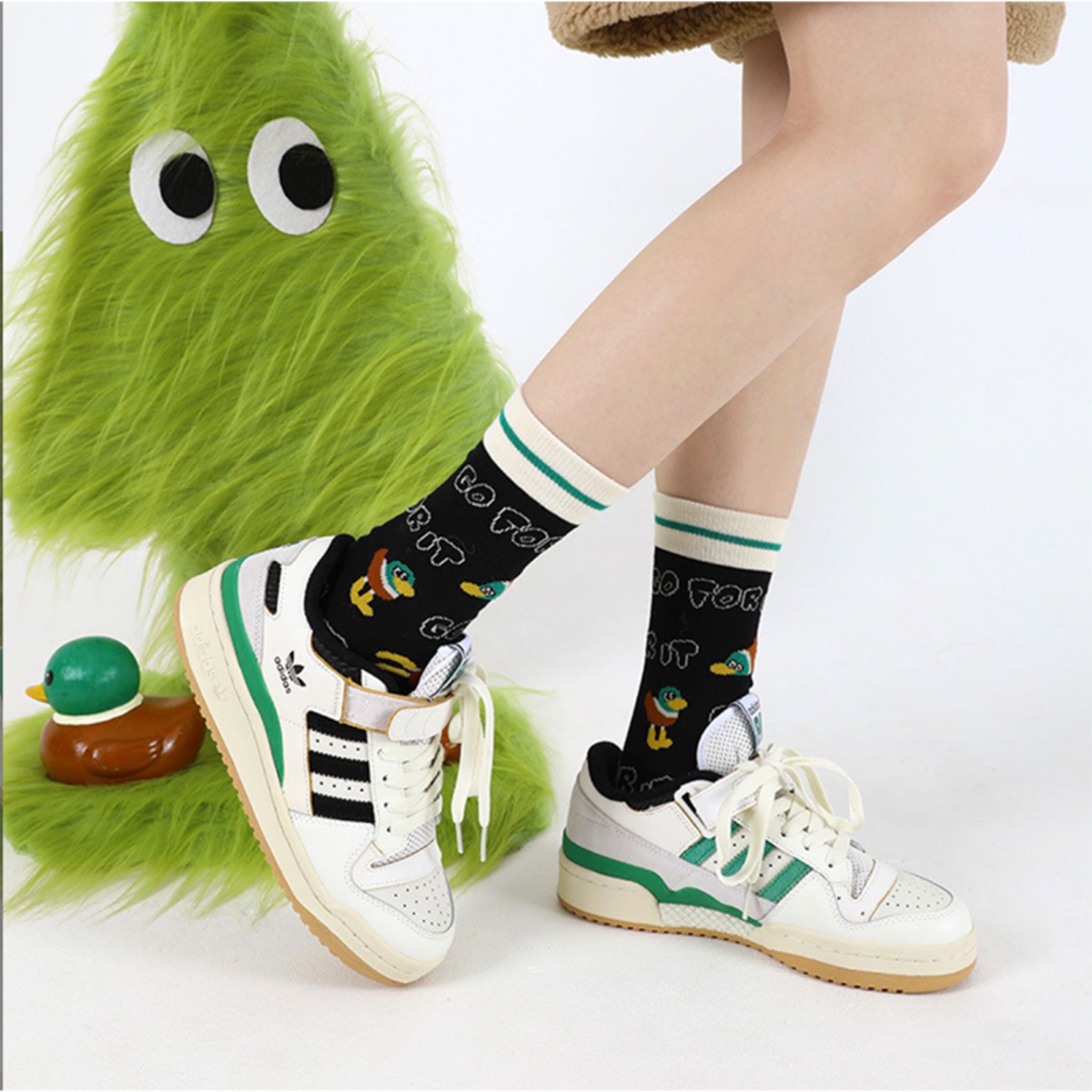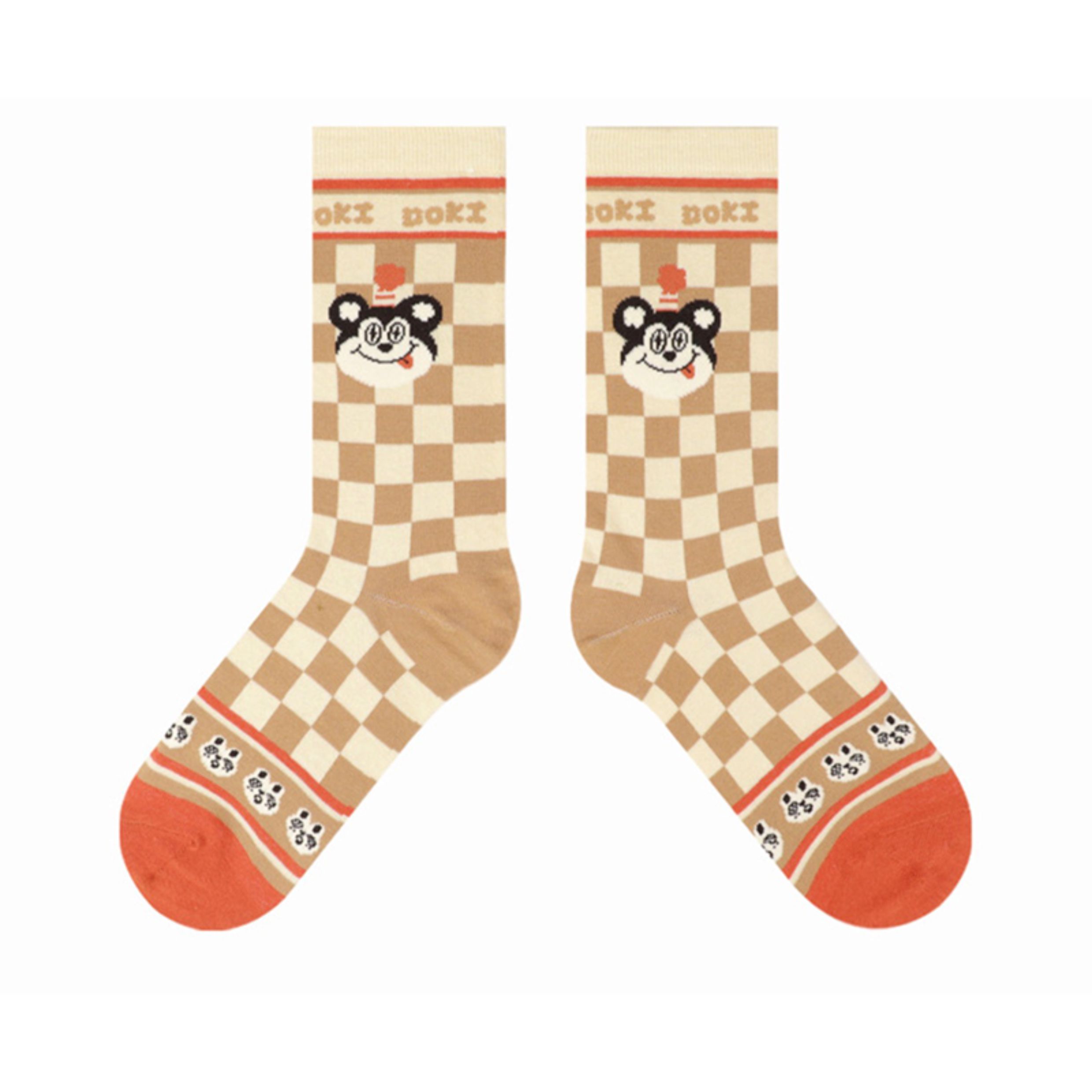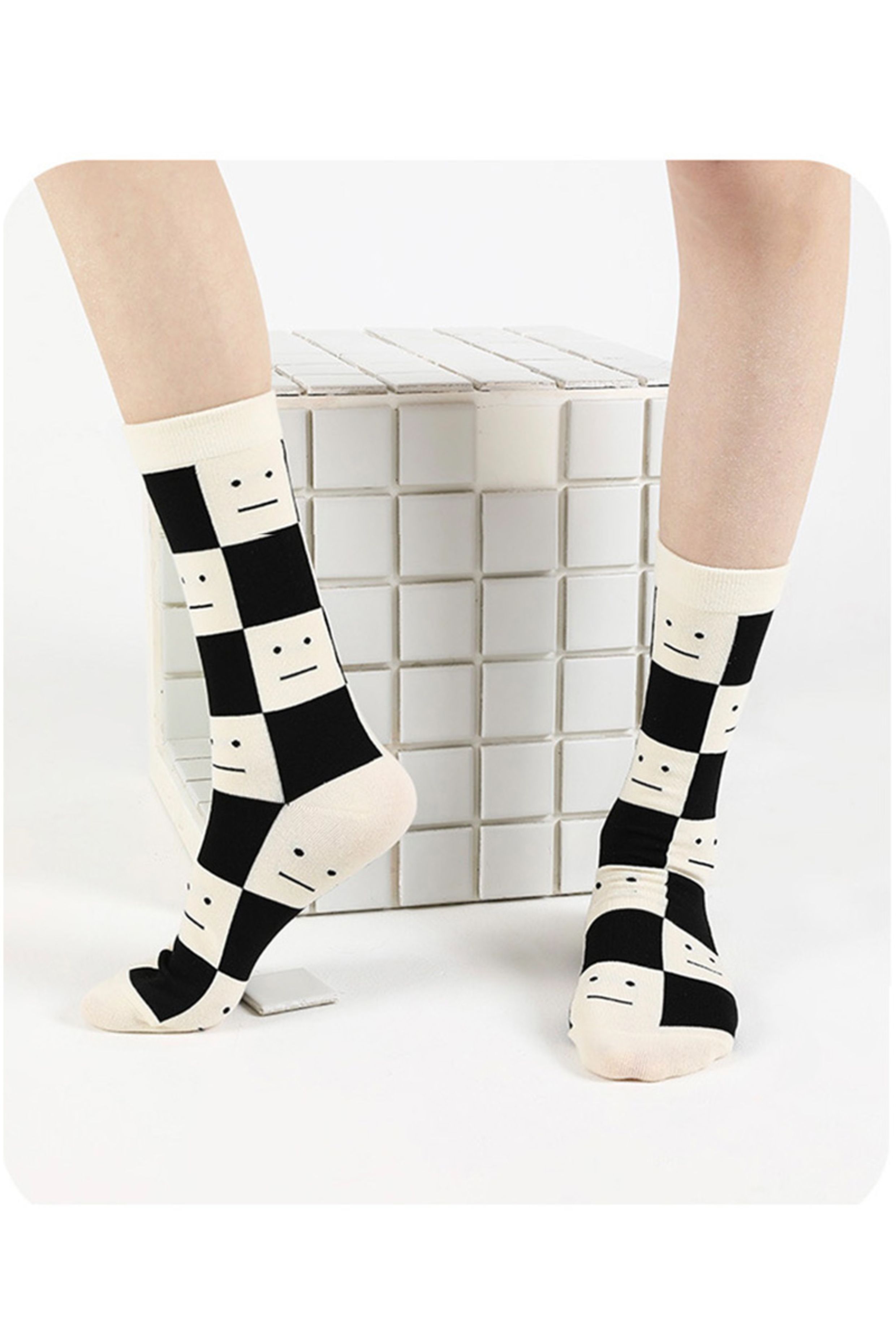 春秋男女卡通彩色中長筒襪子綠色波浪破碎之心黑白格子高幫純棉潮