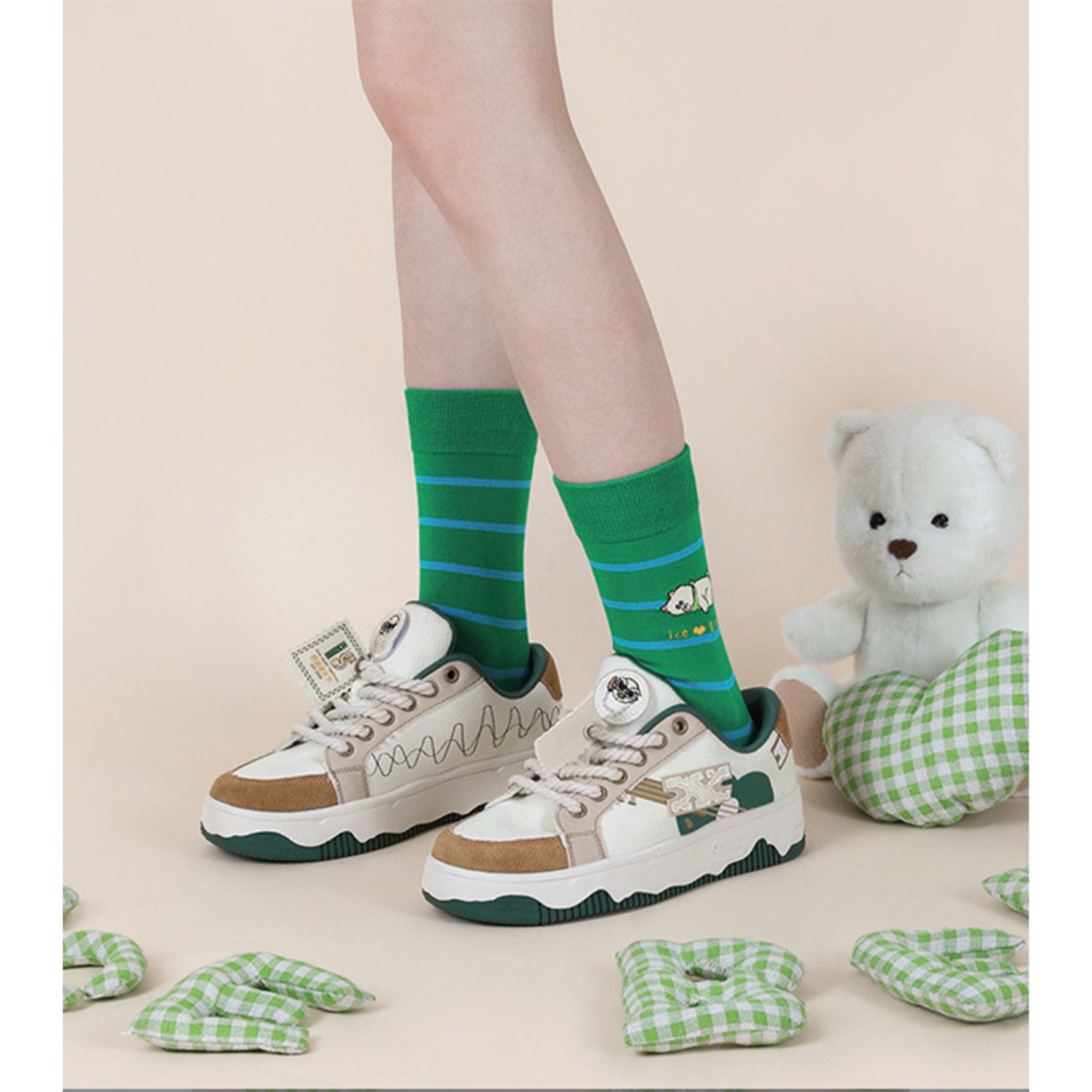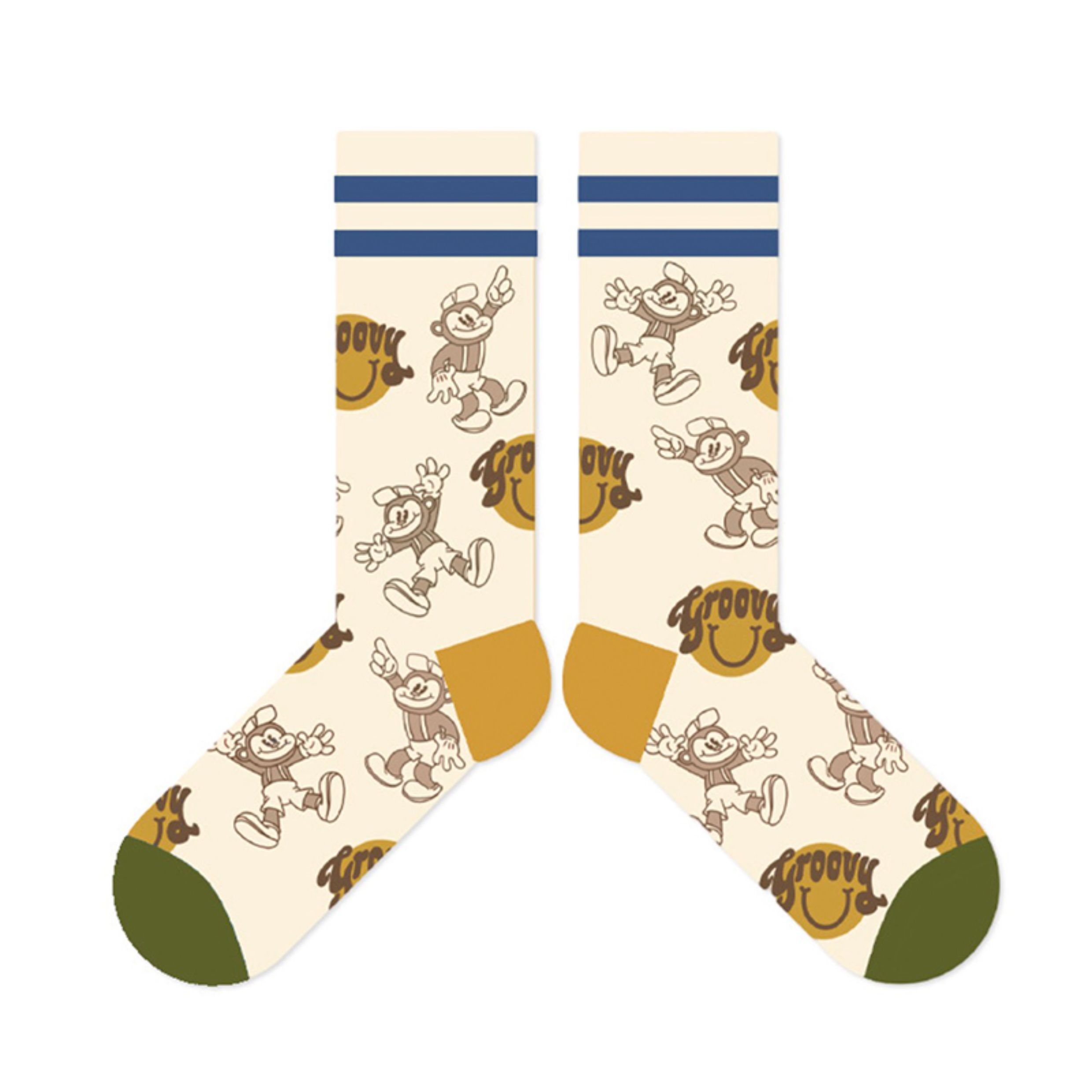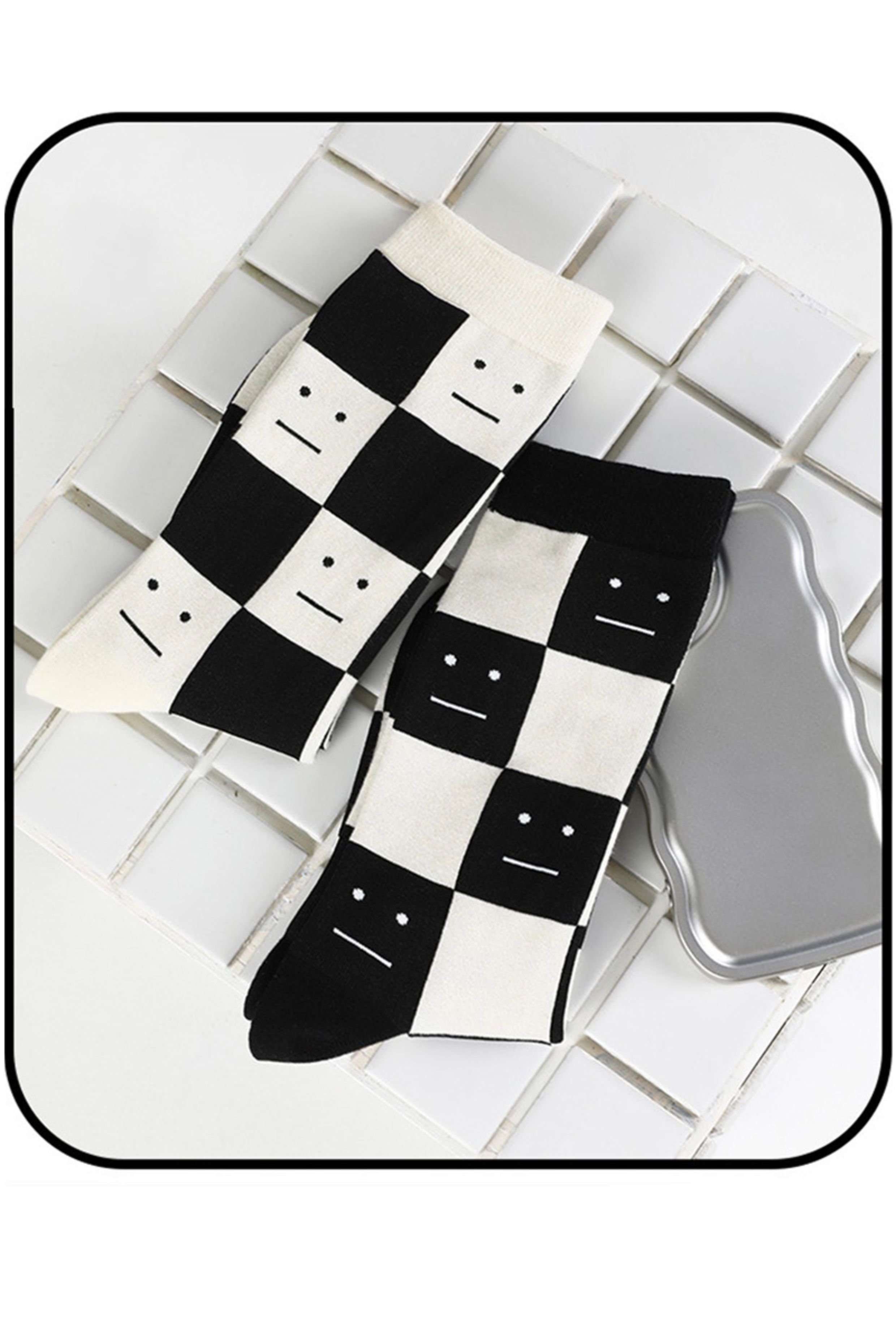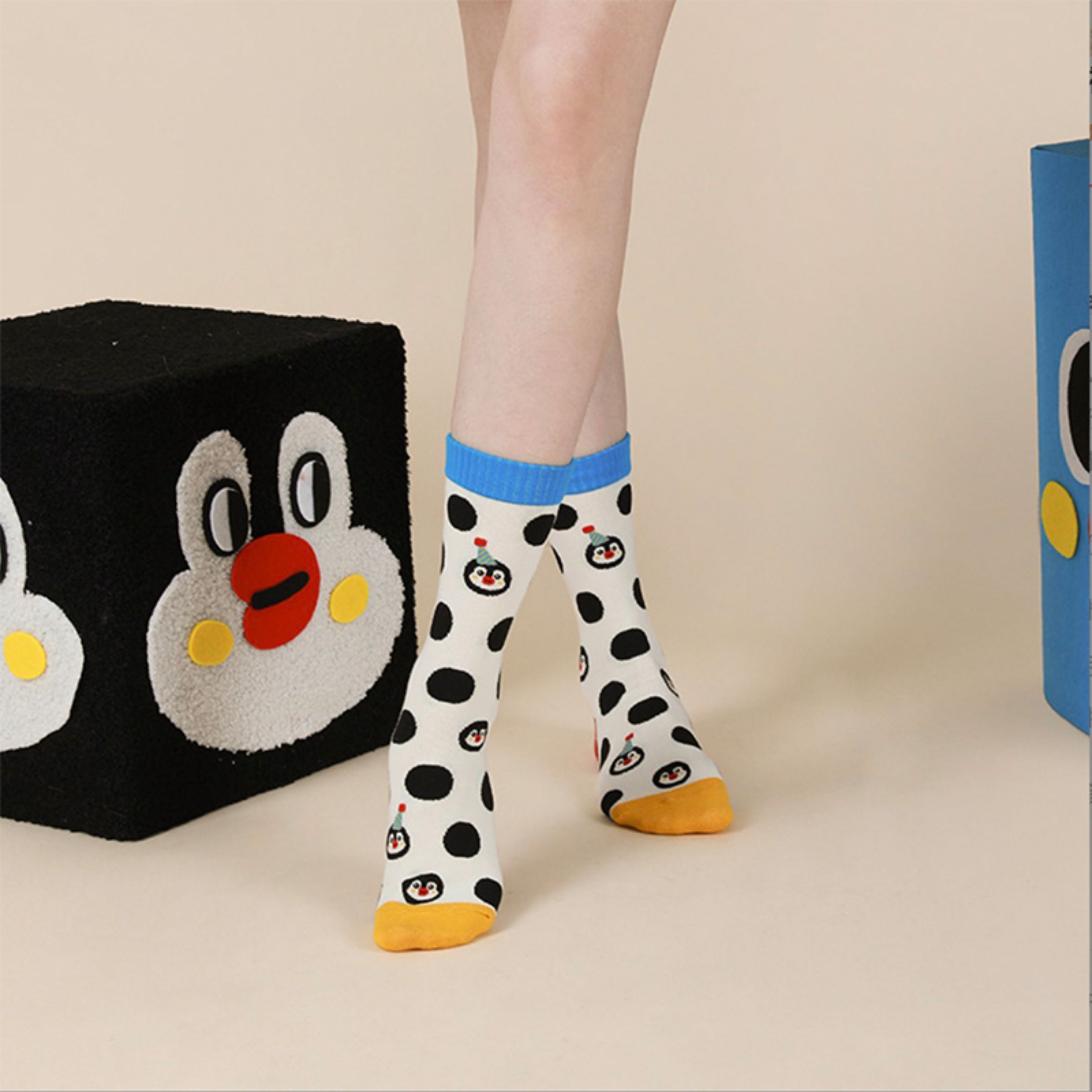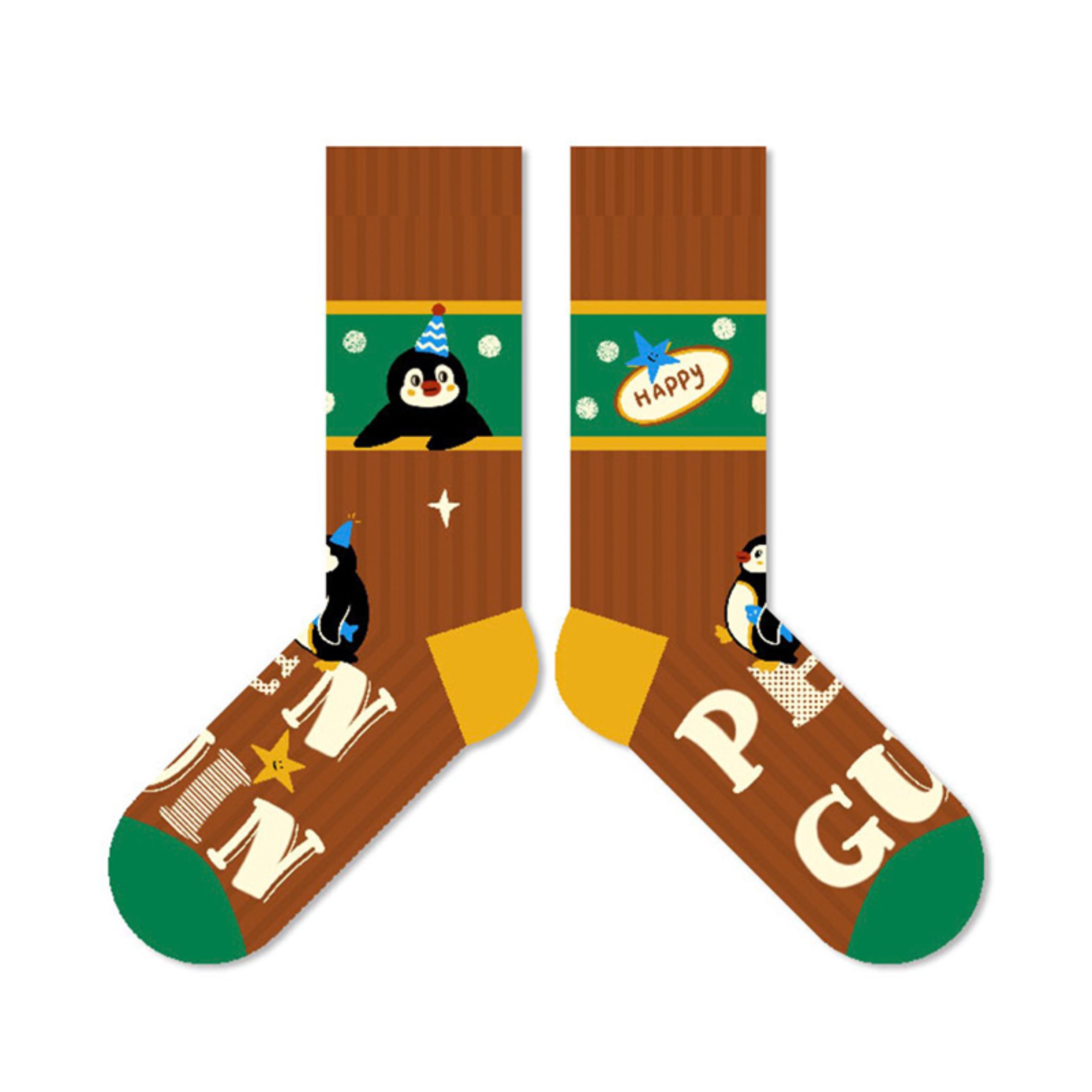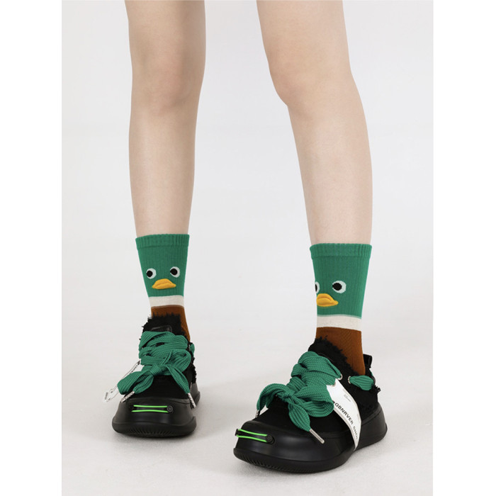 春秋男女卡通彩色中長筒襪子綠色波浪破碎之心黑白格子高幫純棉潮