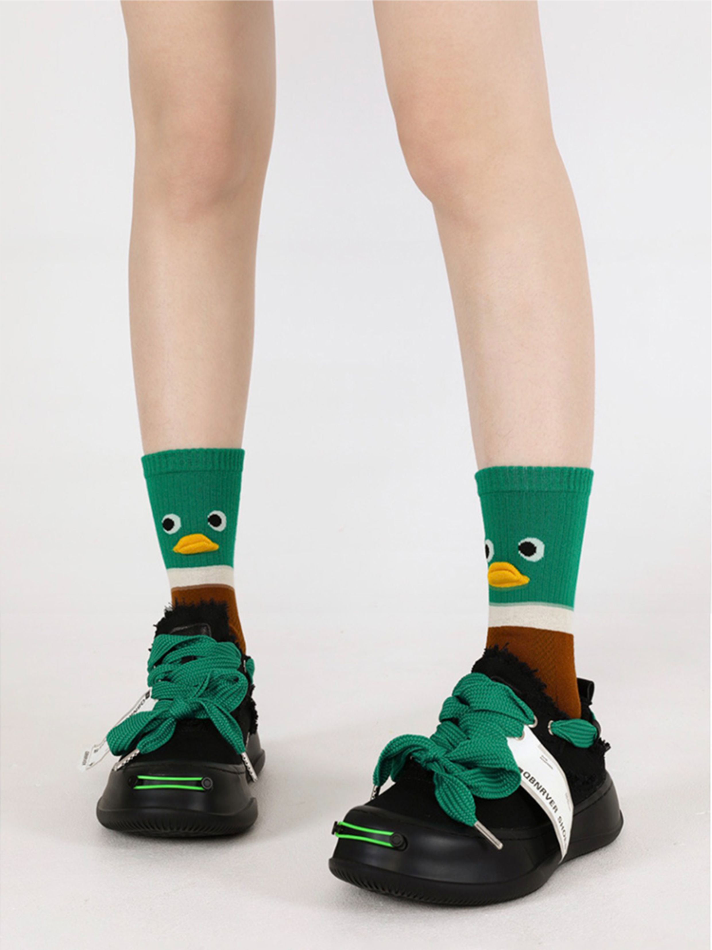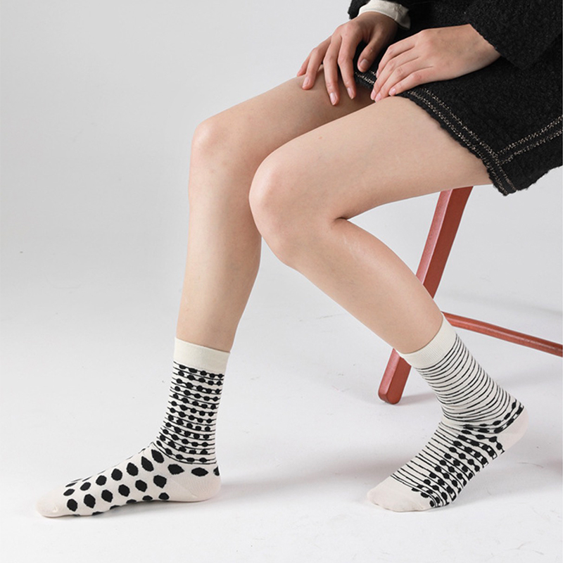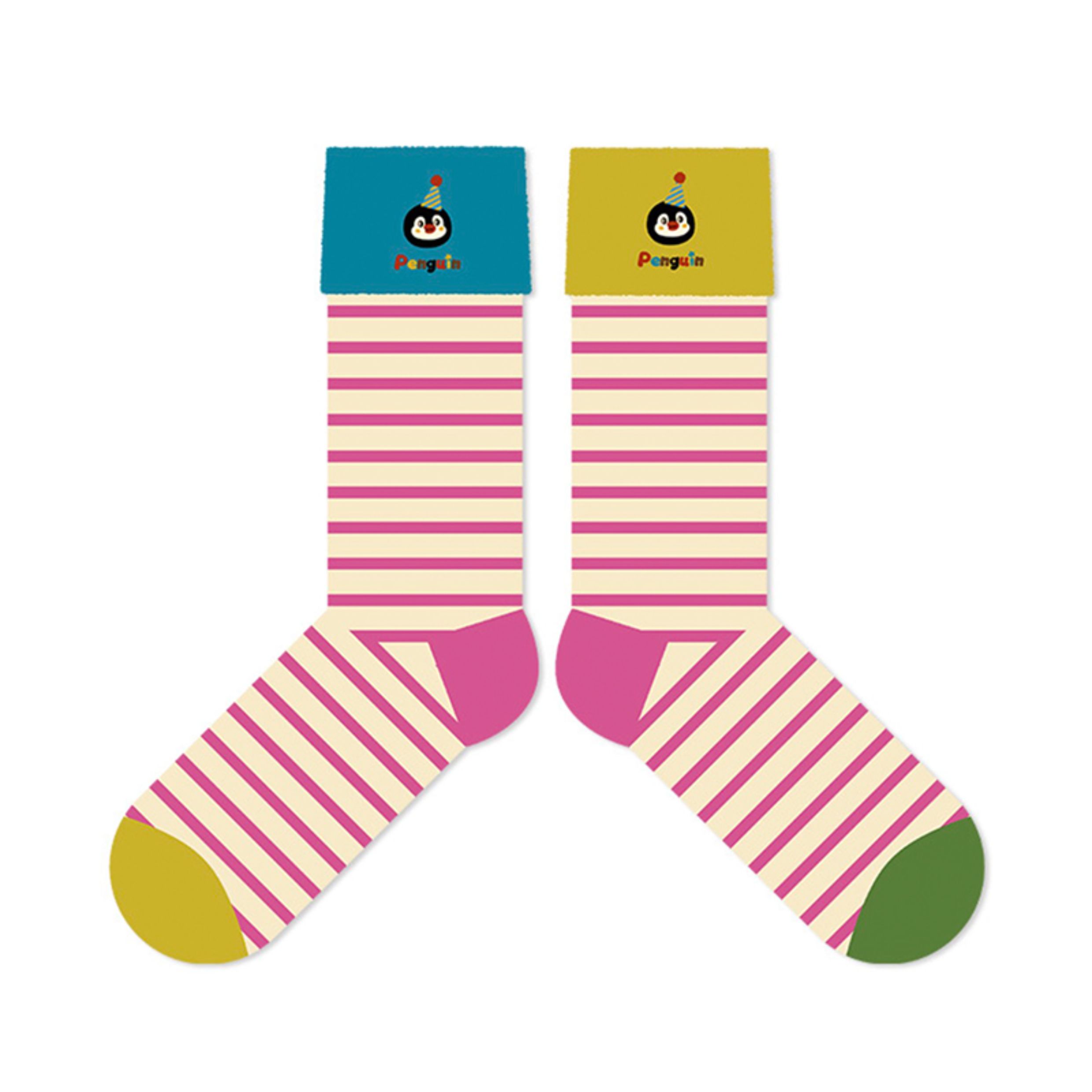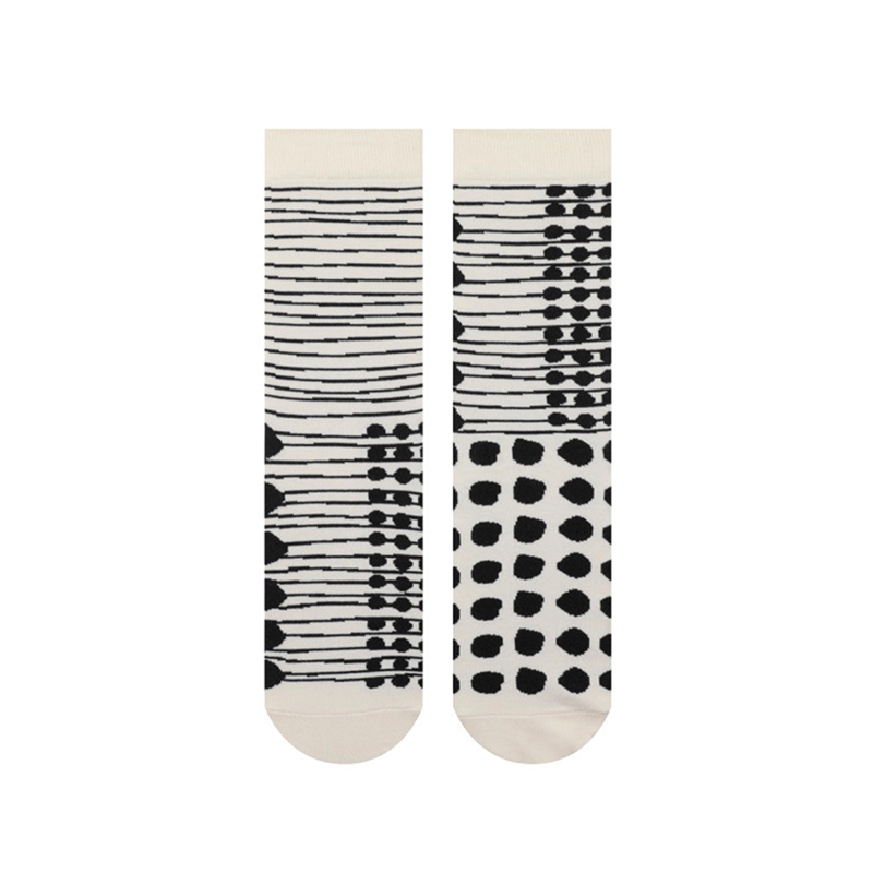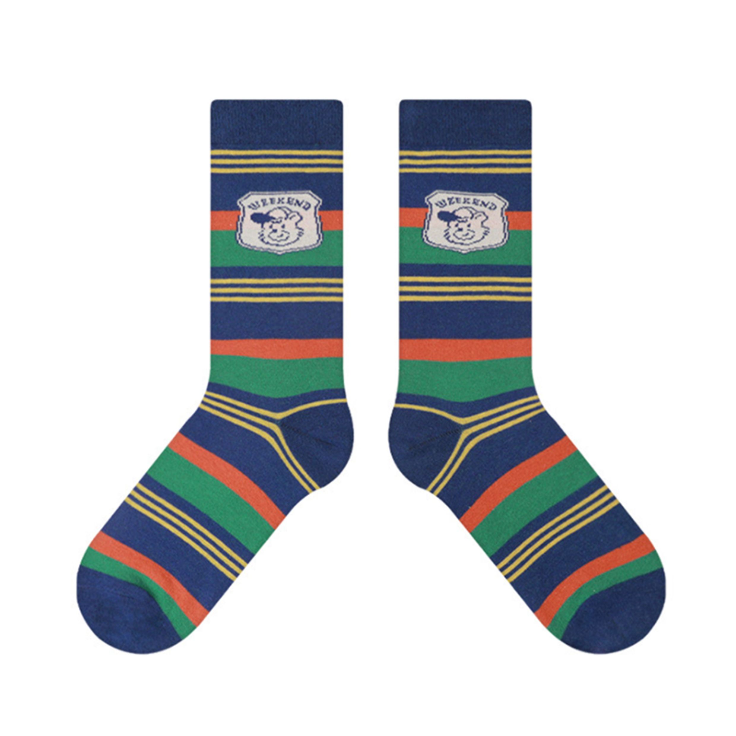 春秋男女卡通彩色中長筒襪子綠色波浪破碎之心黑白格子高幫純棉潮