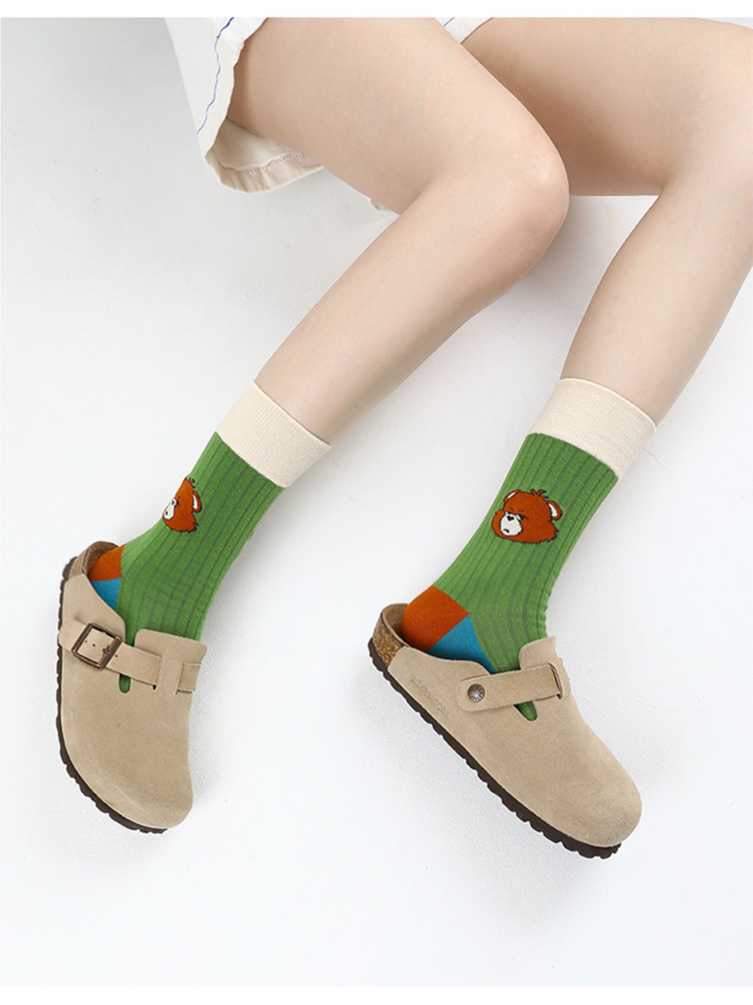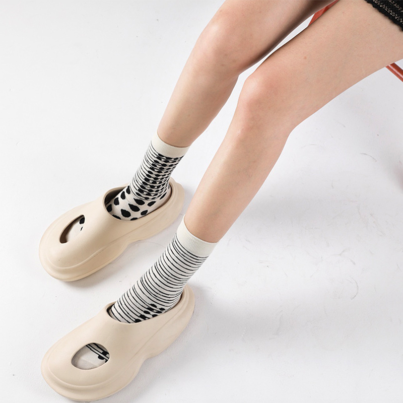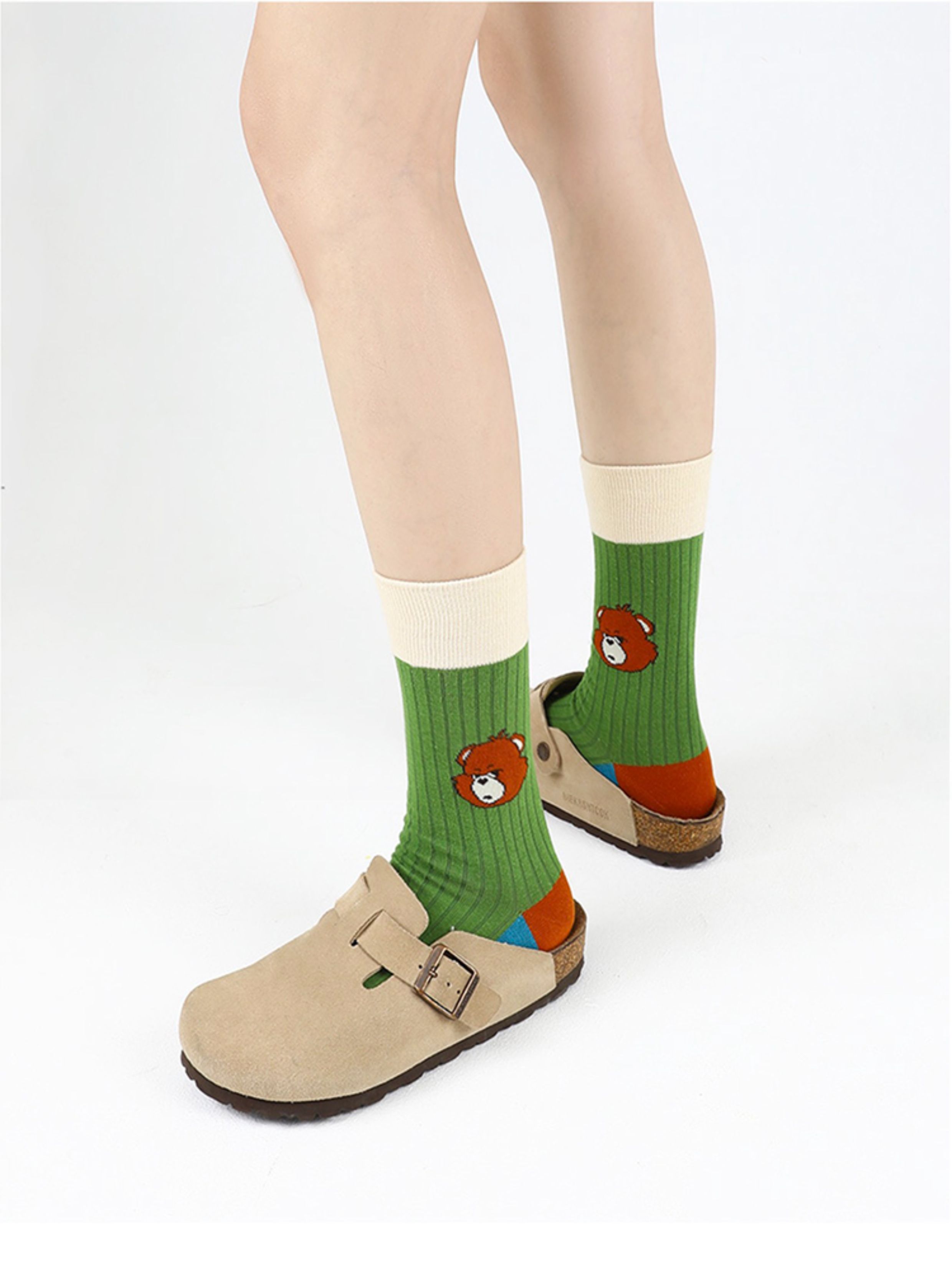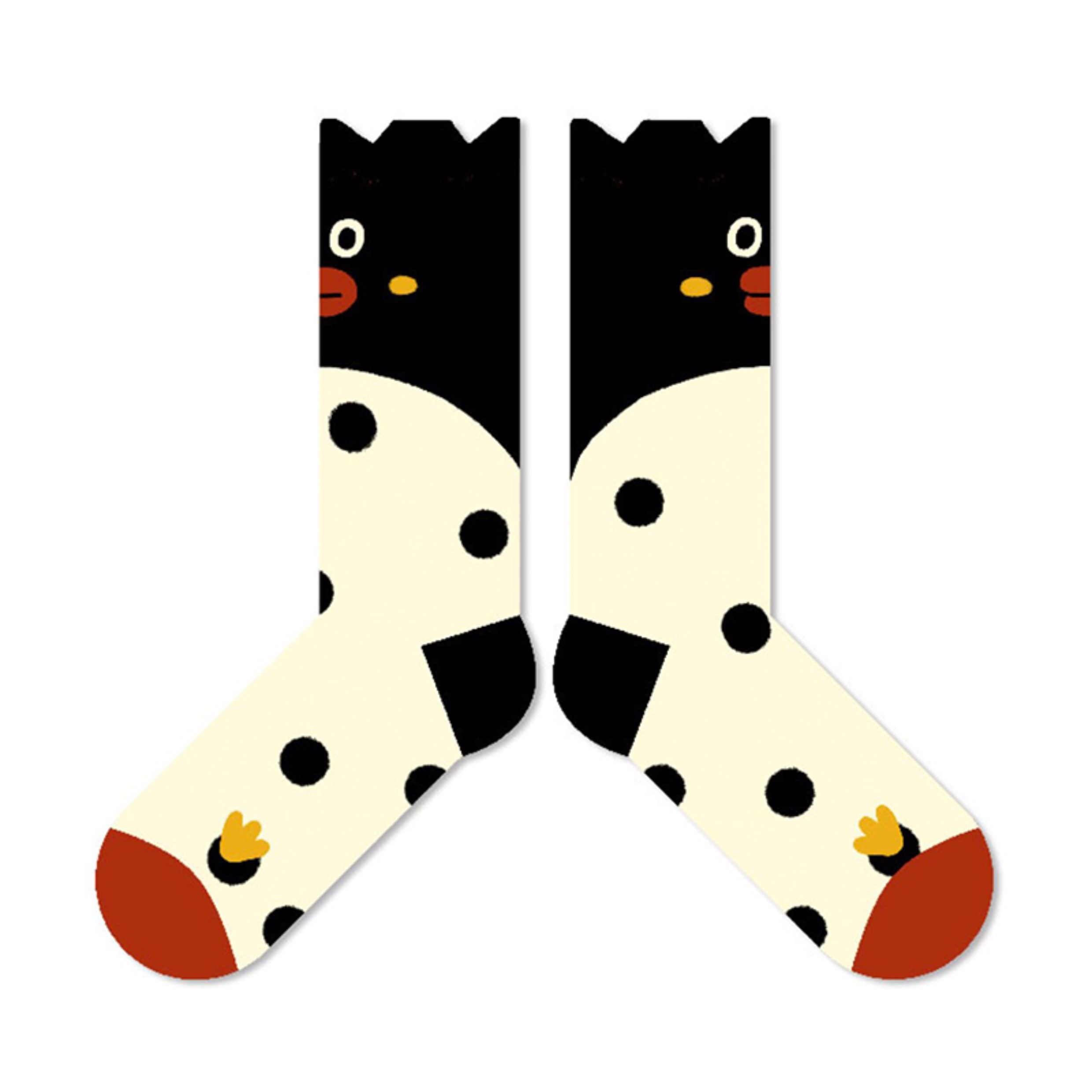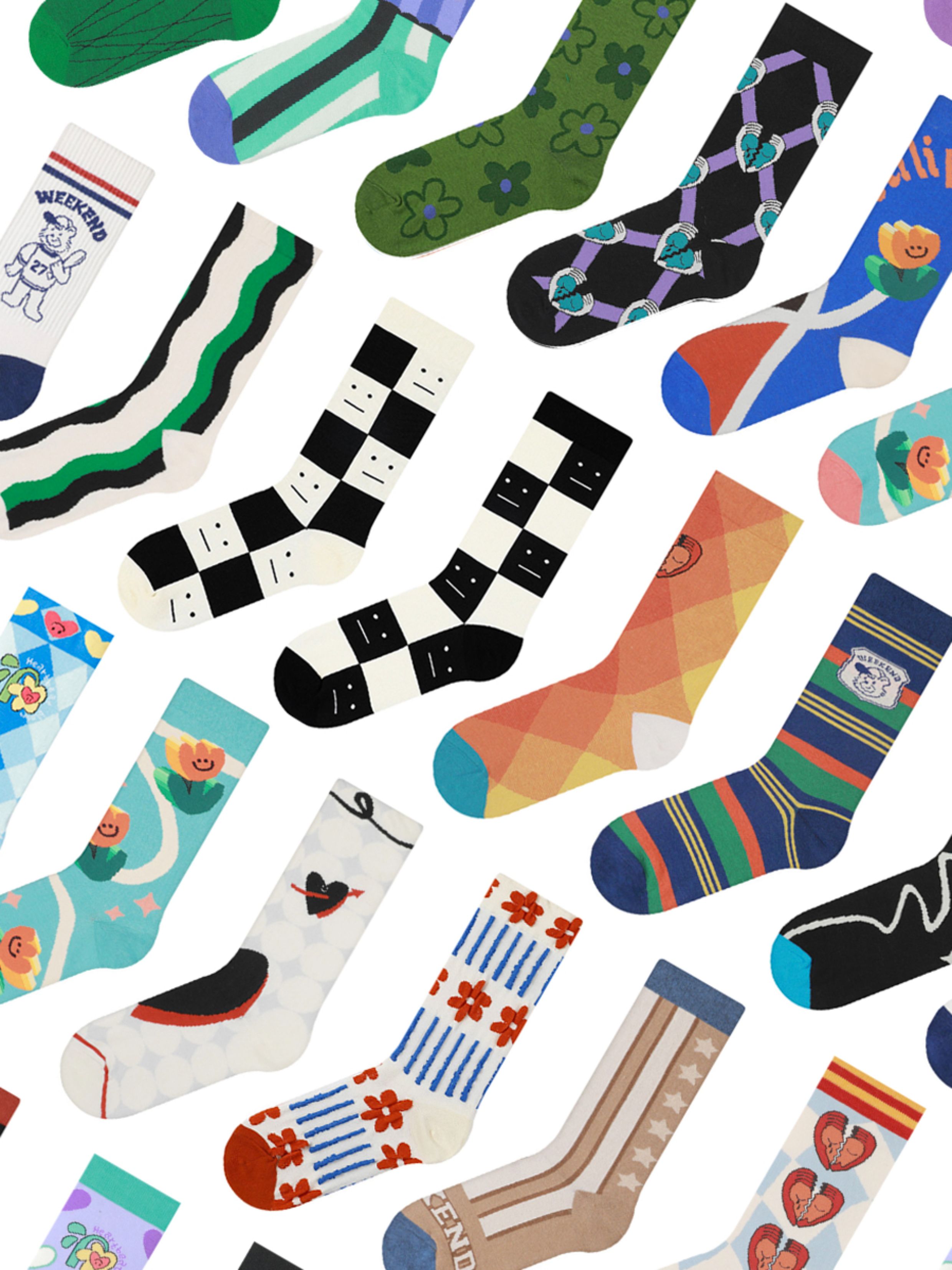 春秋男女卡通彩色中長筒襪子綠色波浪破碎之心黑白格子高幫純棉潮