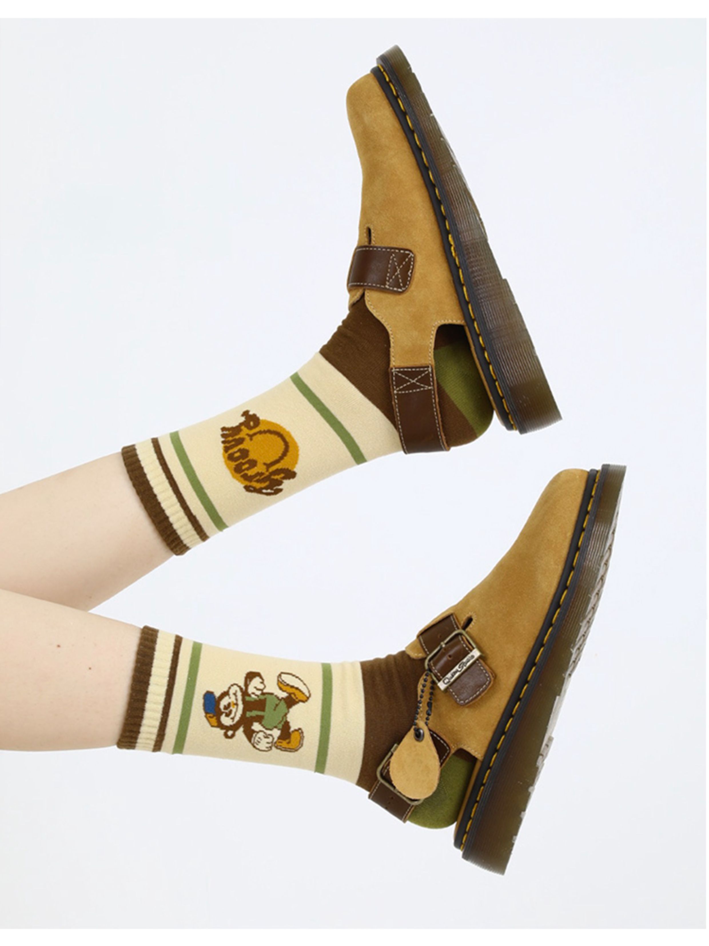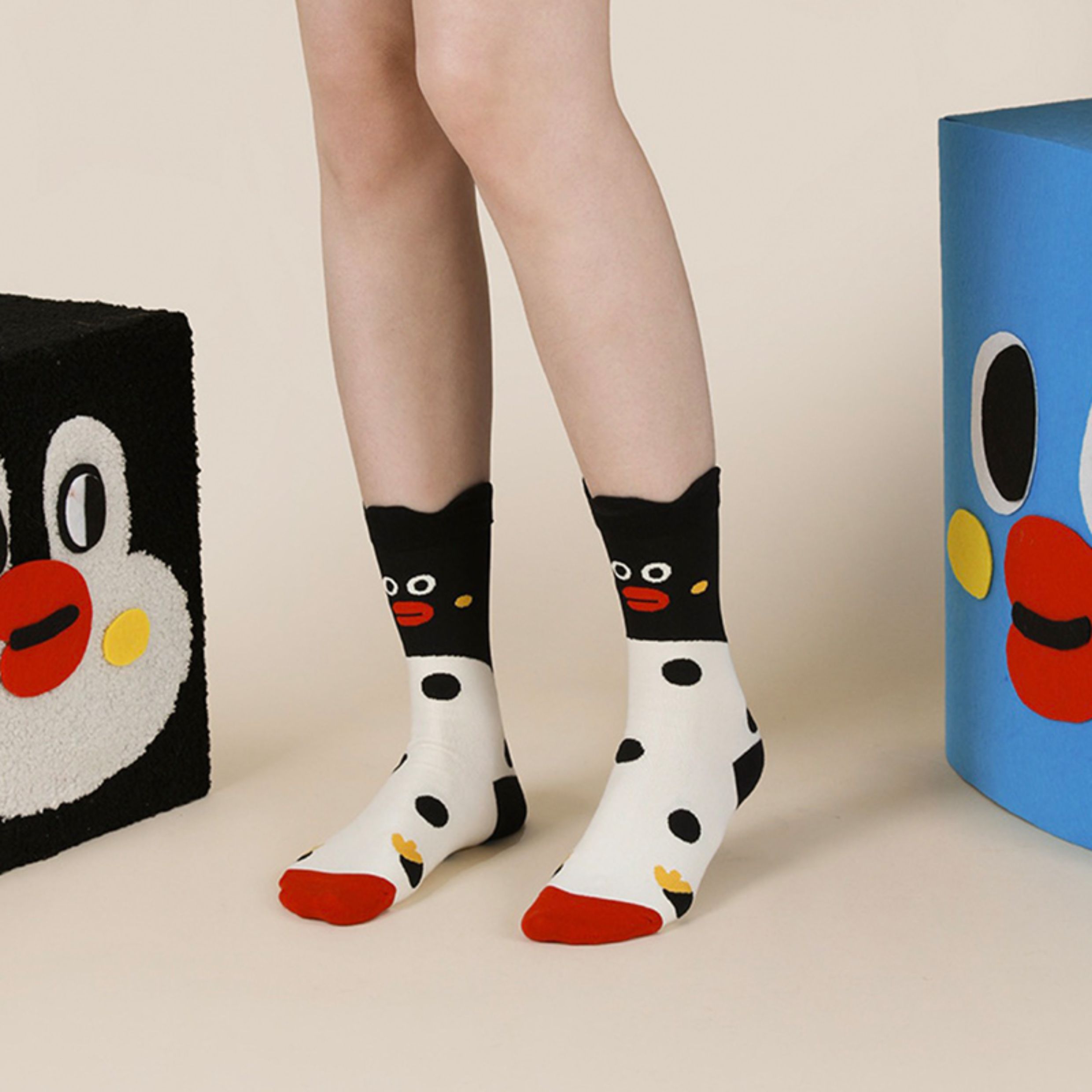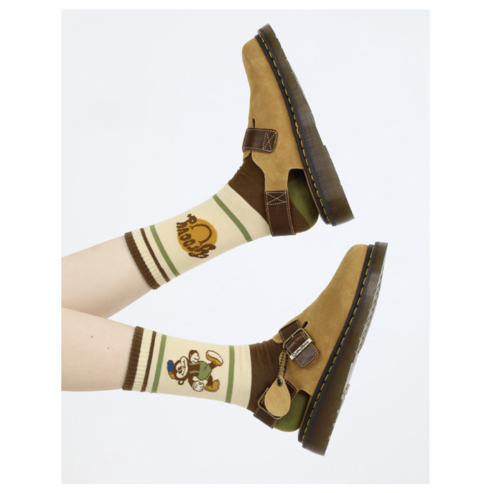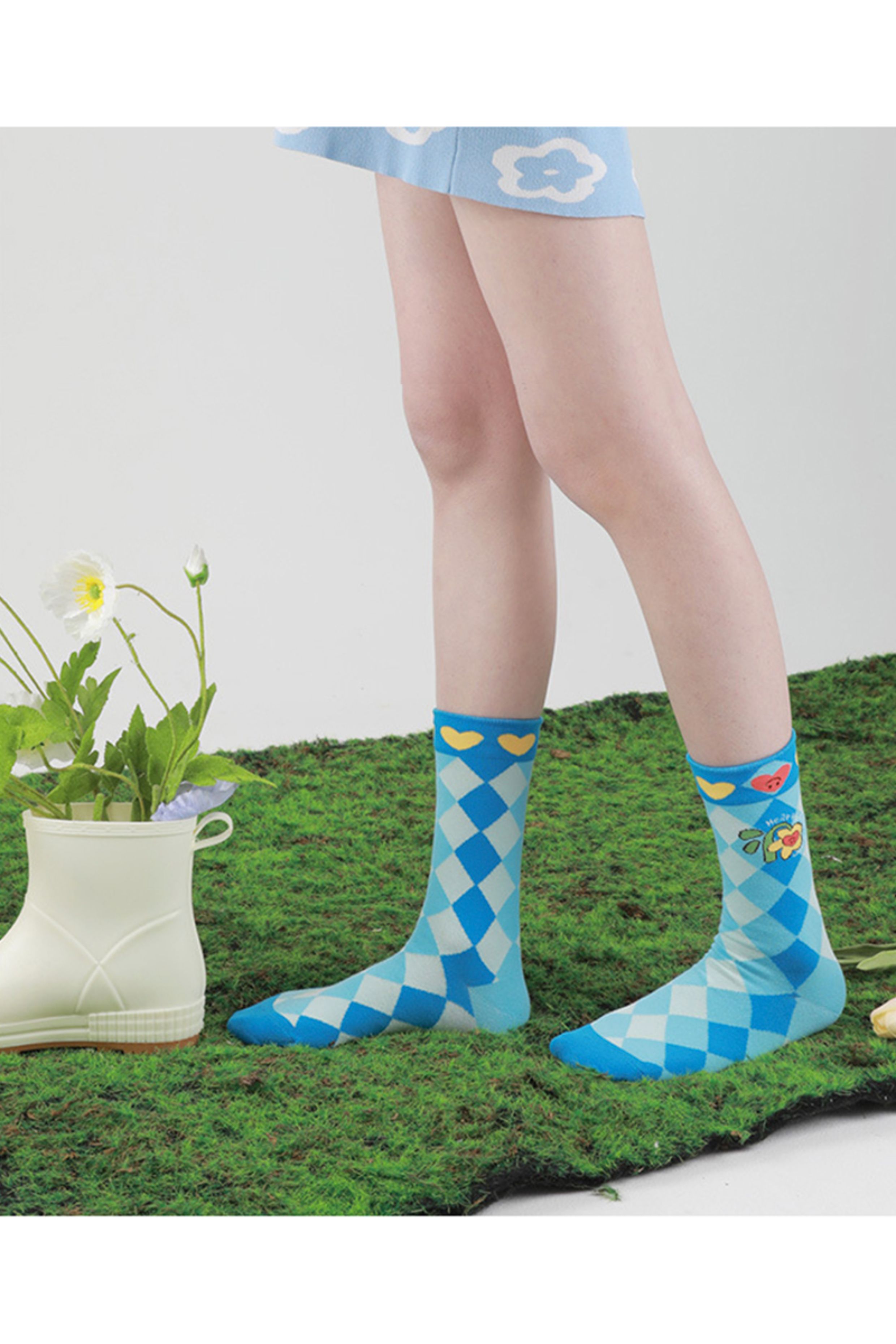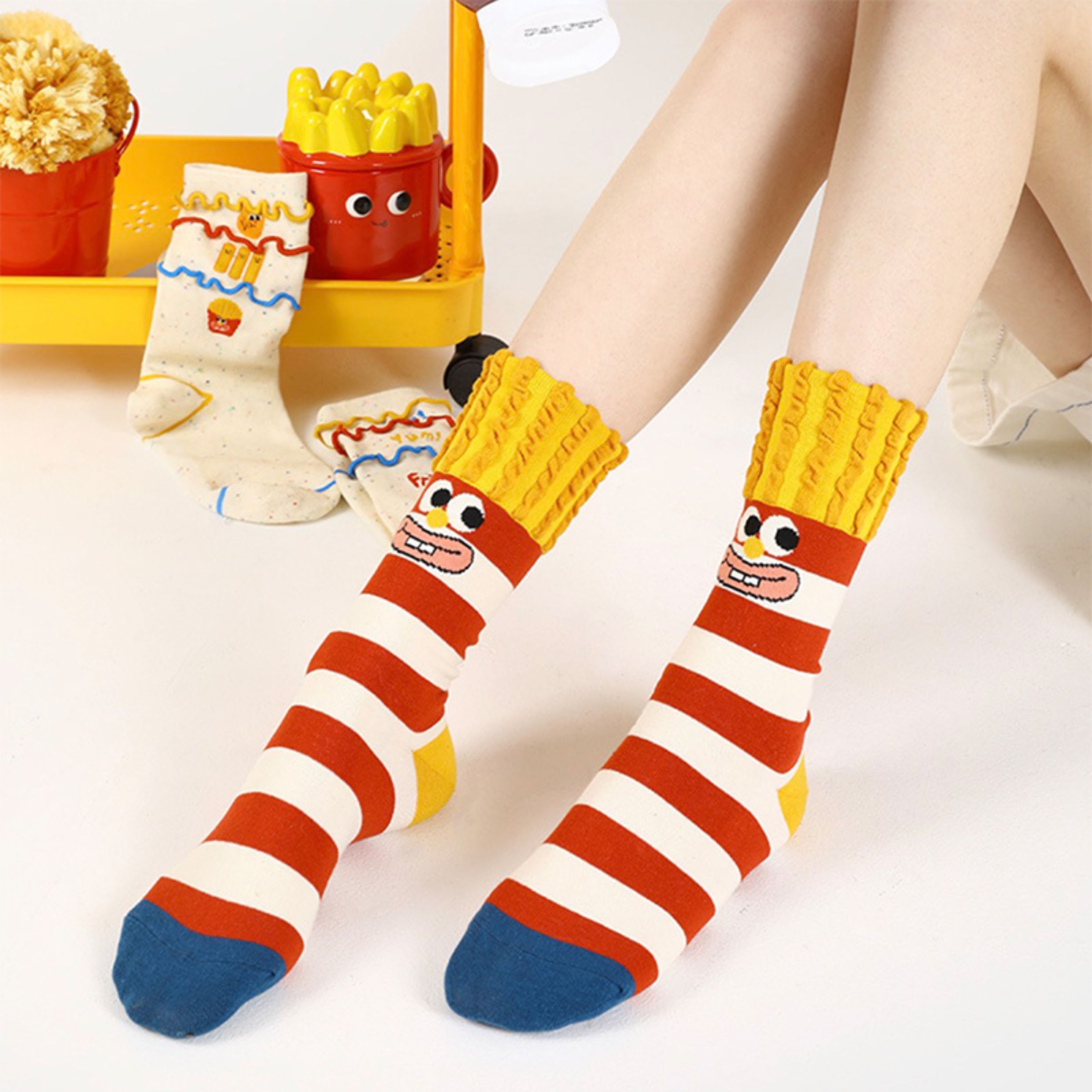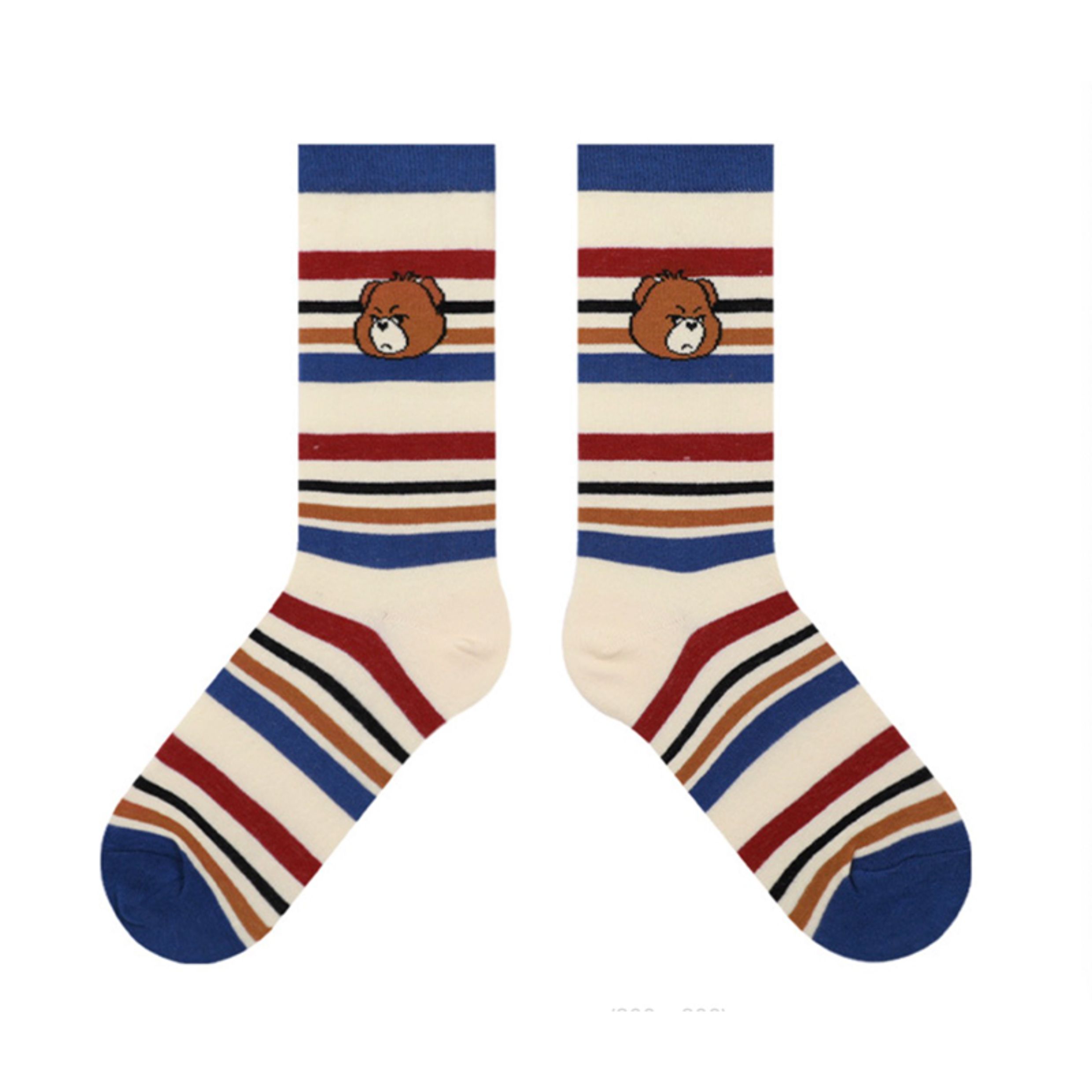 春秋男女卡通彩色中長筒襪子綠色波浪破碎之心黑白格子高幫純棉潮