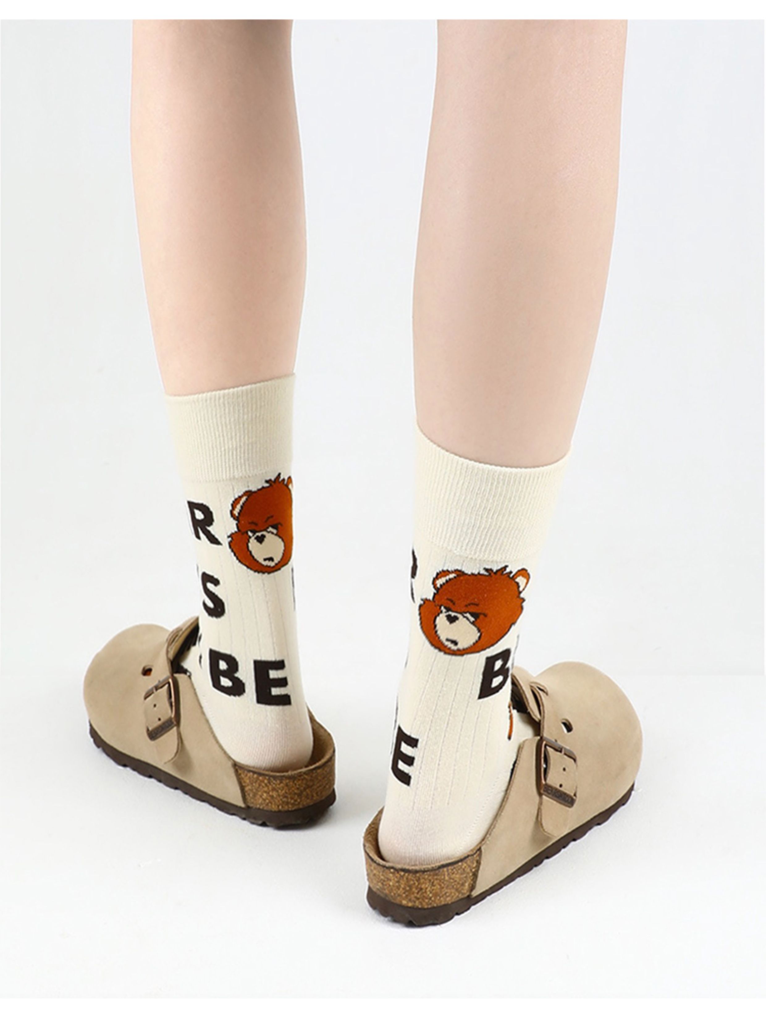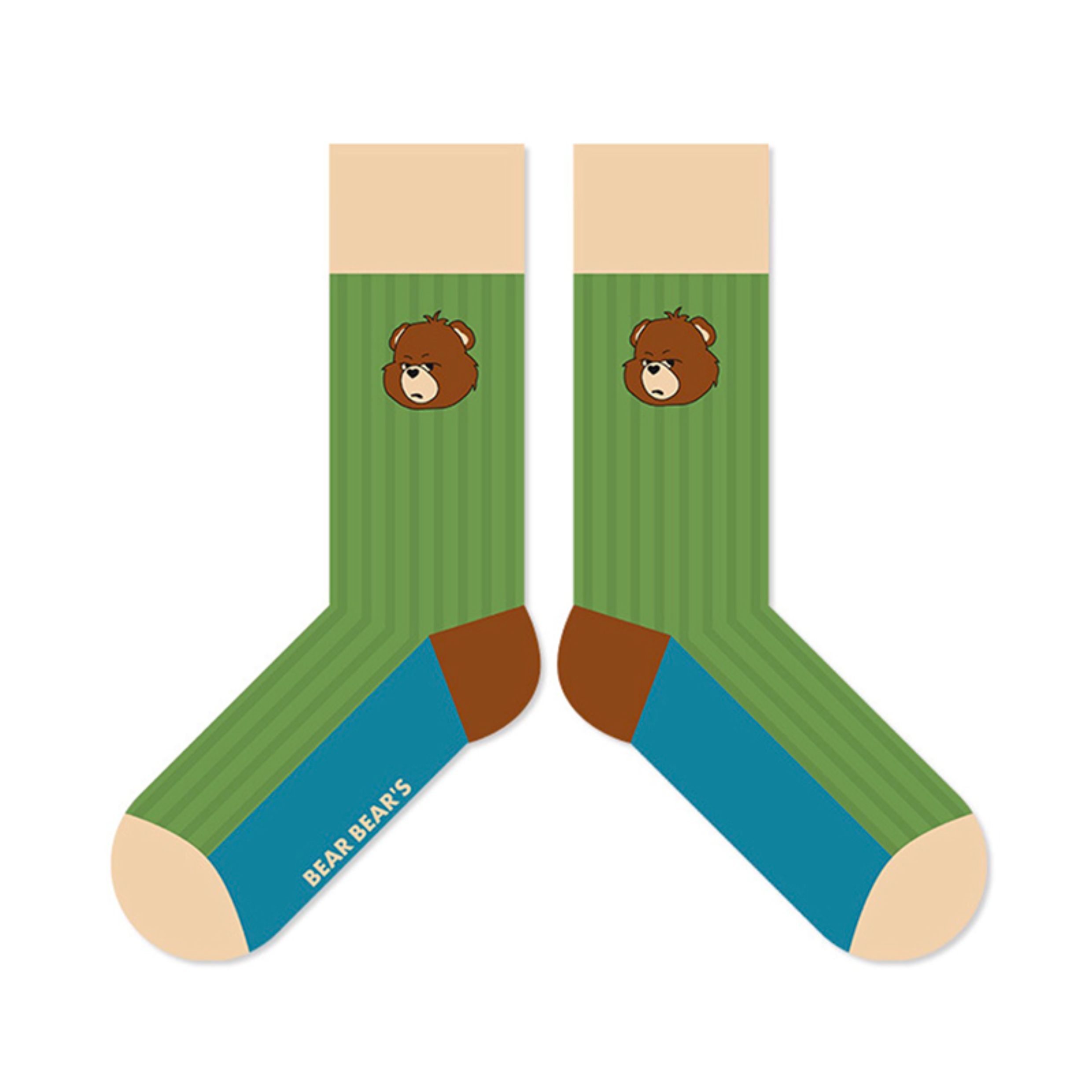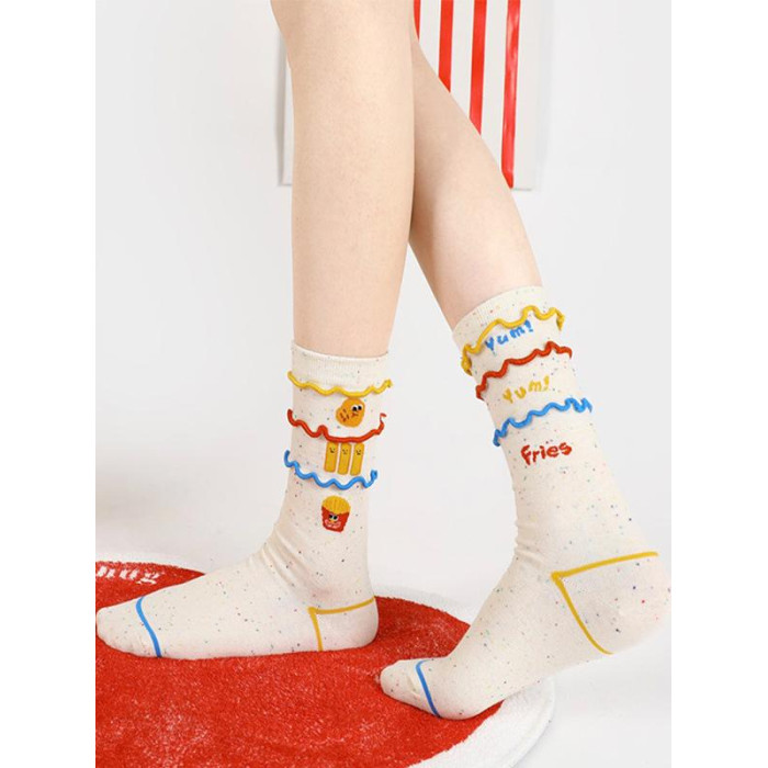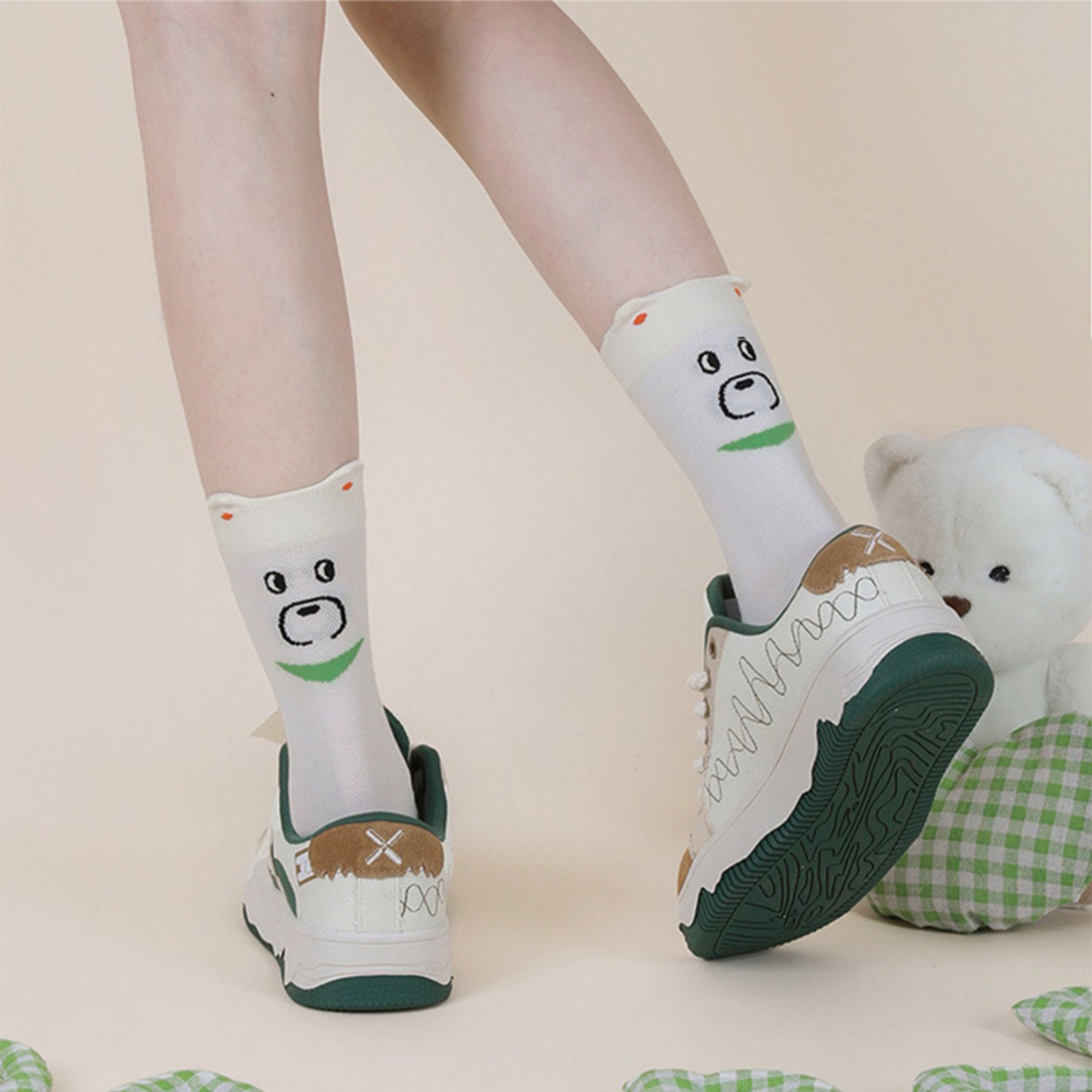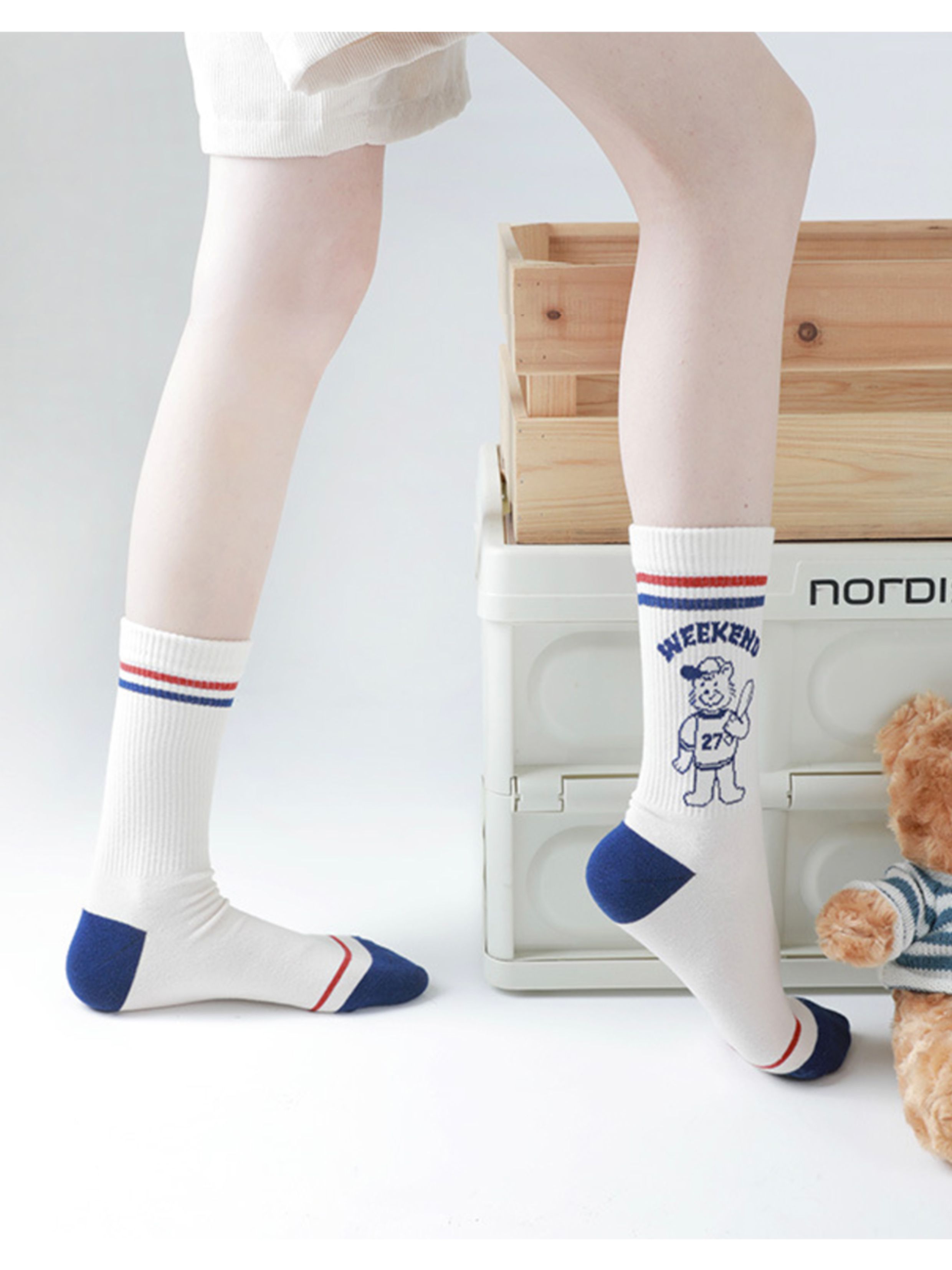 春秋男女卡通彩色中長筒襪子綠色波浪破碎之心黑白格子高幫純棉潮