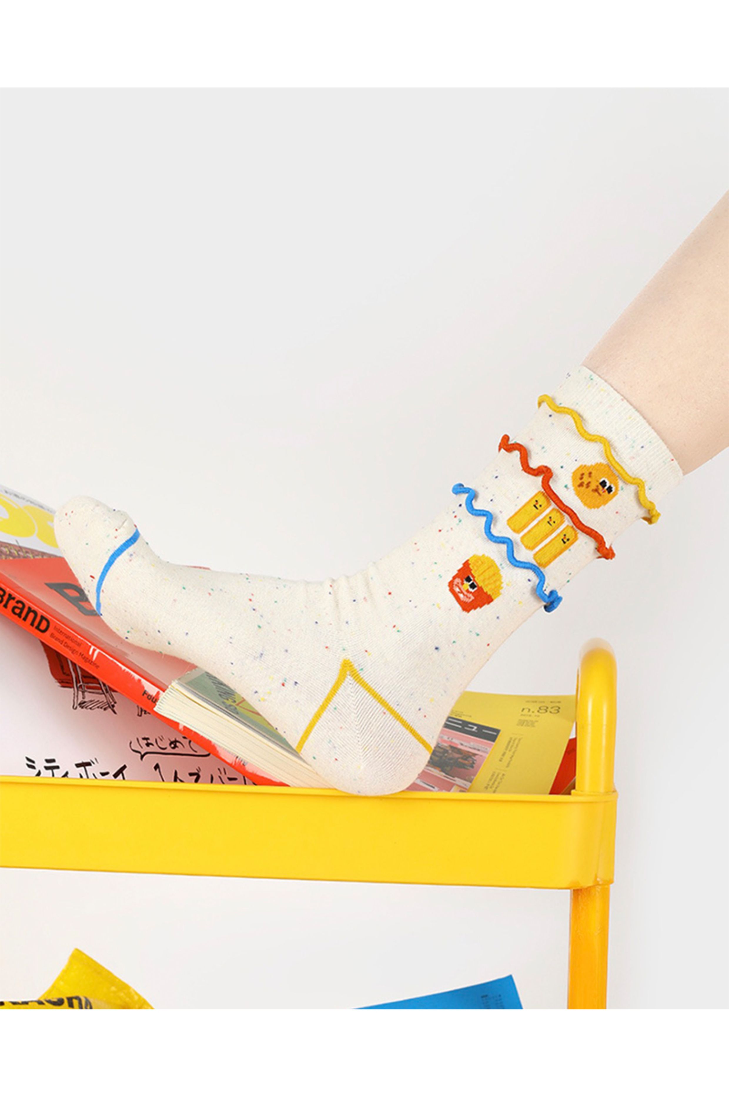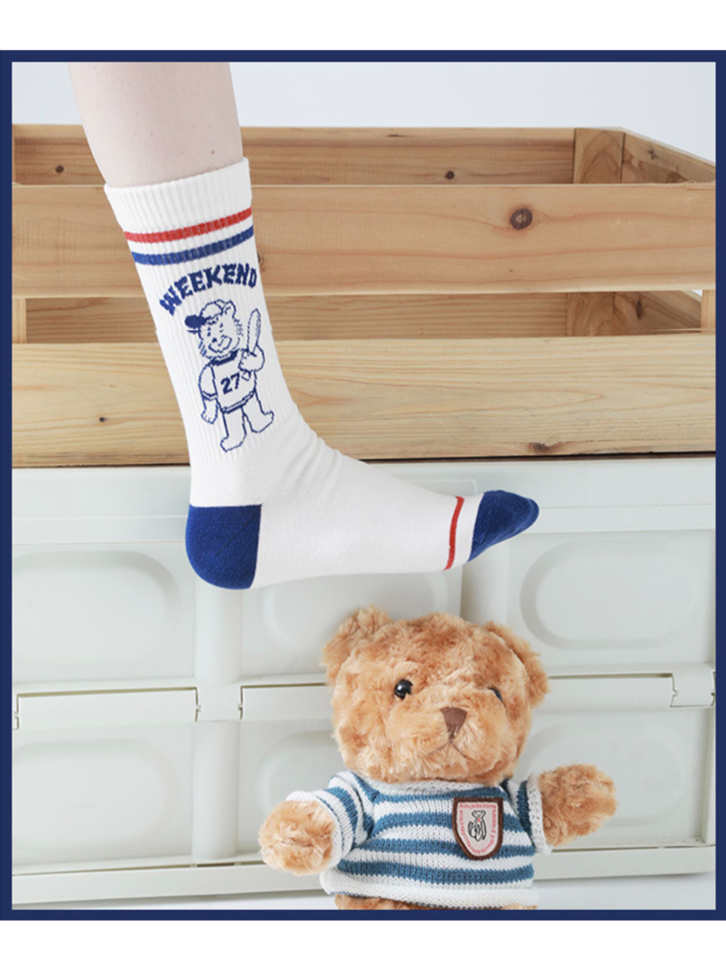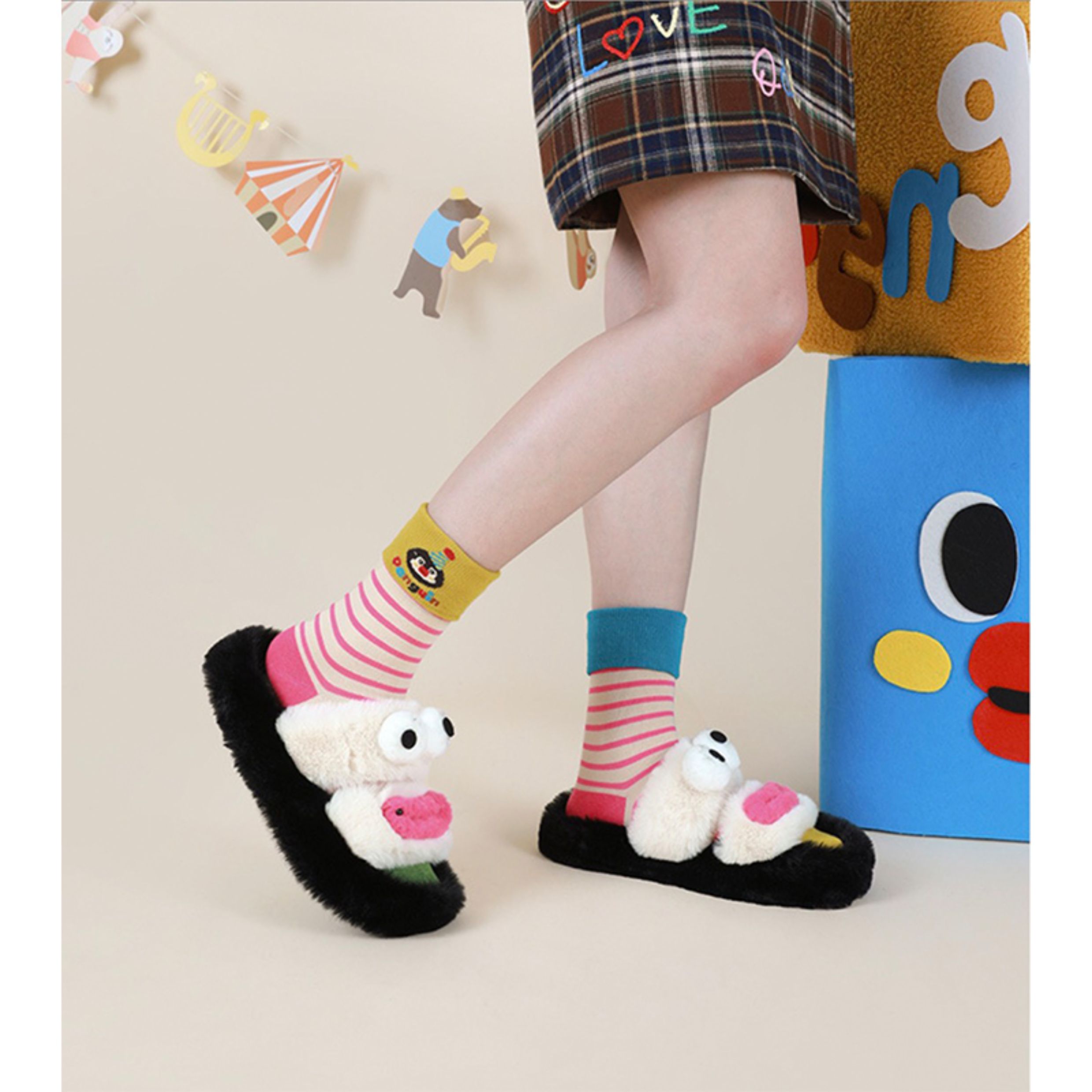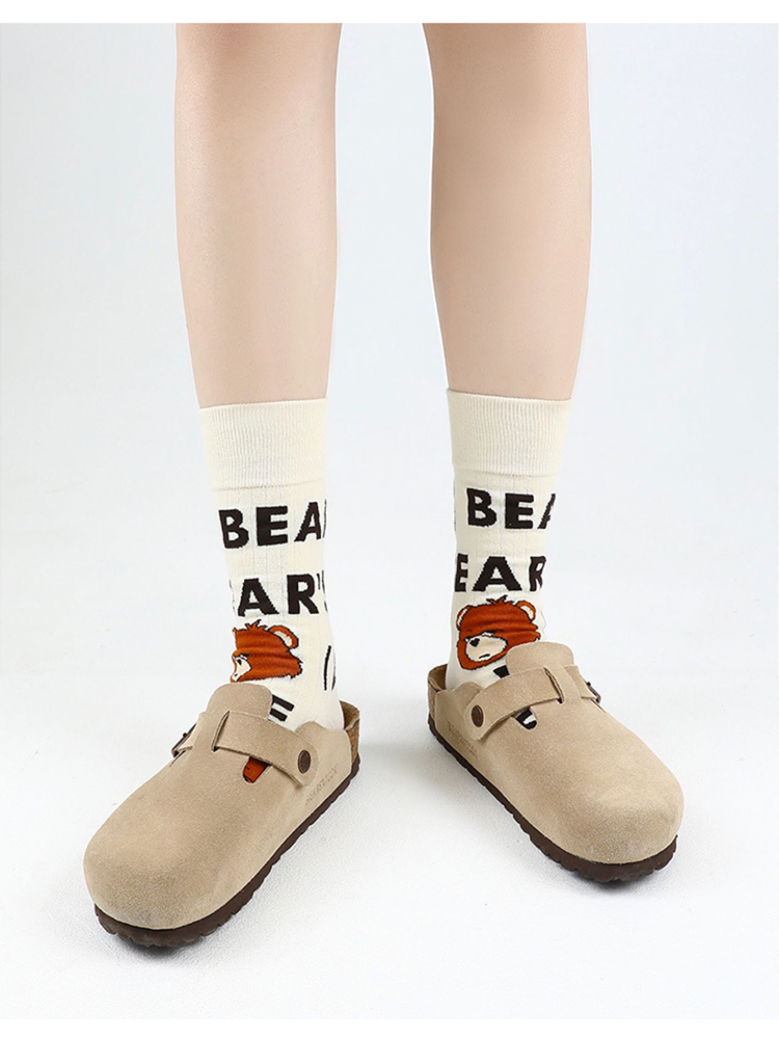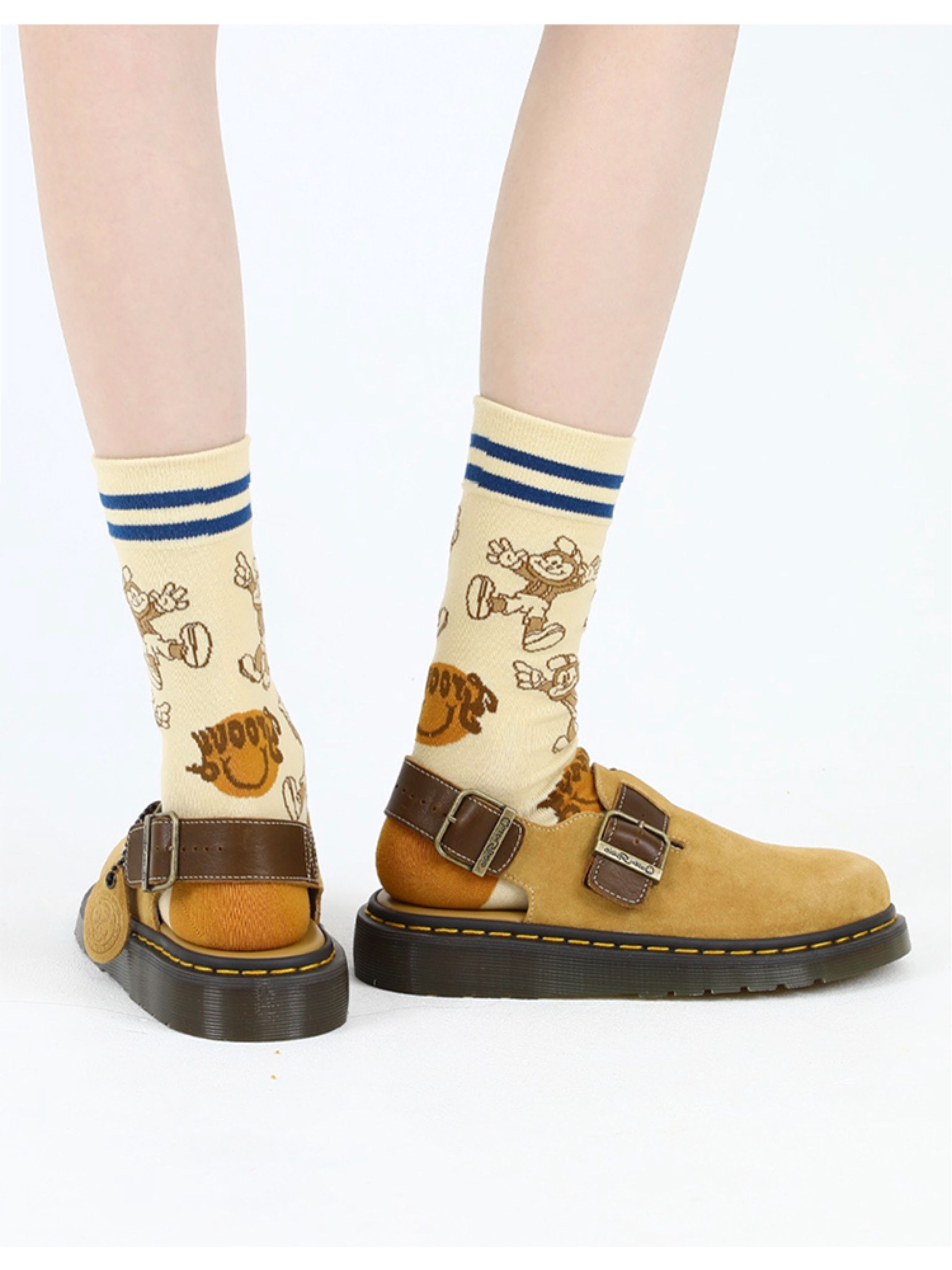 春秋男女卡通彩色中長筒襪子綠色波浪破碎之心黑白格子高幫純棉潮