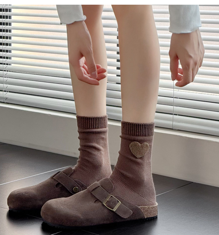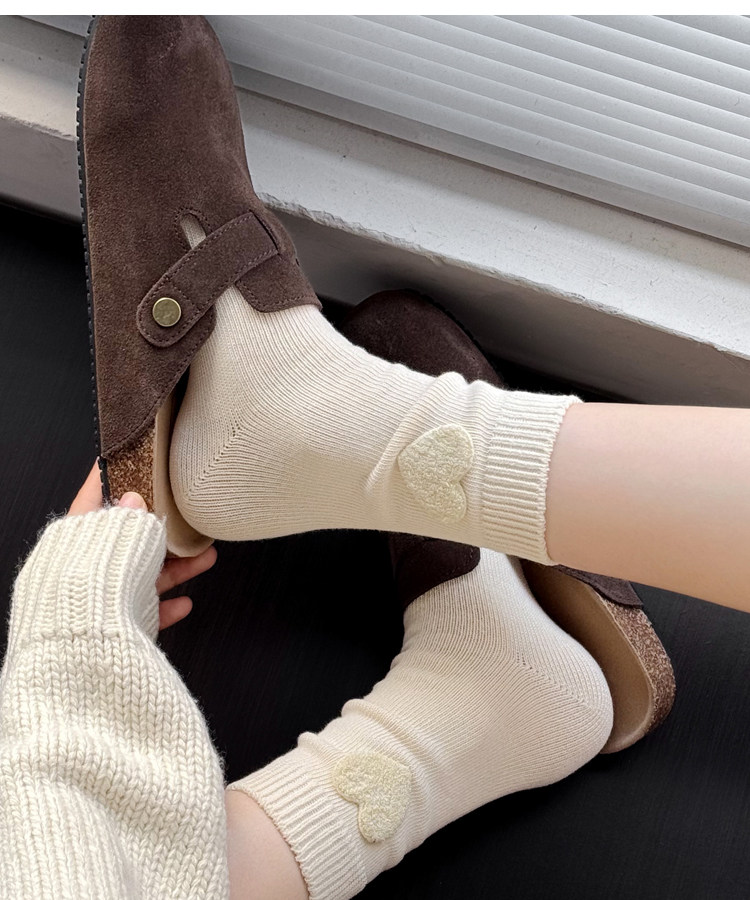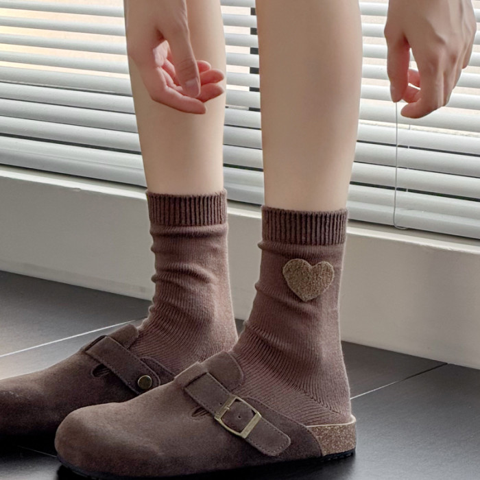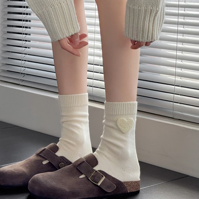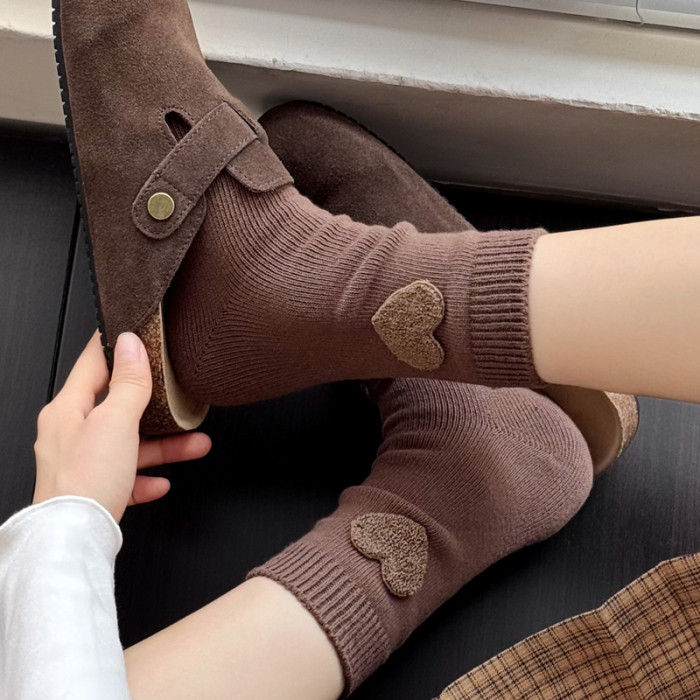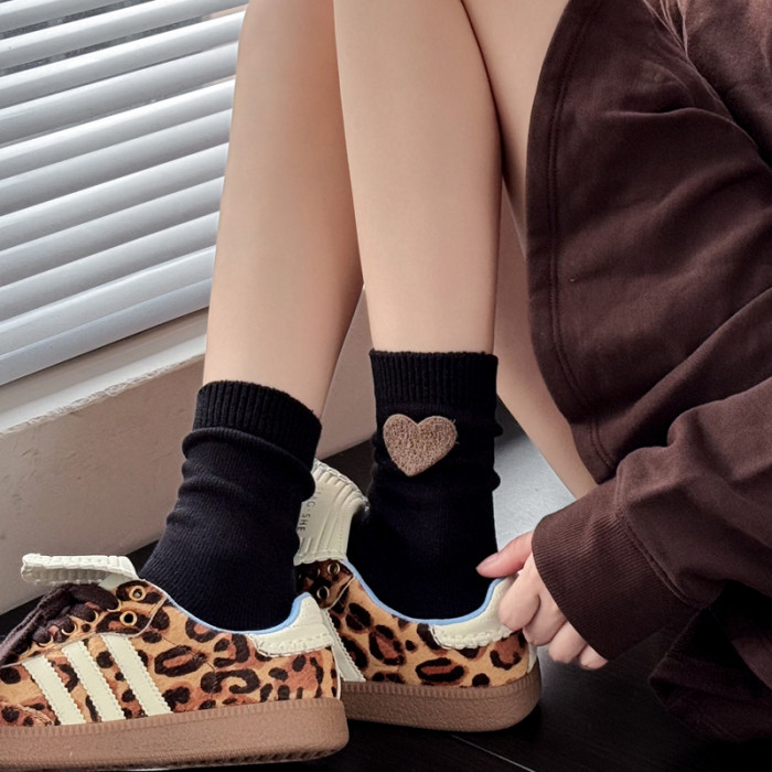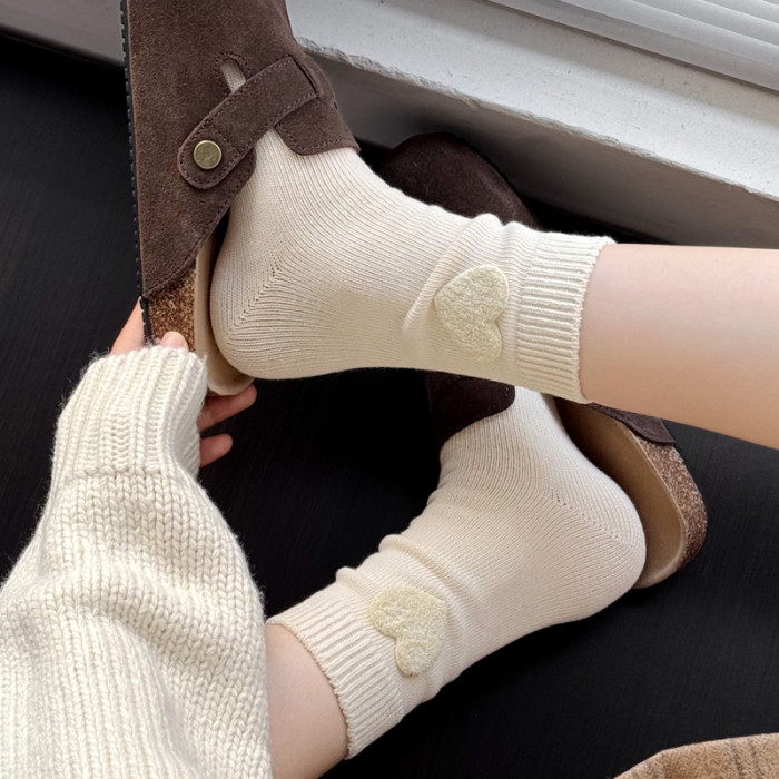 白色短襪子女韓國ins潮襪秋冬加厚棉堆堆襪甜美愛心咖啡色中筒襪