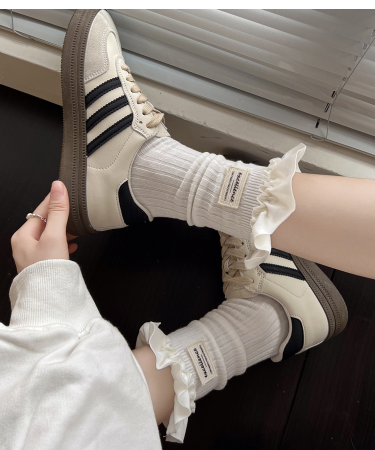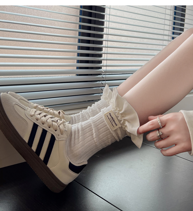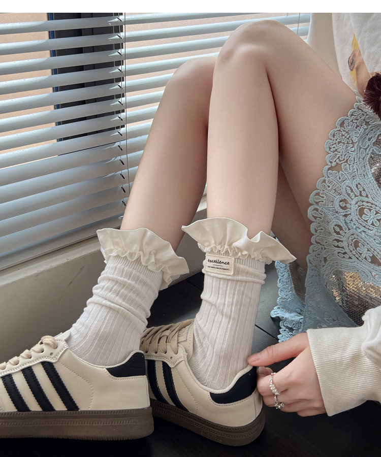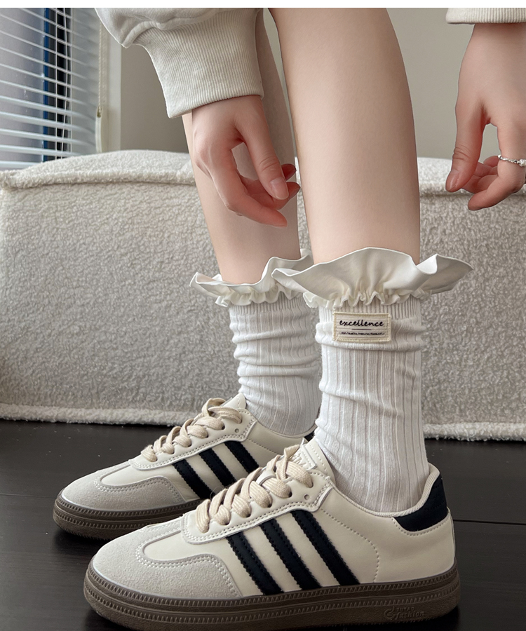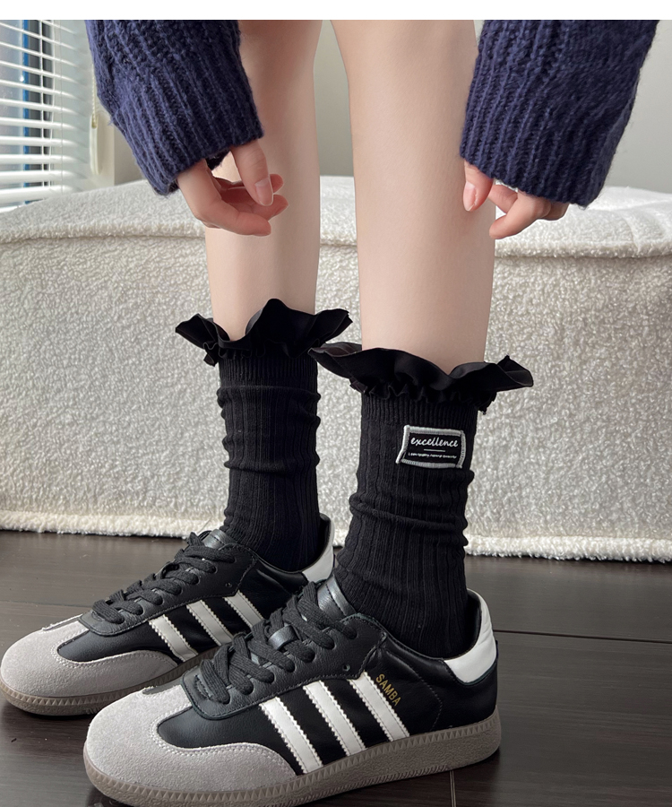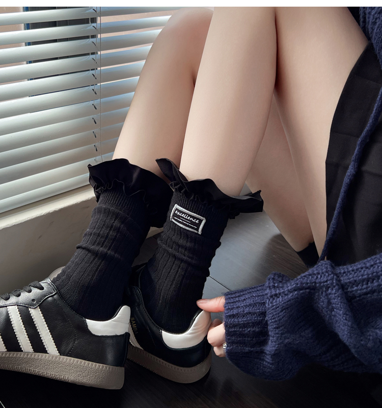 白色蕾絲花邊小腿襪日系秋冬棉質加厚堆堆襪小香風黑色中筒短襪子