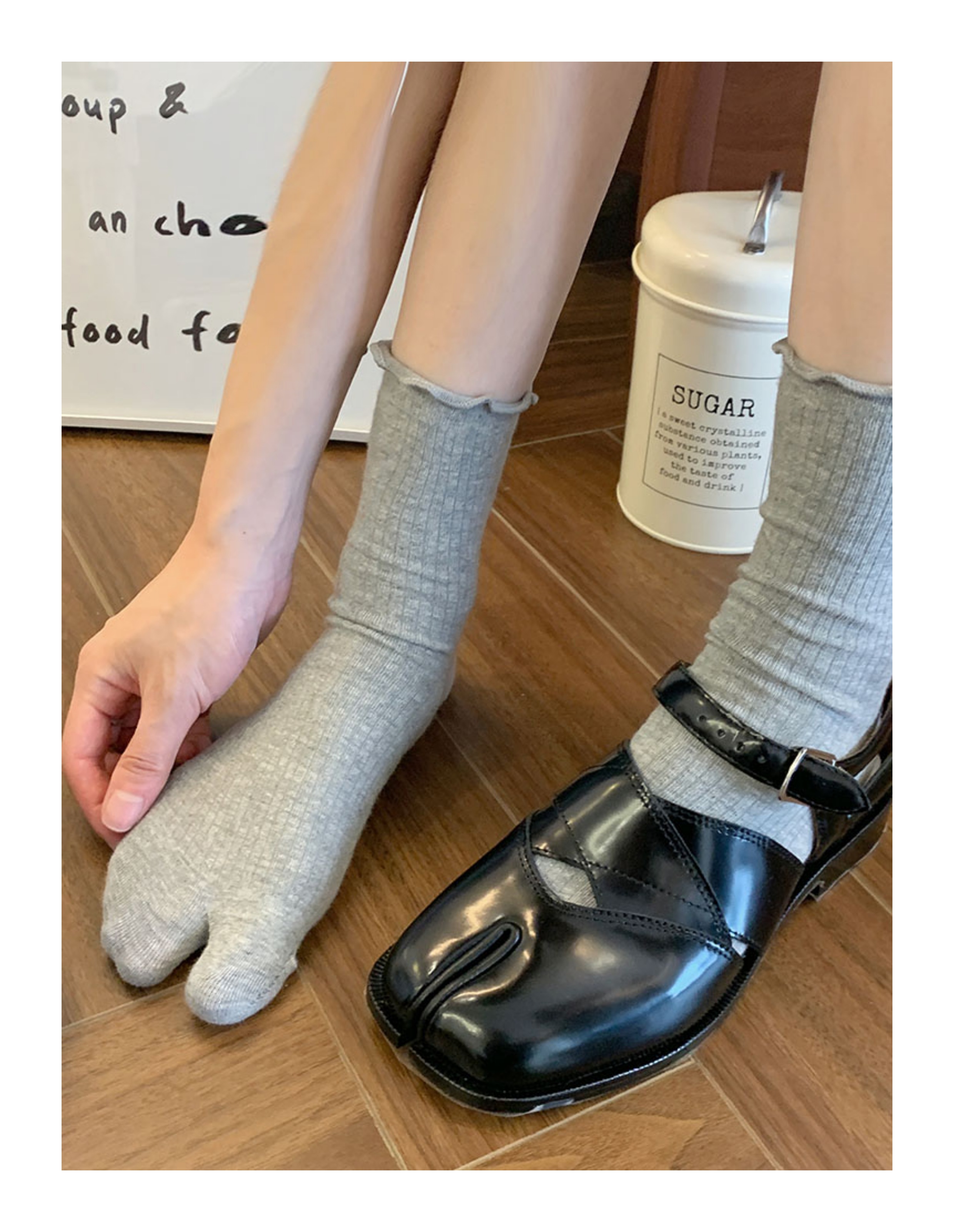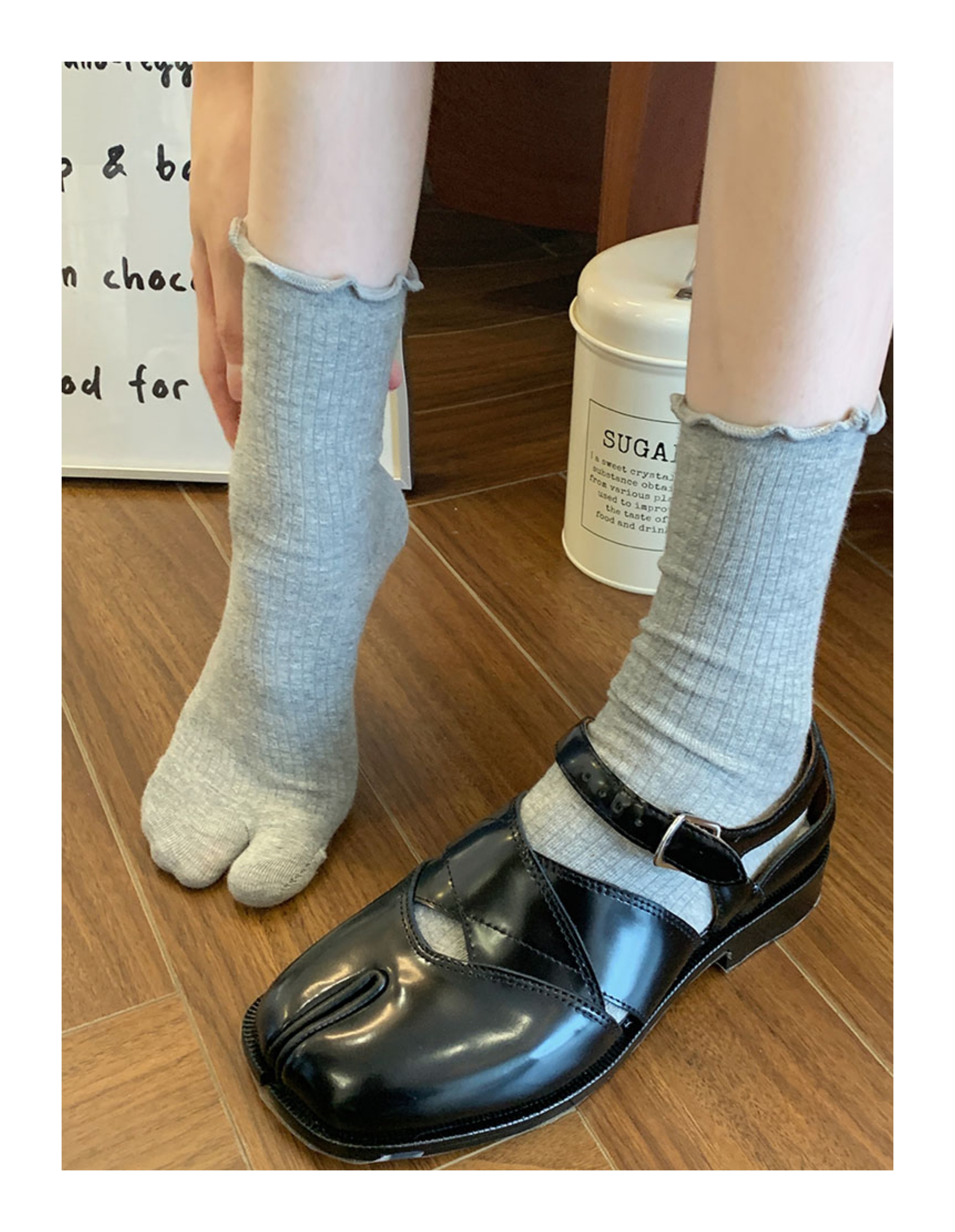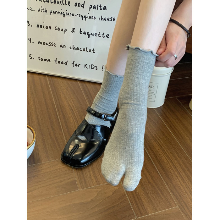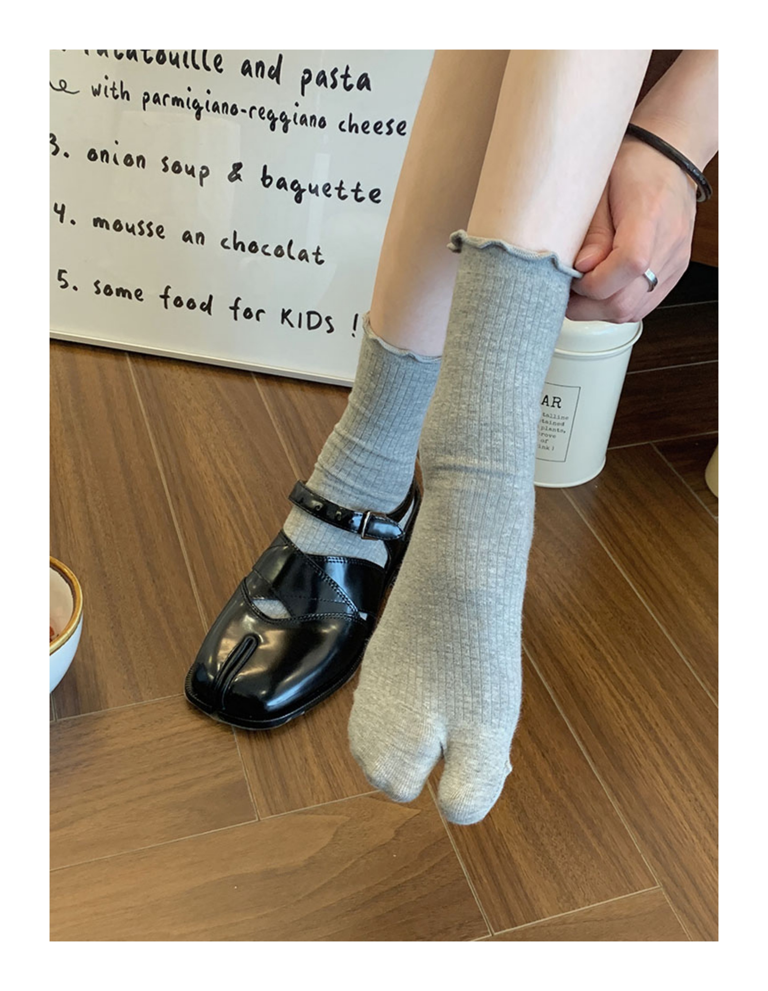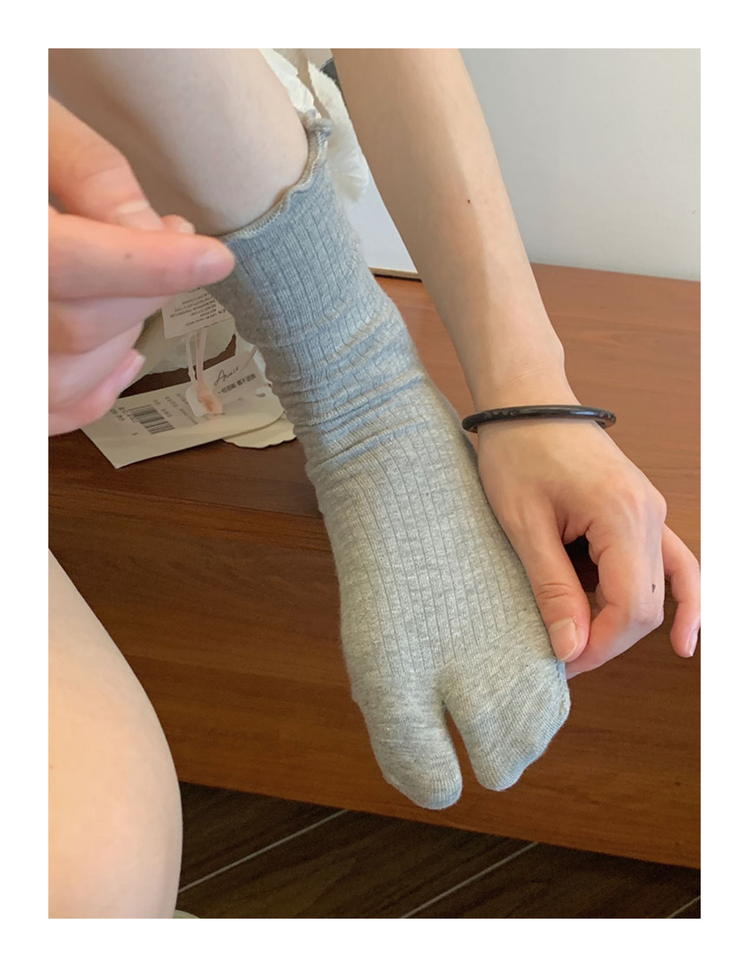 灰色分指襪春秋百搭簡約ins潮豬蹄襪純棉竪條紋分趾花邊中筒襪女