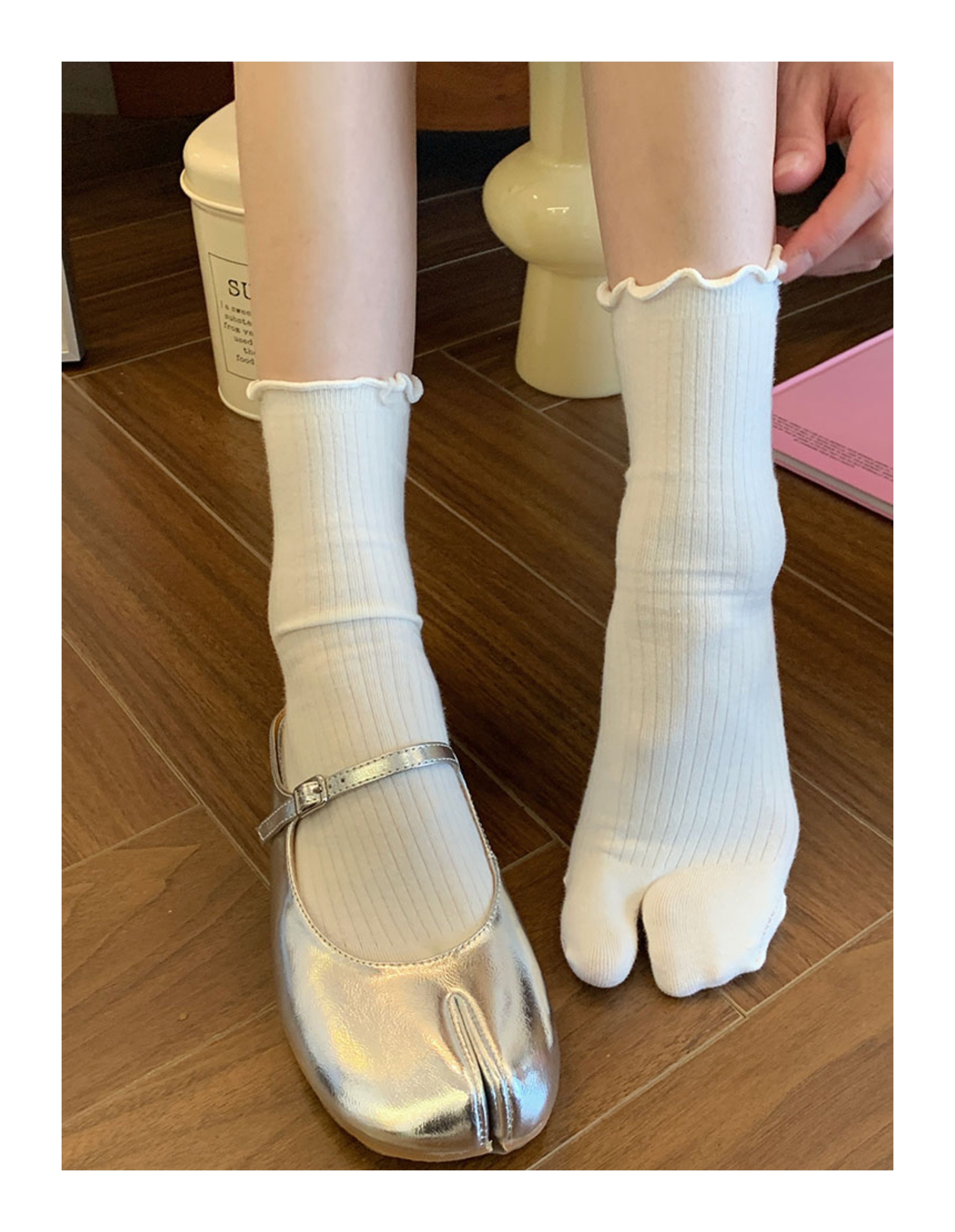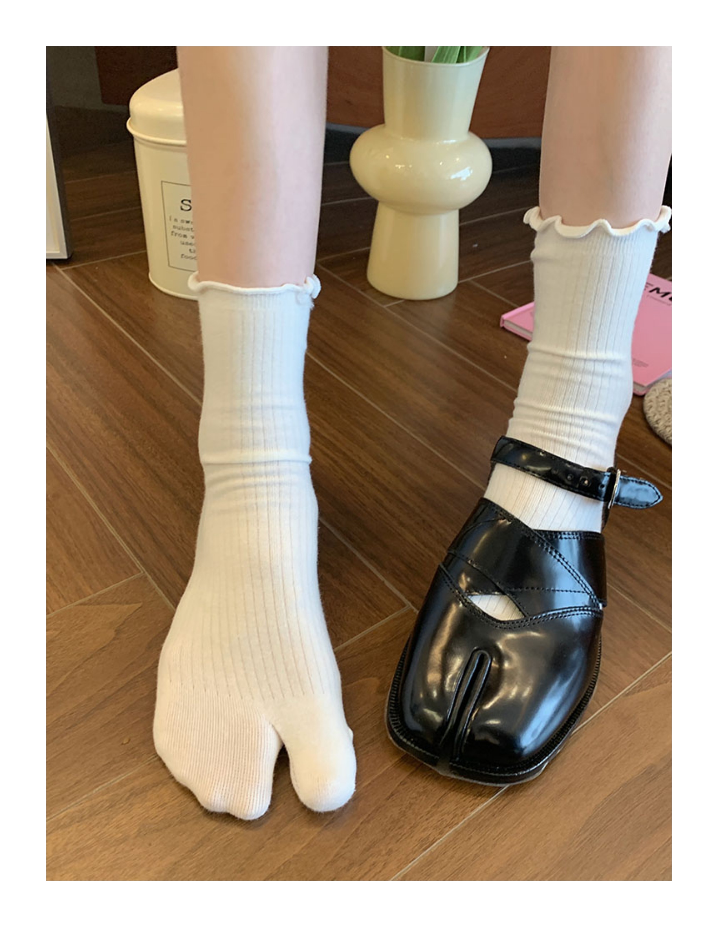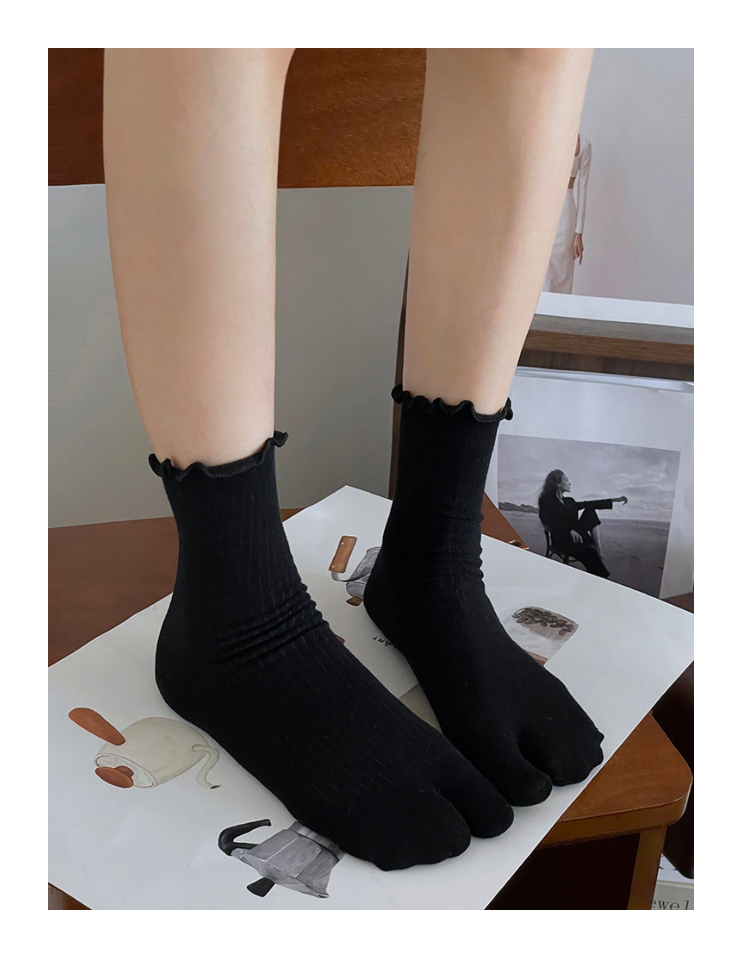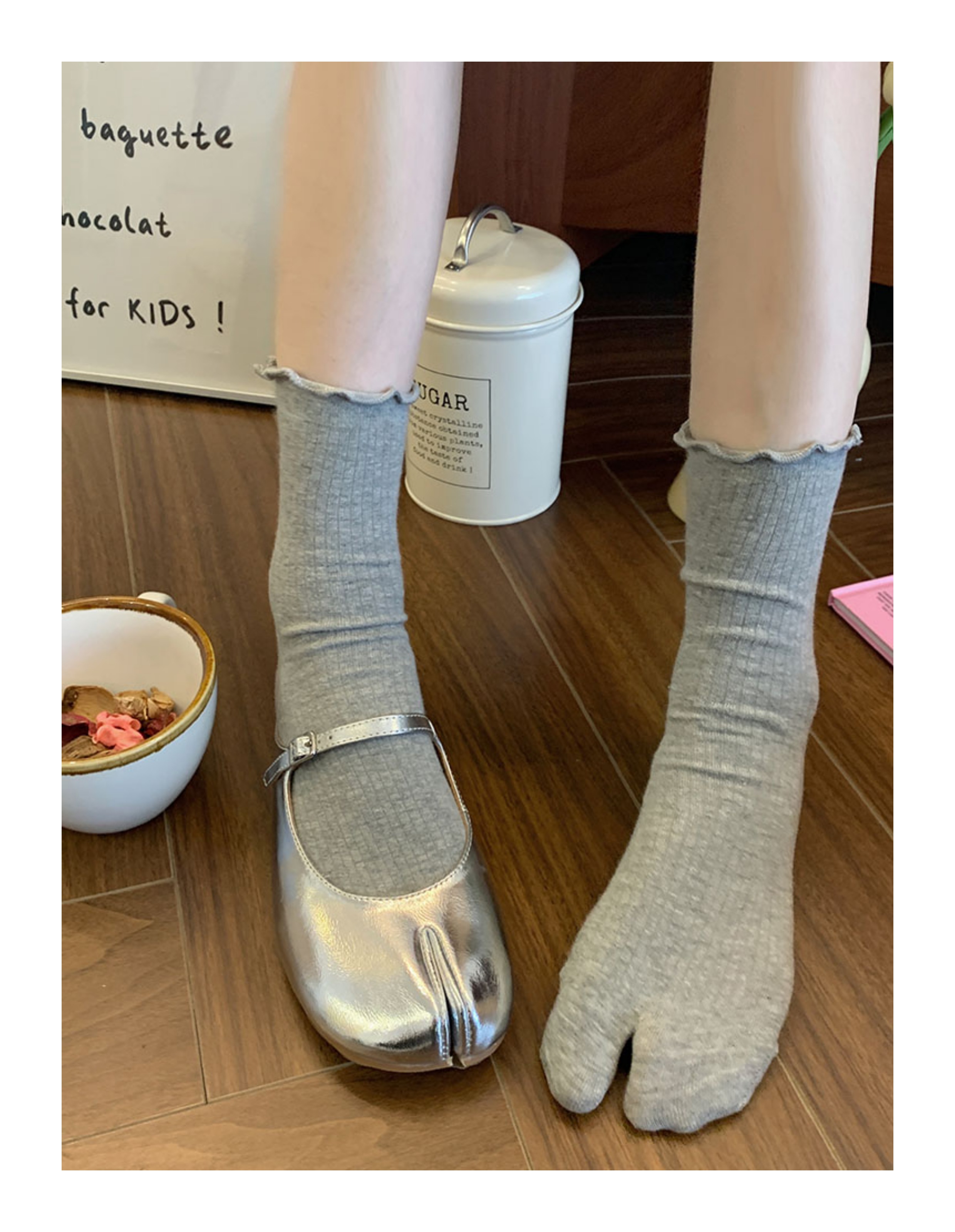 灰色分指襪春秋百搭簡約ins潮豬蹄襪純棉竪條紋分趾花邊中筒襪女