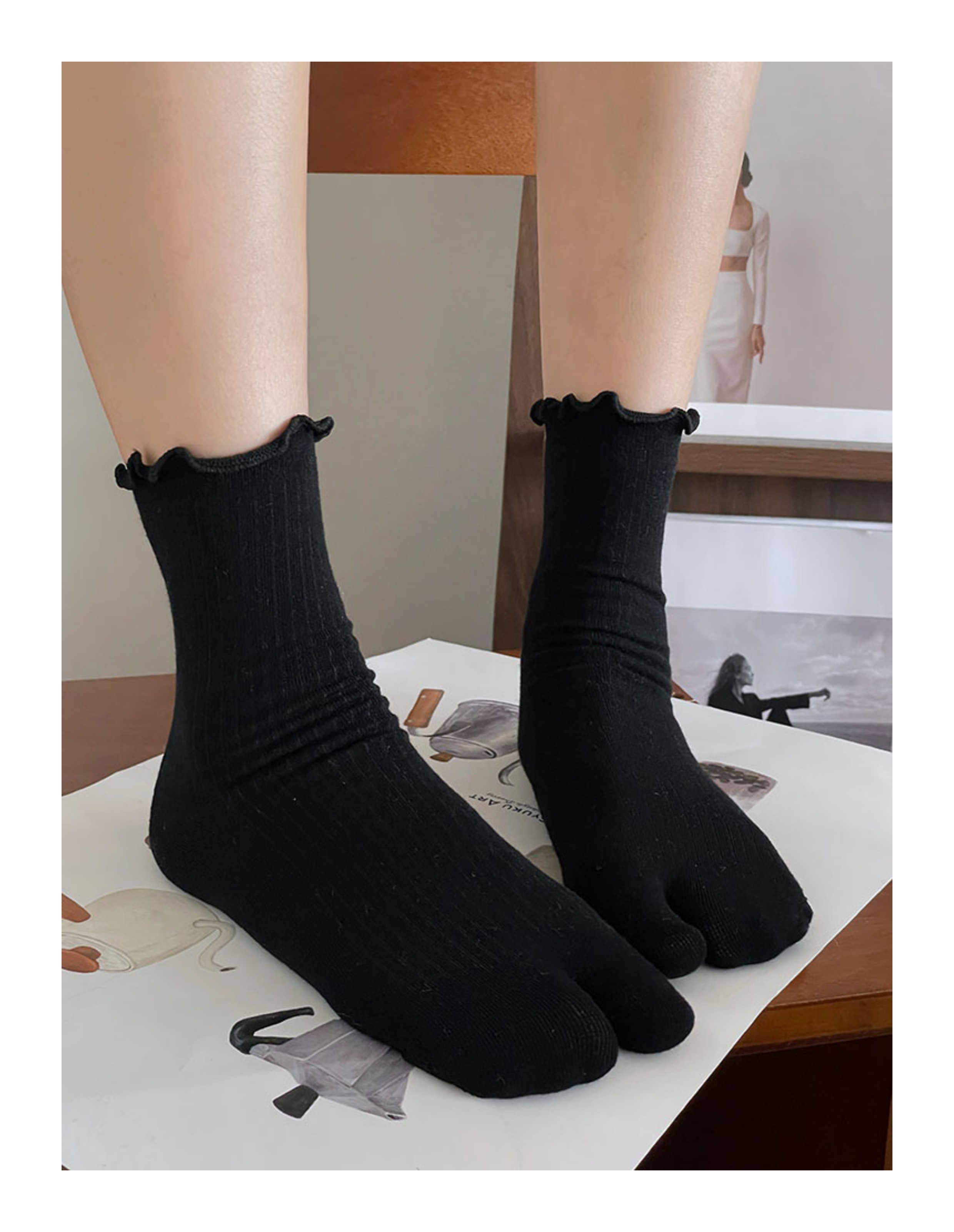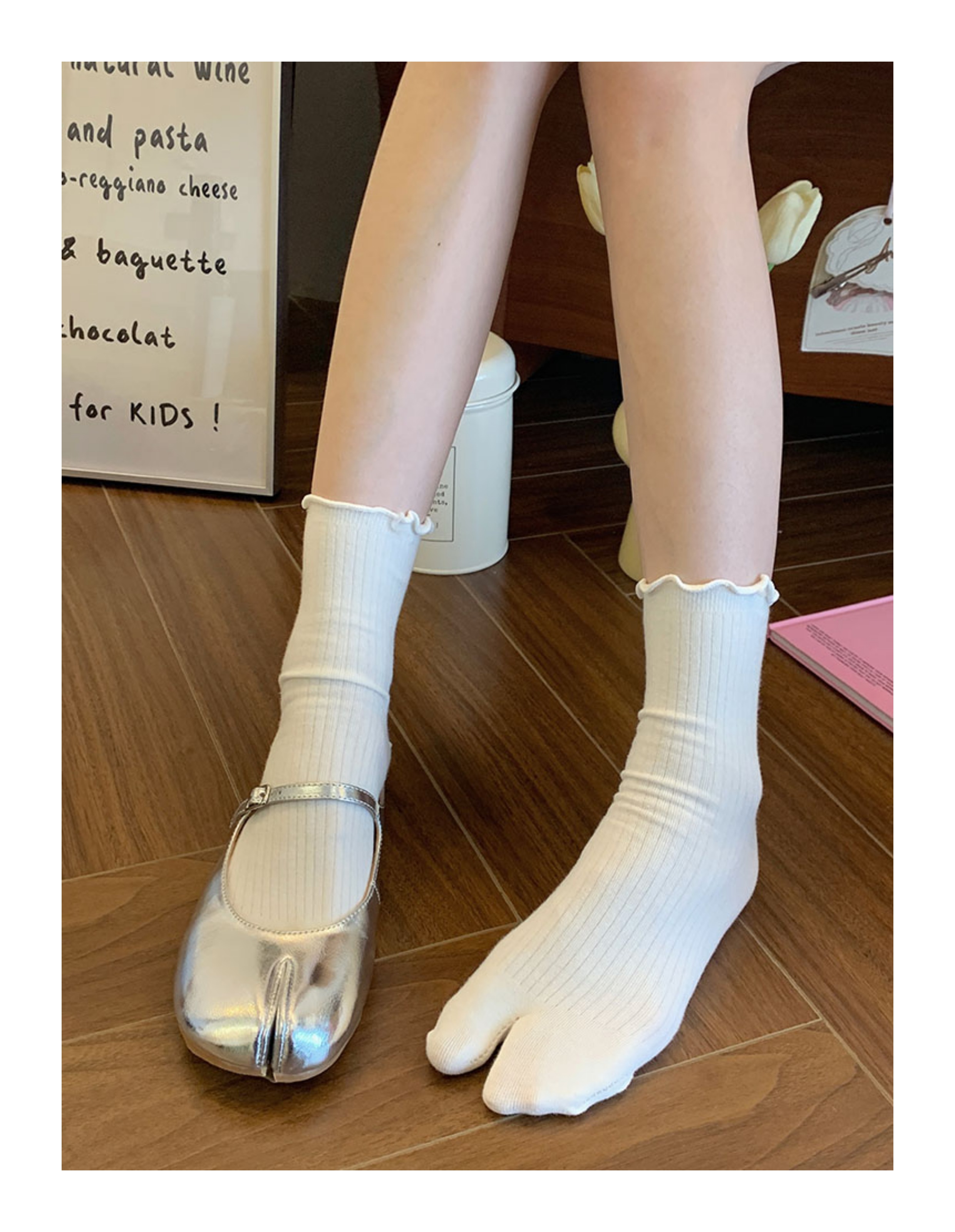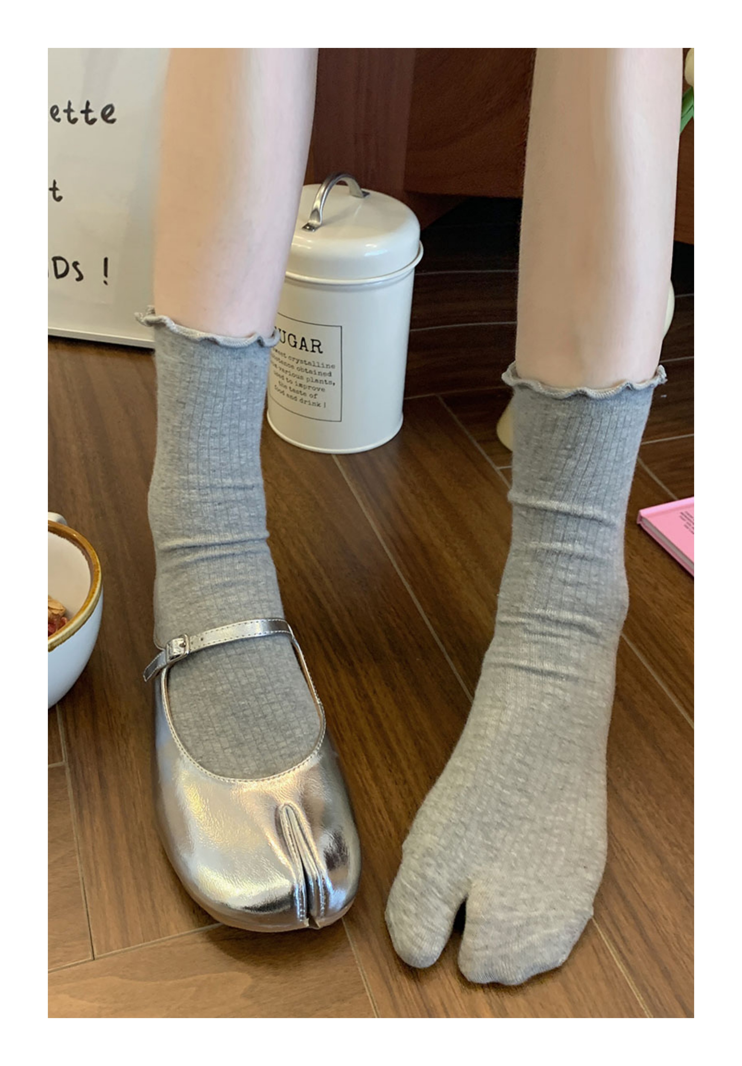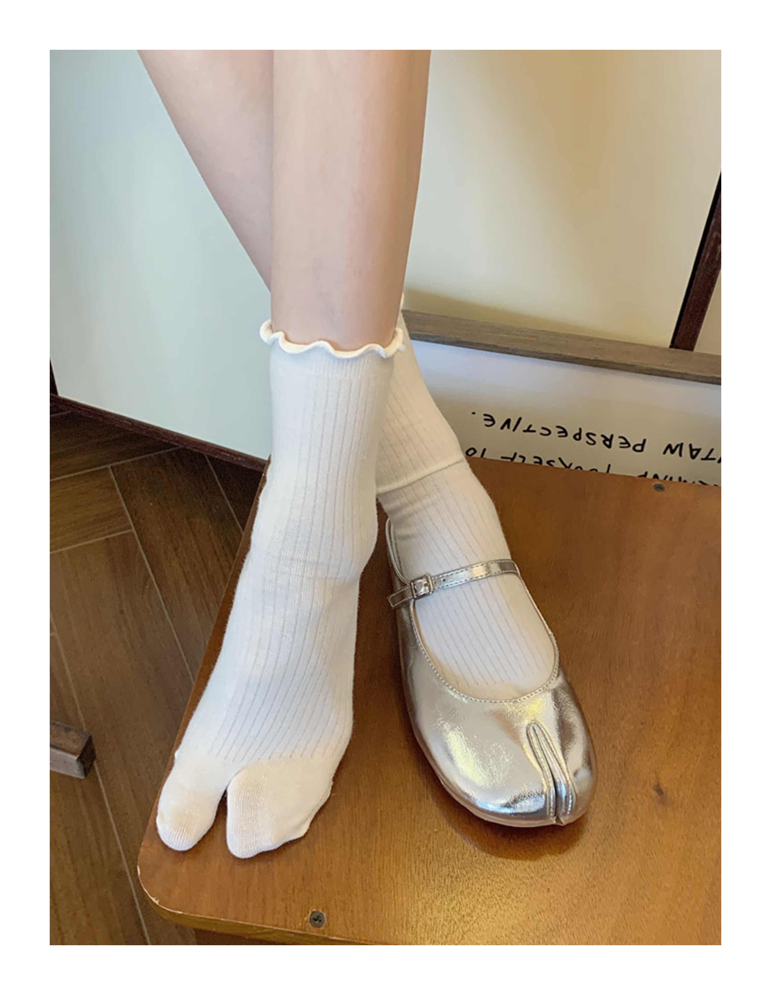 灰色分指襪春秋百搭簡約ins潮豬蹄襪純棉竪條紋分趾花邊中筒襪女