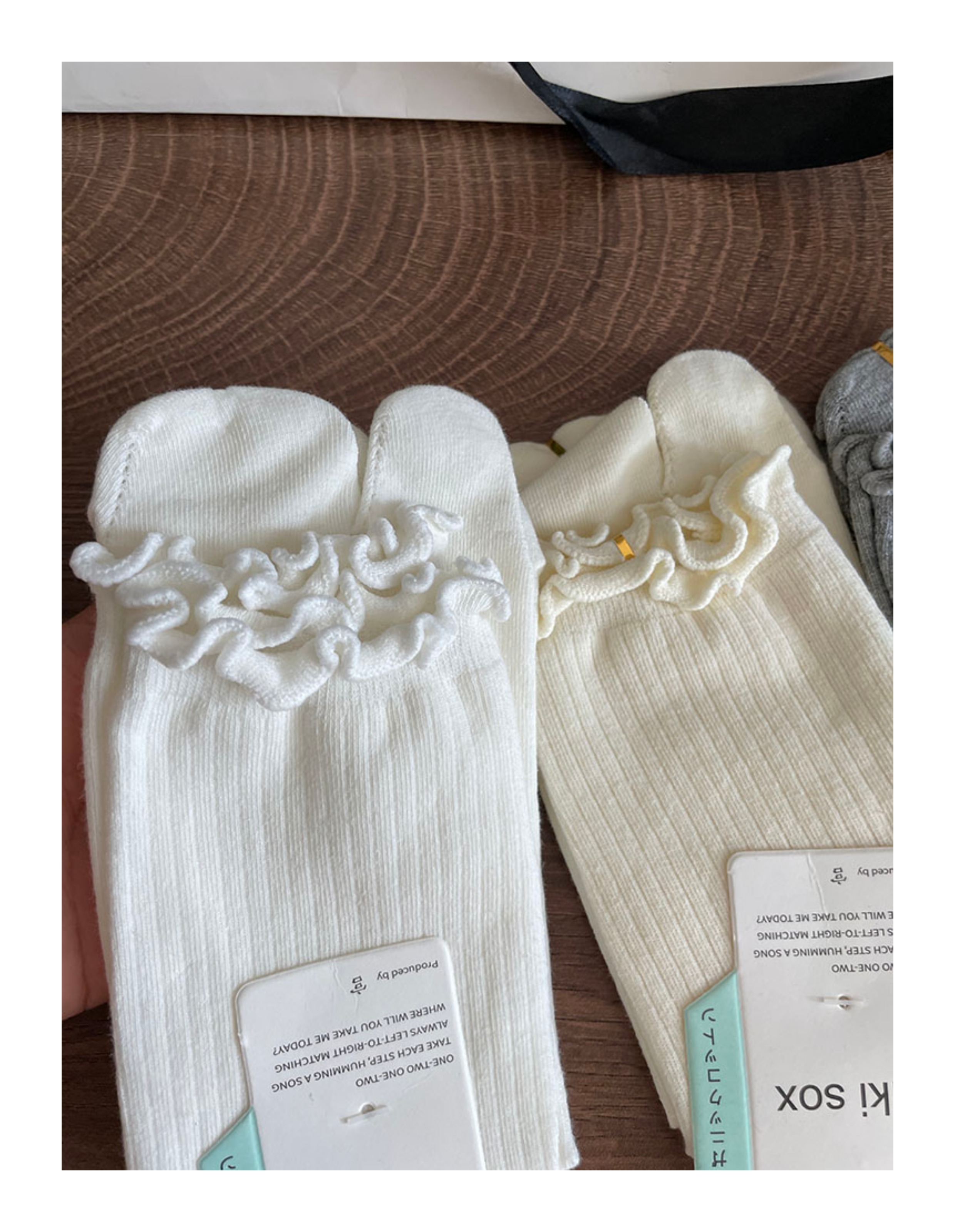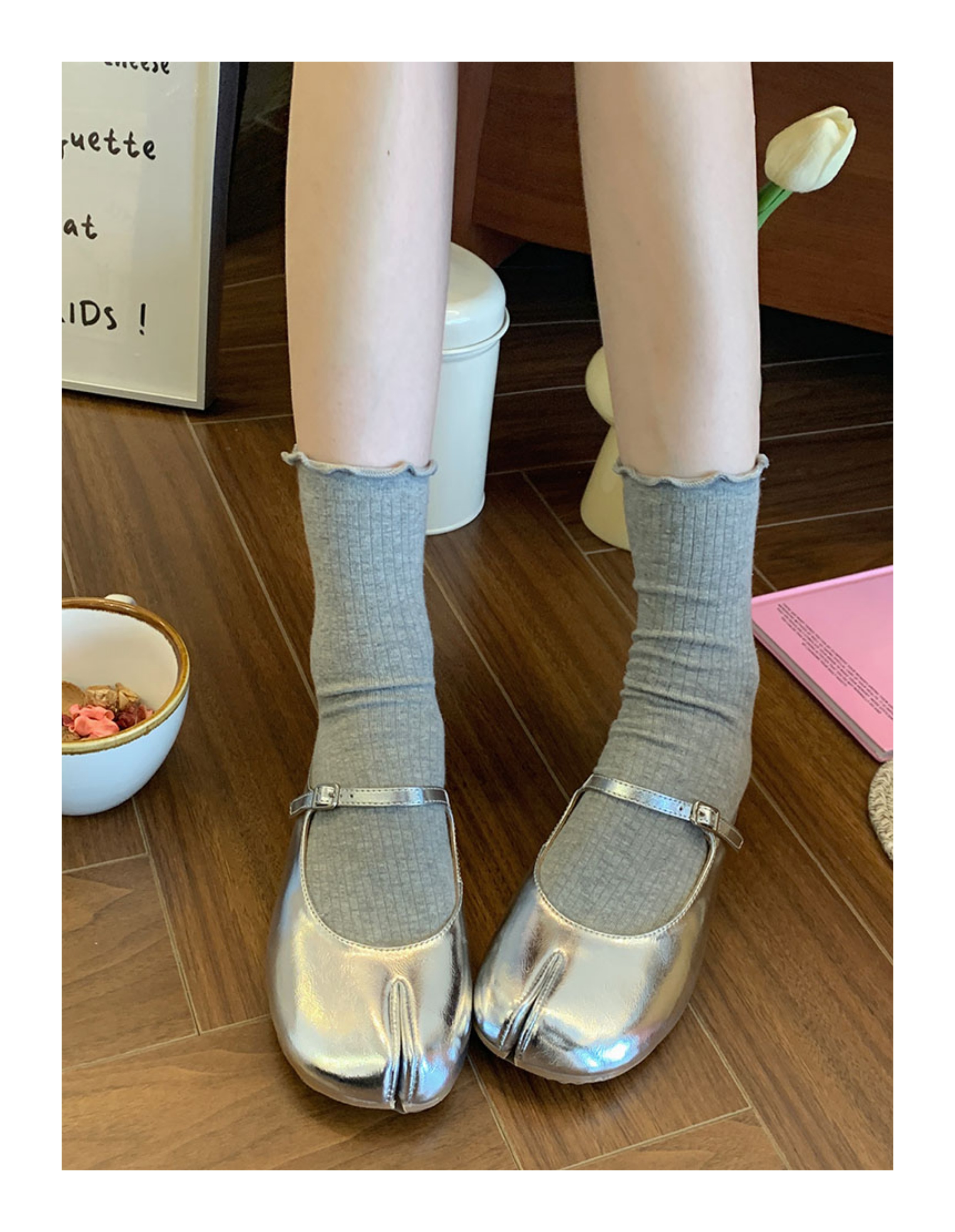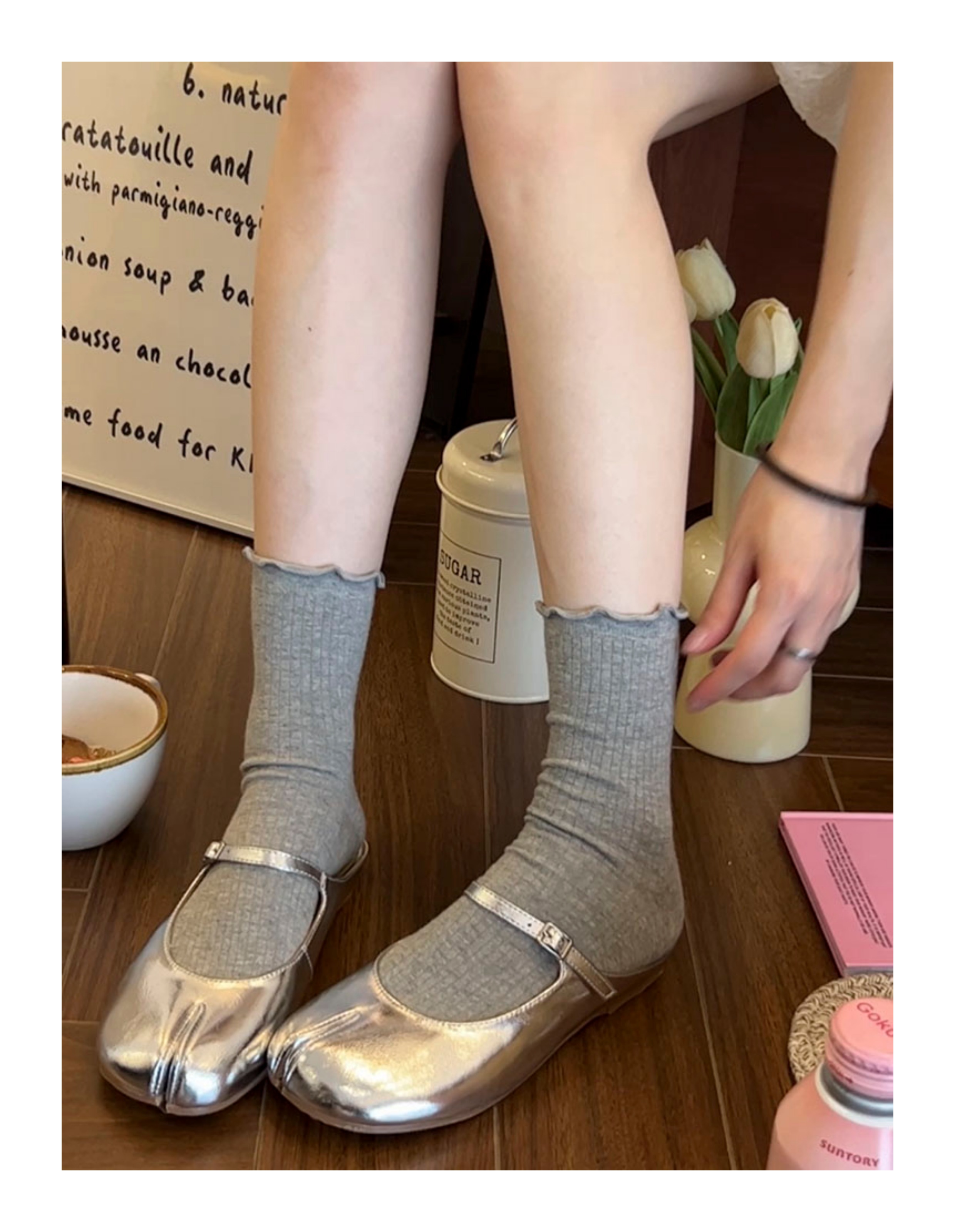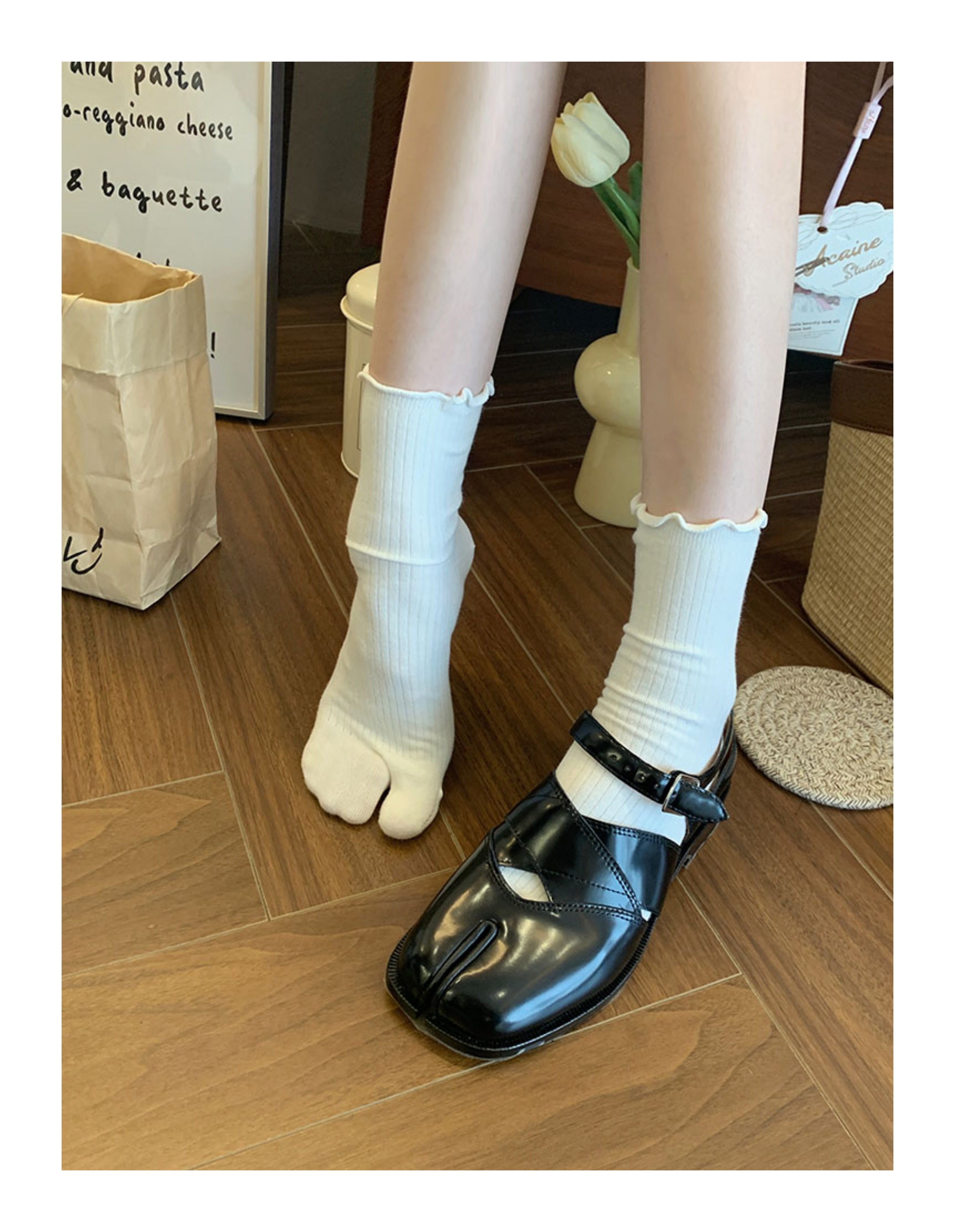 灰色分指襪春秋百搭簡約ins潮豬蹄襪純棉竪條紋分趾花邊中筒襪女