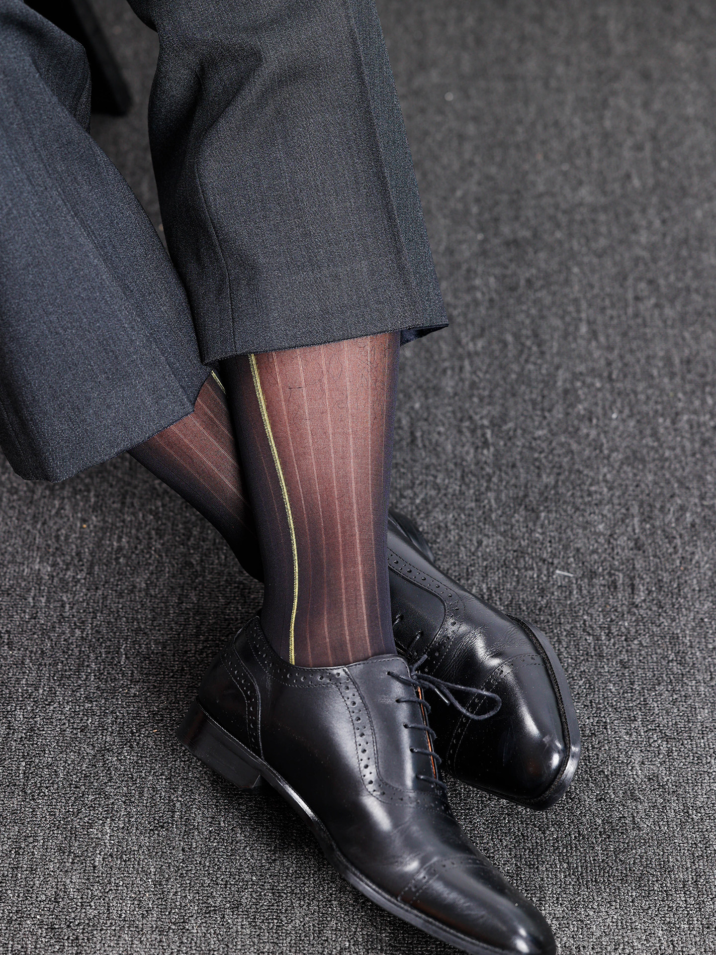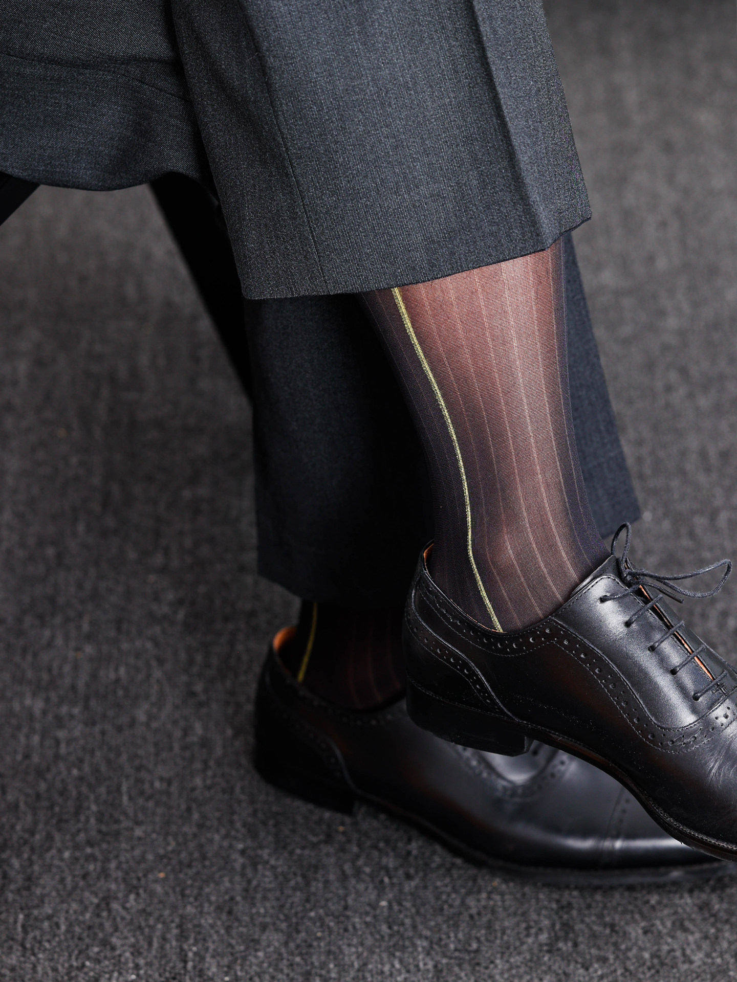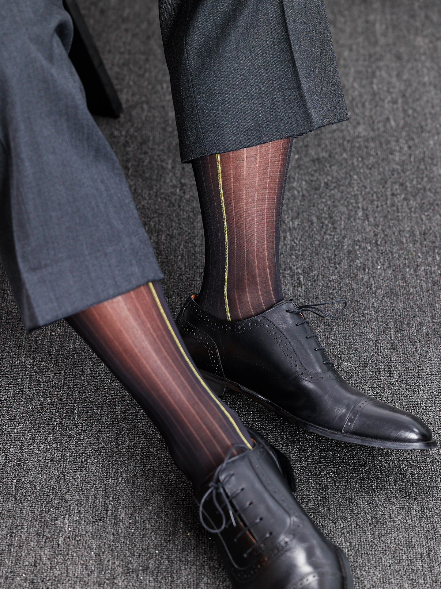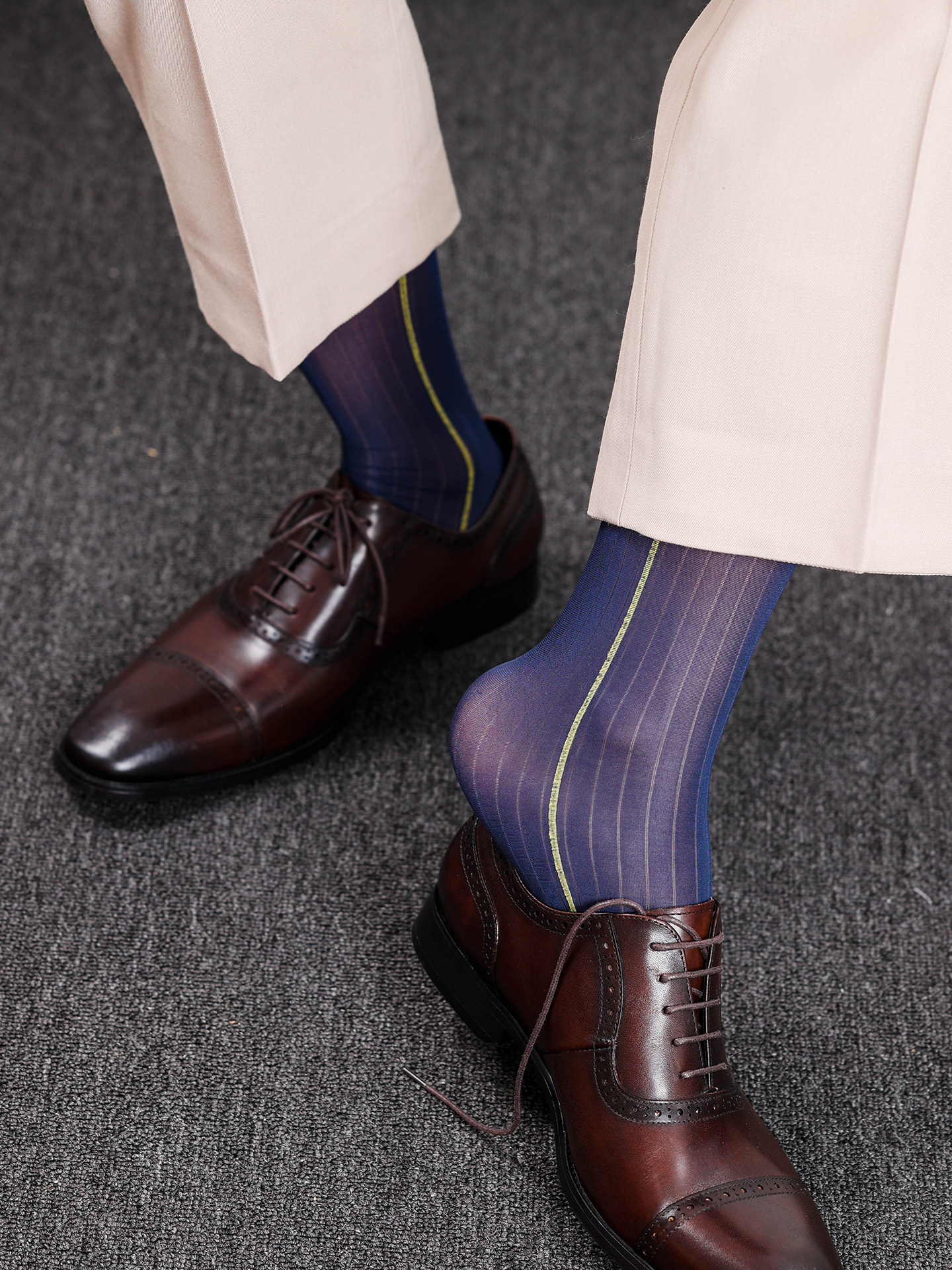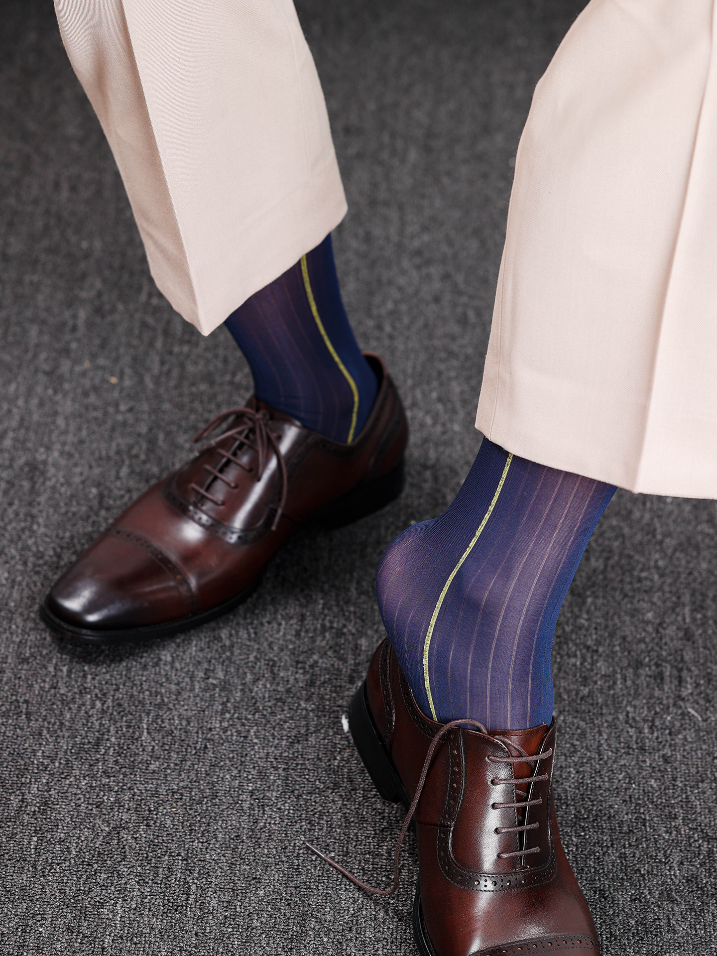 男士正裝金線條寬條紋絲襪男士薄款商務襪紳士西裝長筒襪