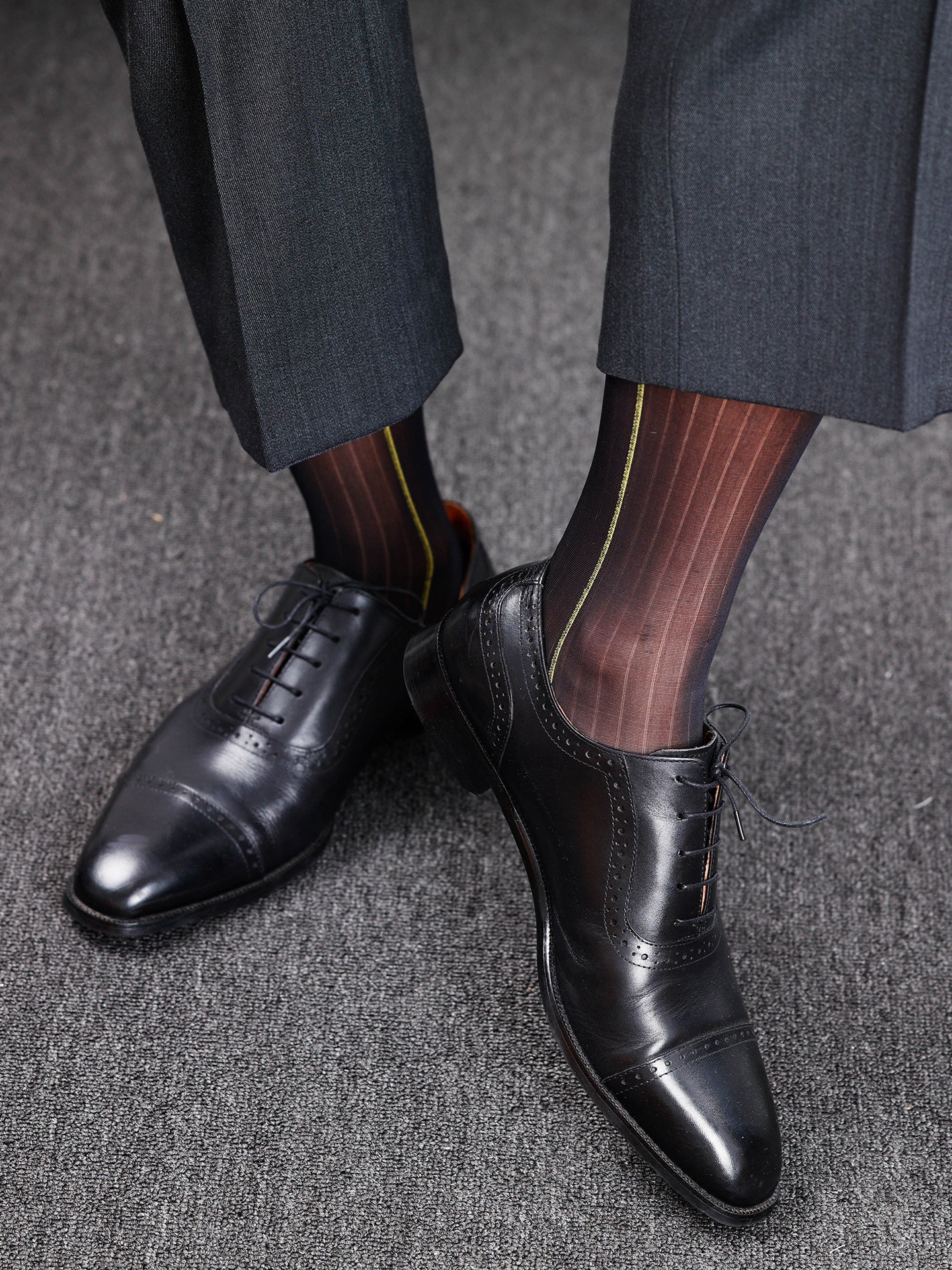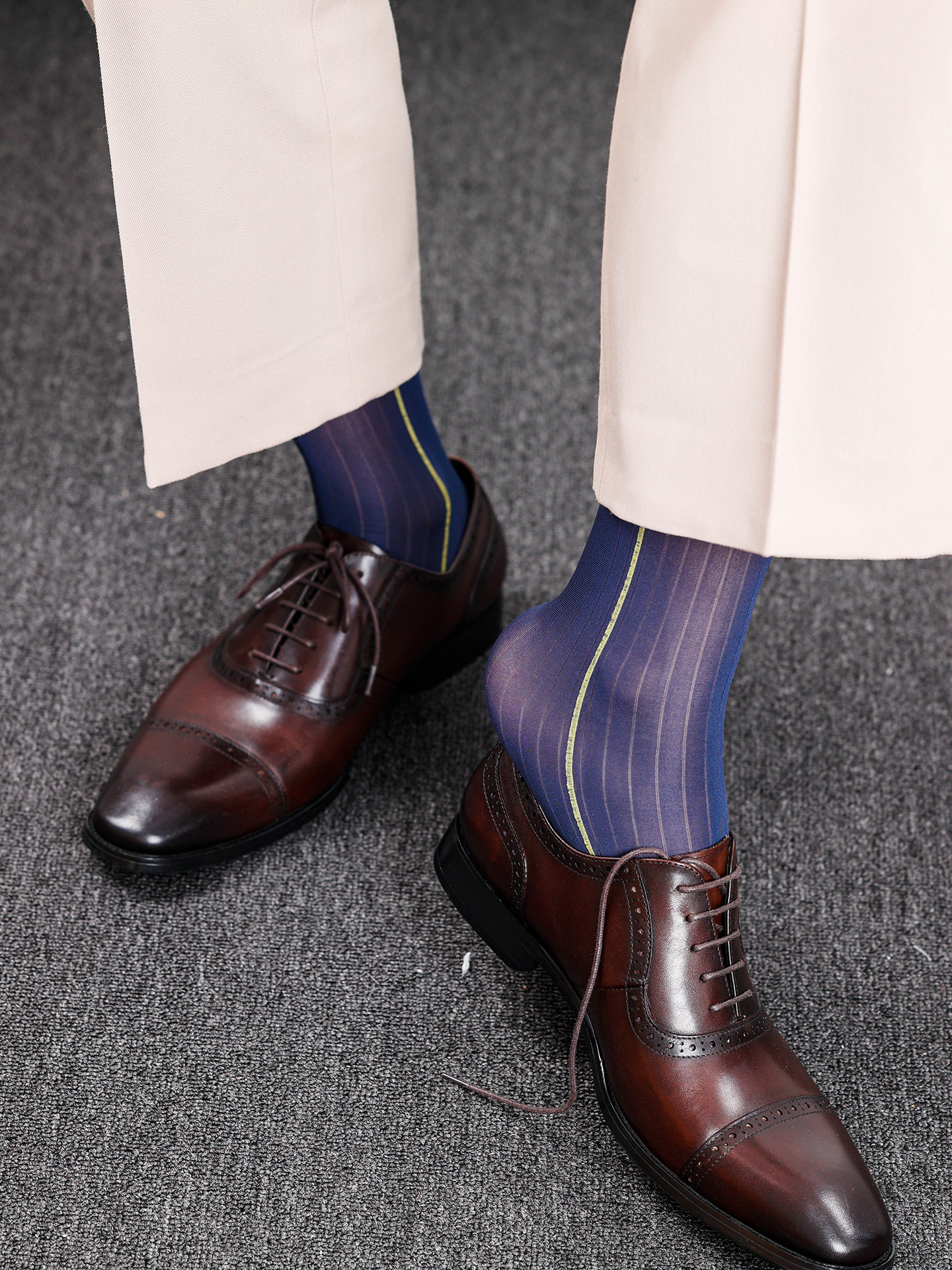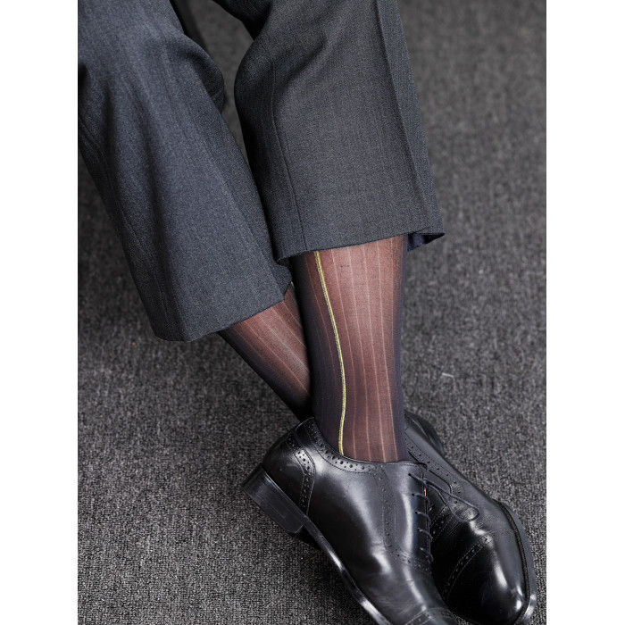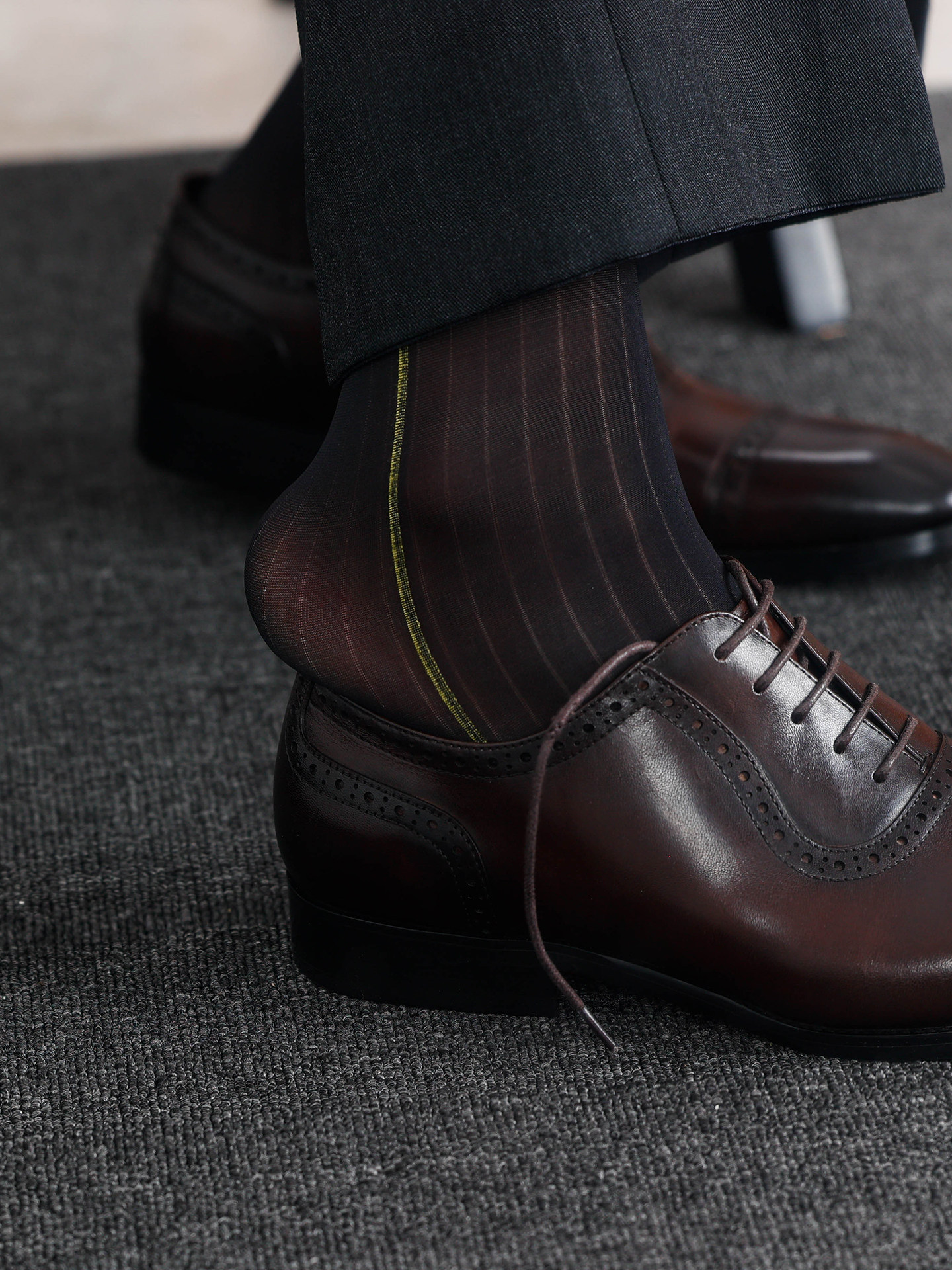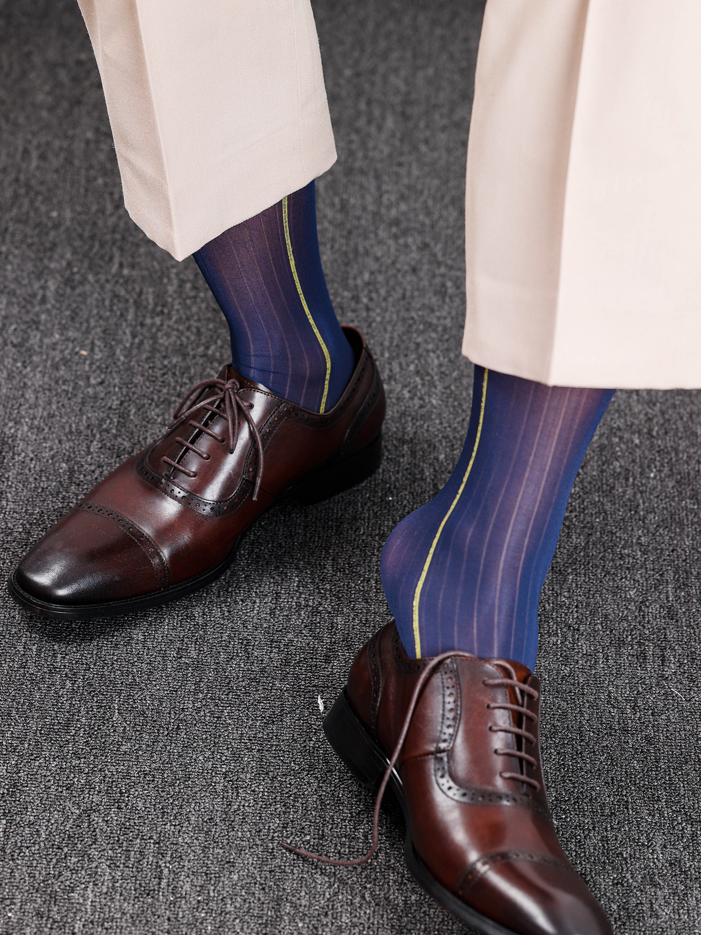 男士正裝金線條寬條紋絲襪男士薄款商務襪紳士西裝長筒襪
