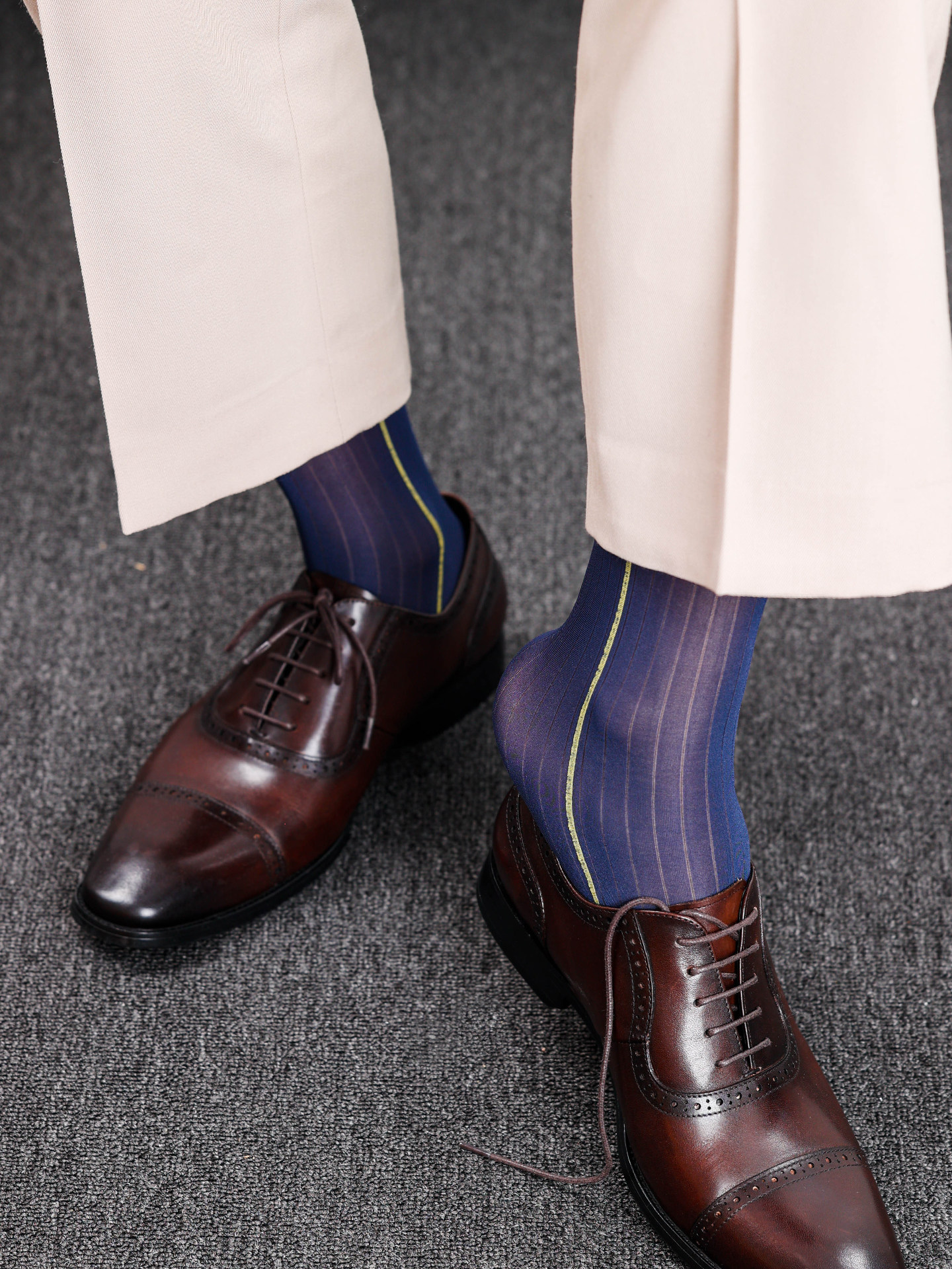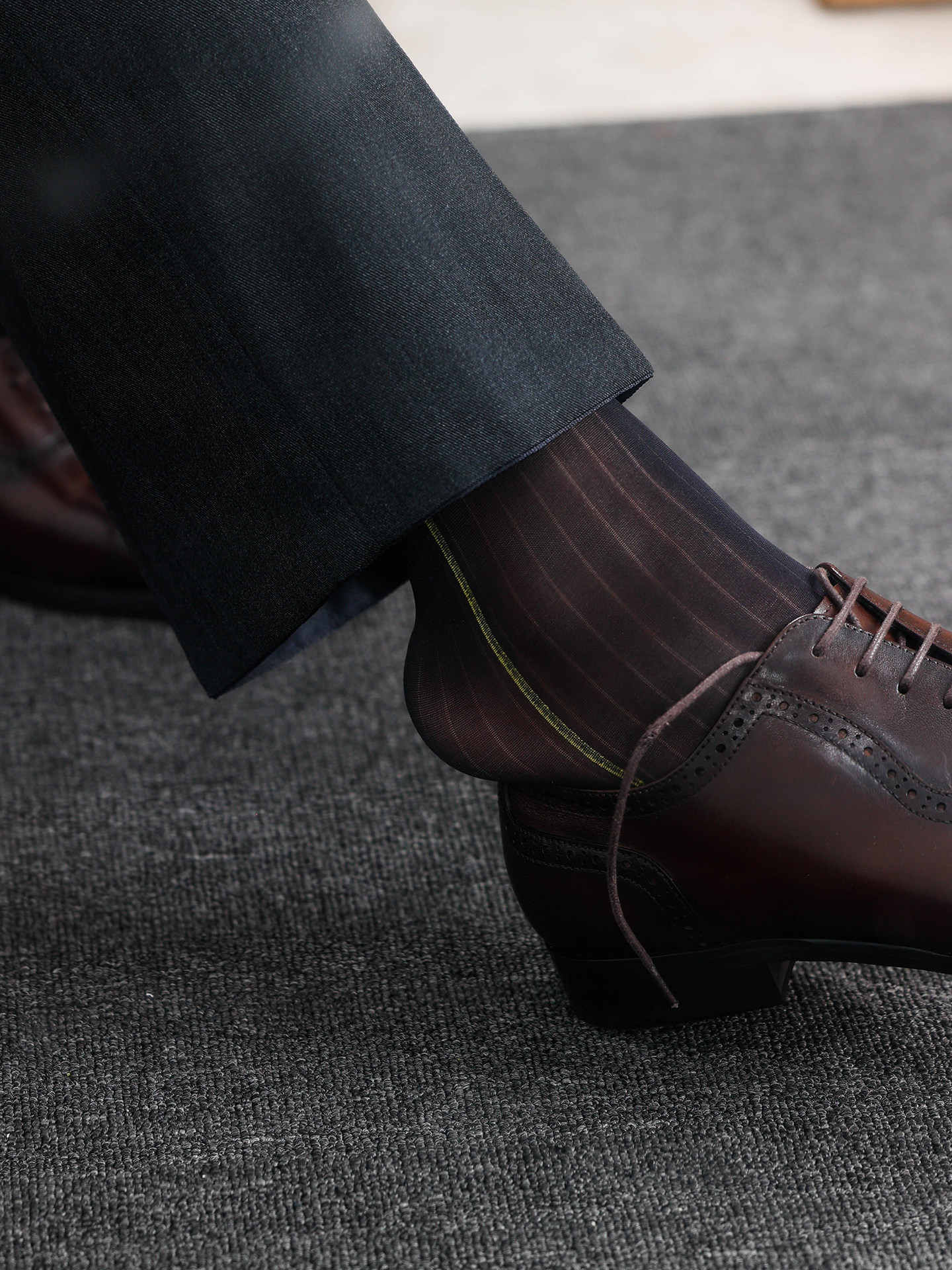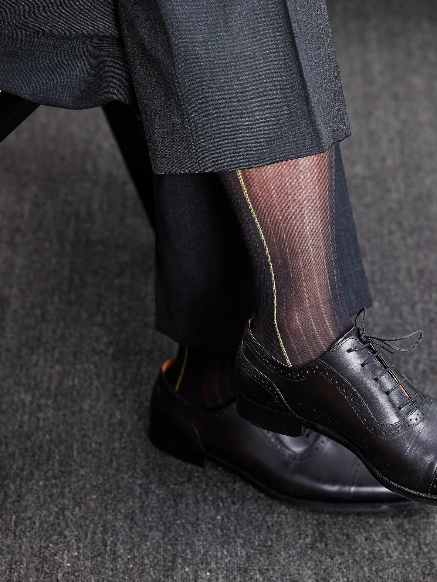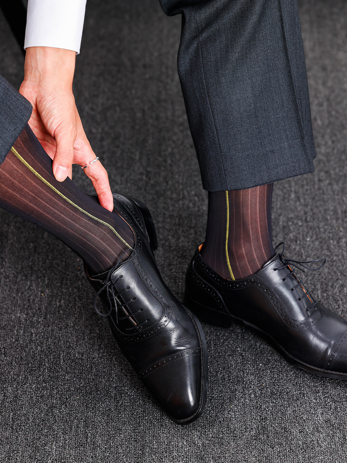男士正裝金線條寬條紋絲襪男士薄款商務襪紳士西裝長筒襪