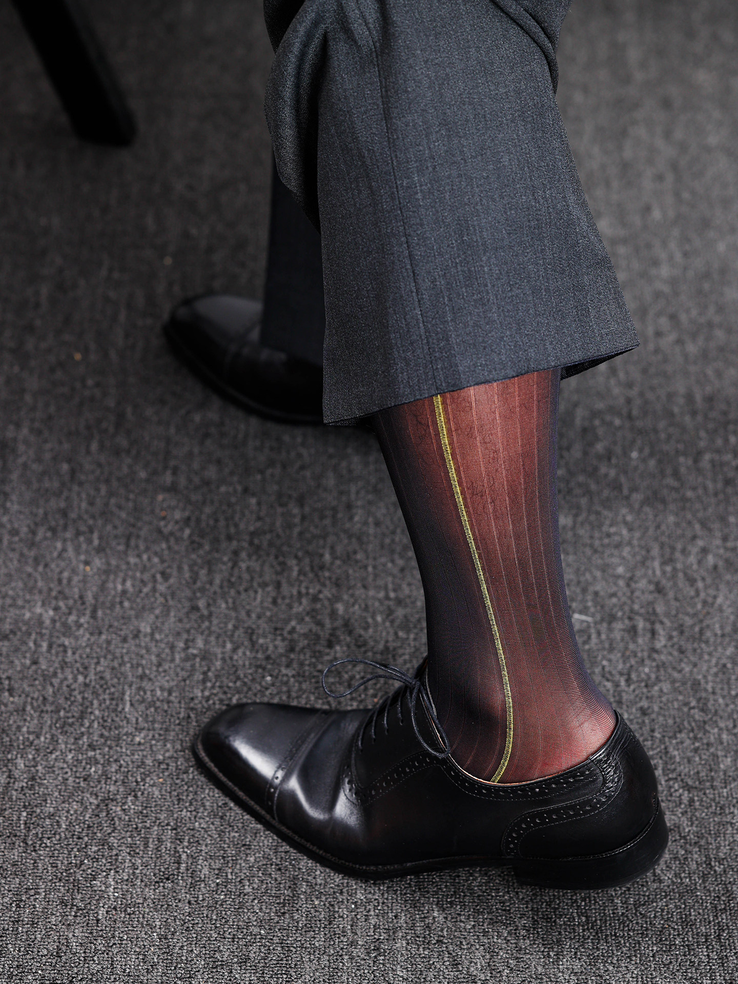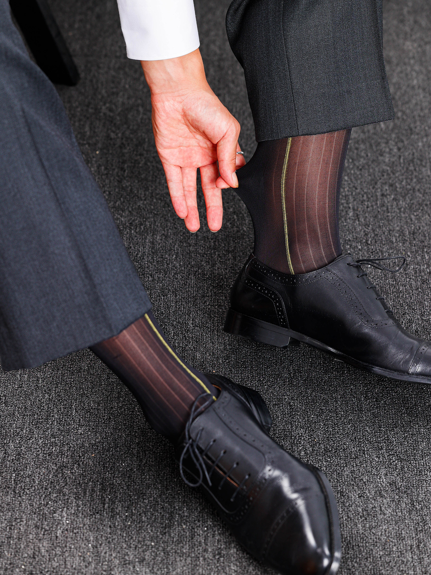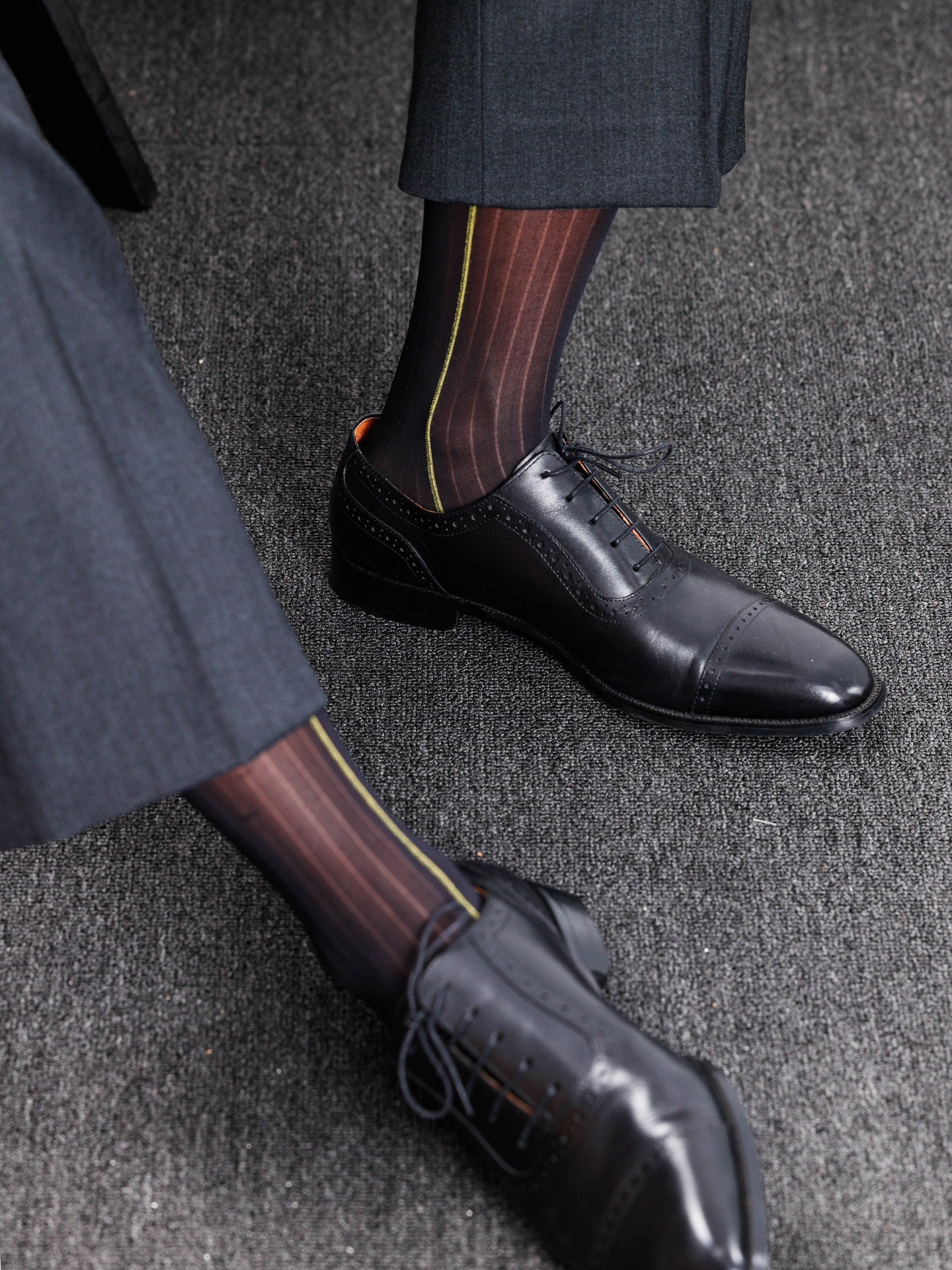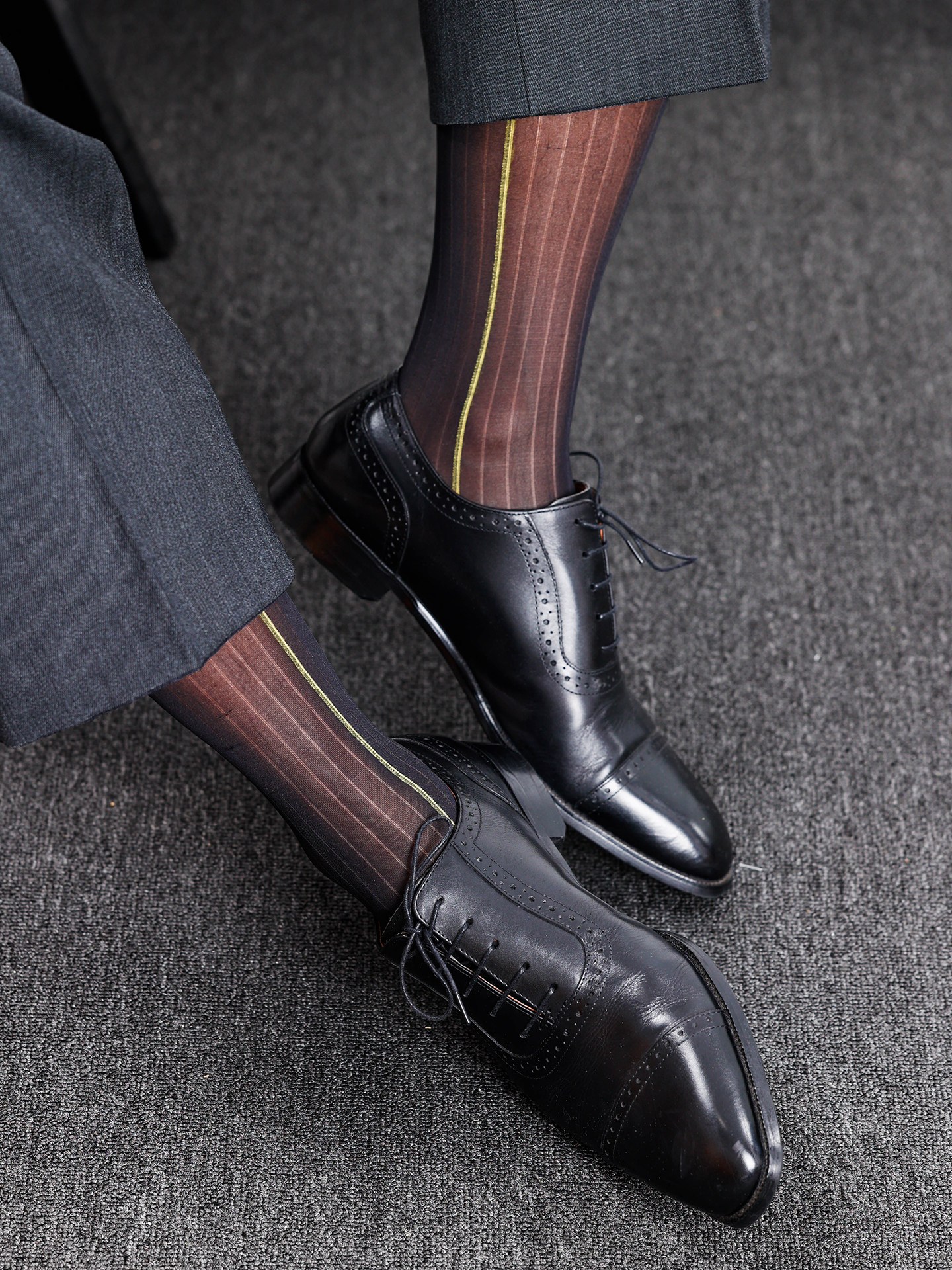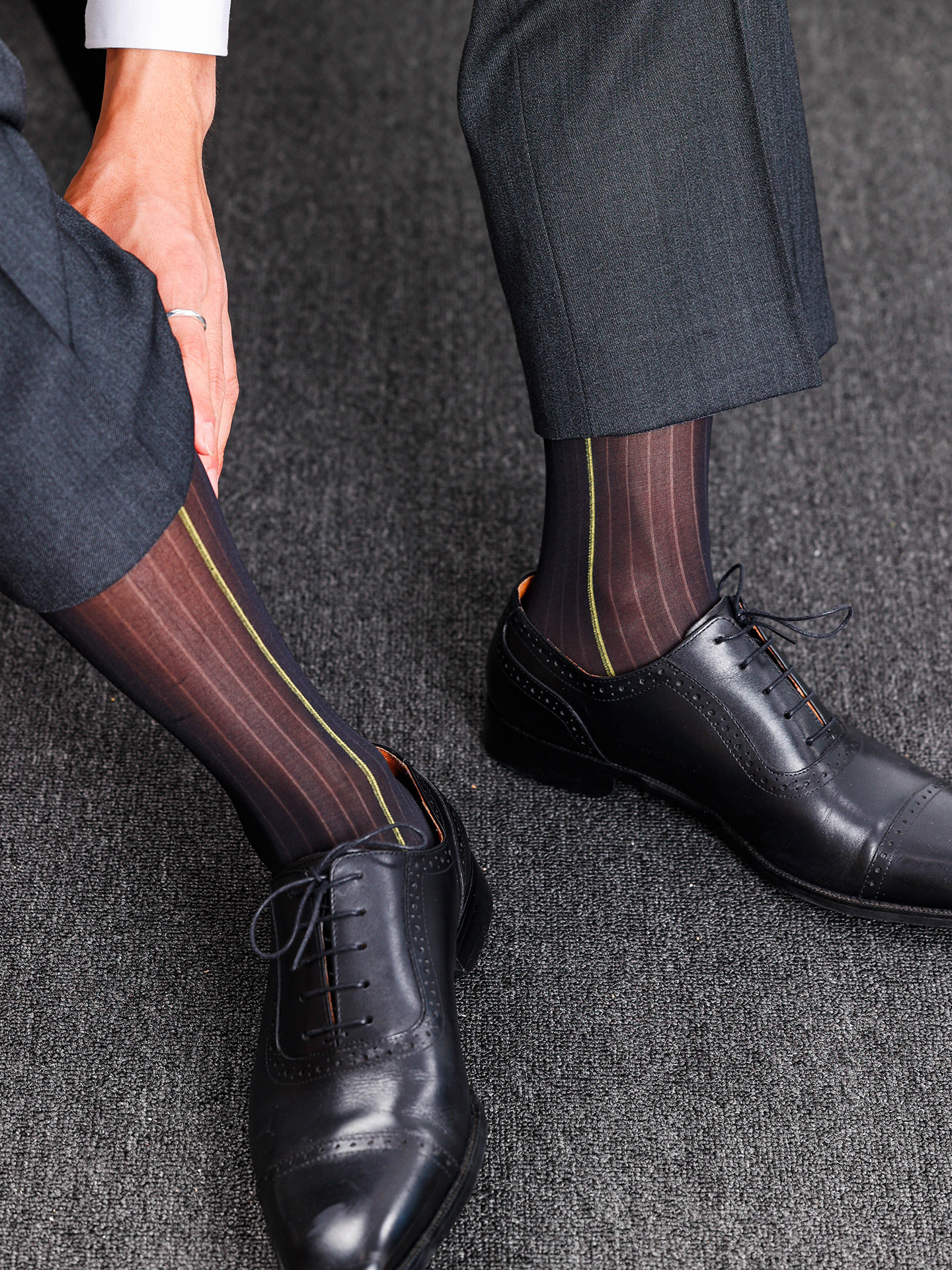 男士正裝金線條寬條紋絲襪男士薄款商務襪紳士西裝長筒襪