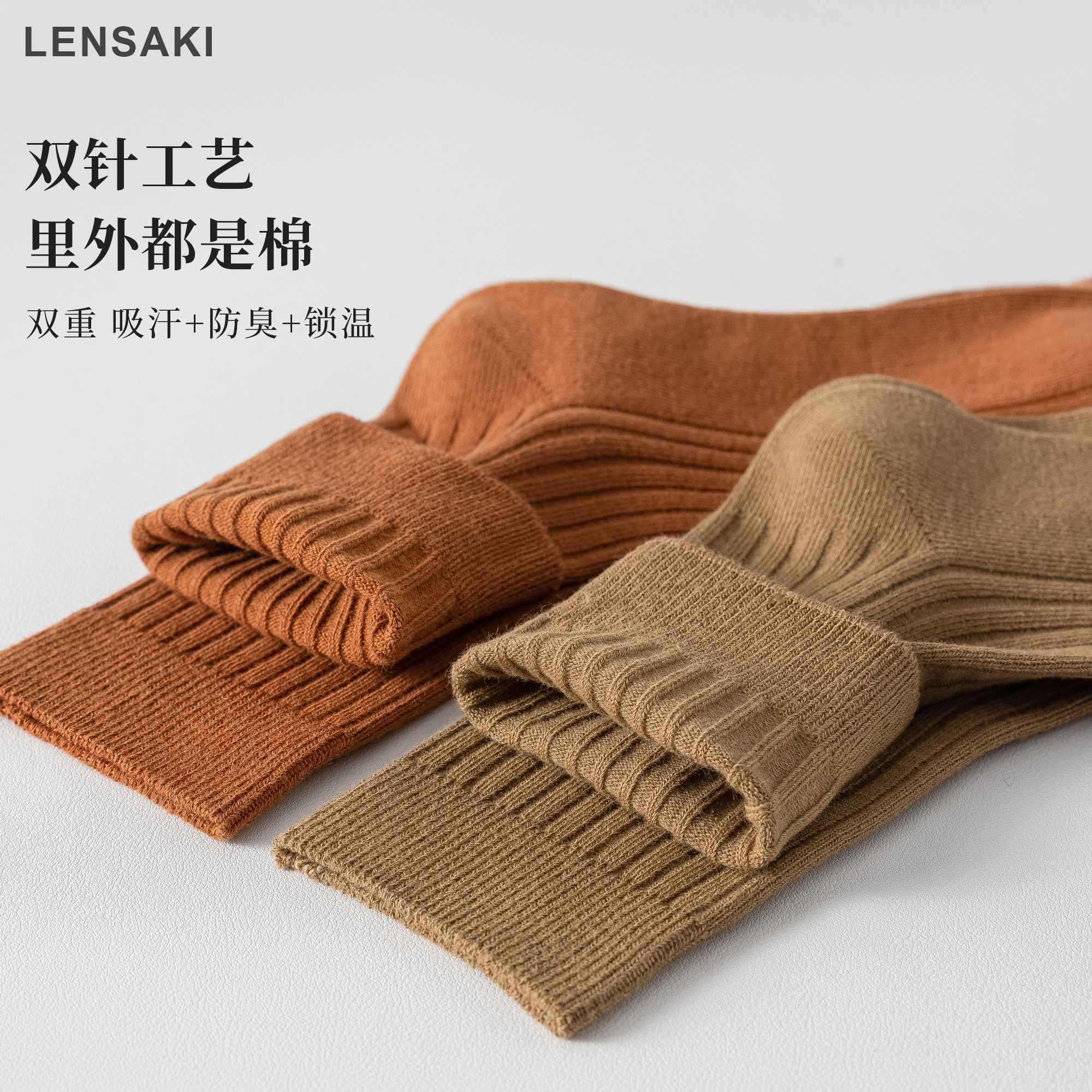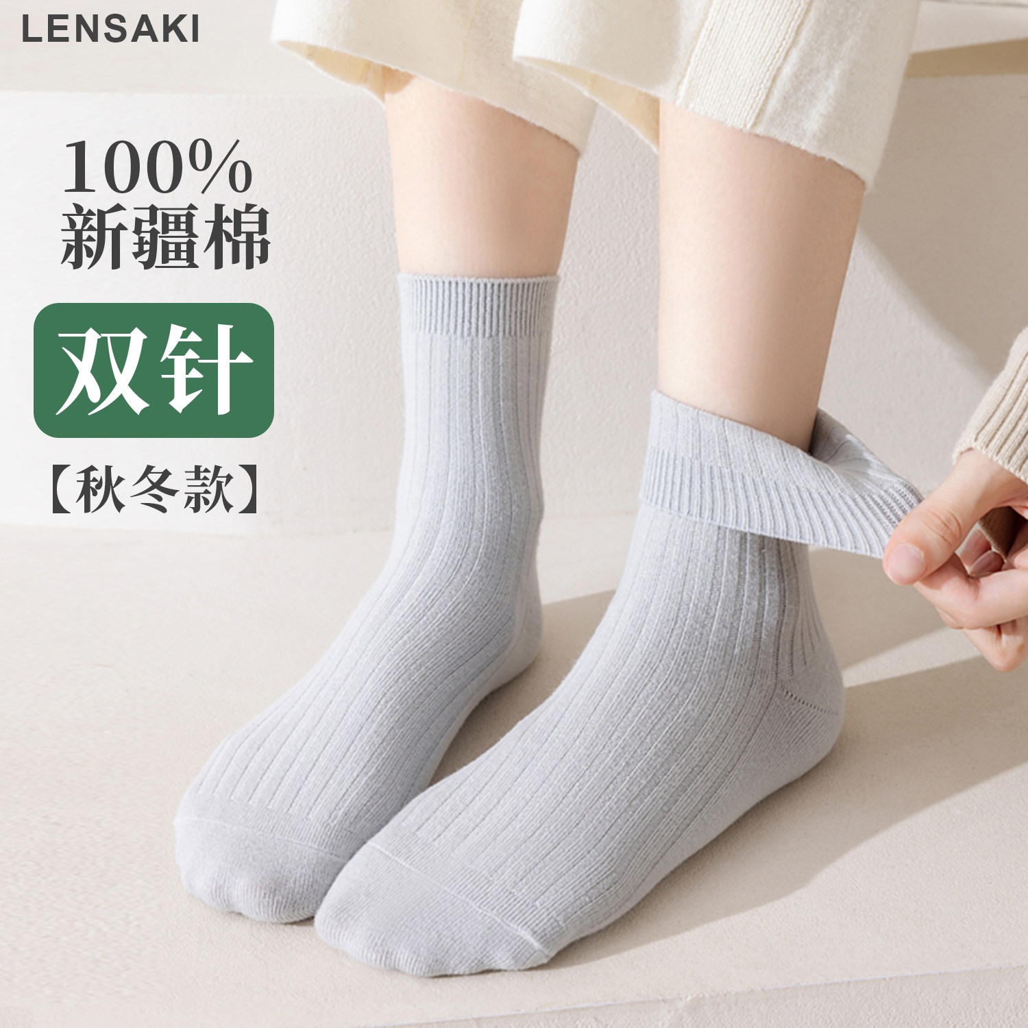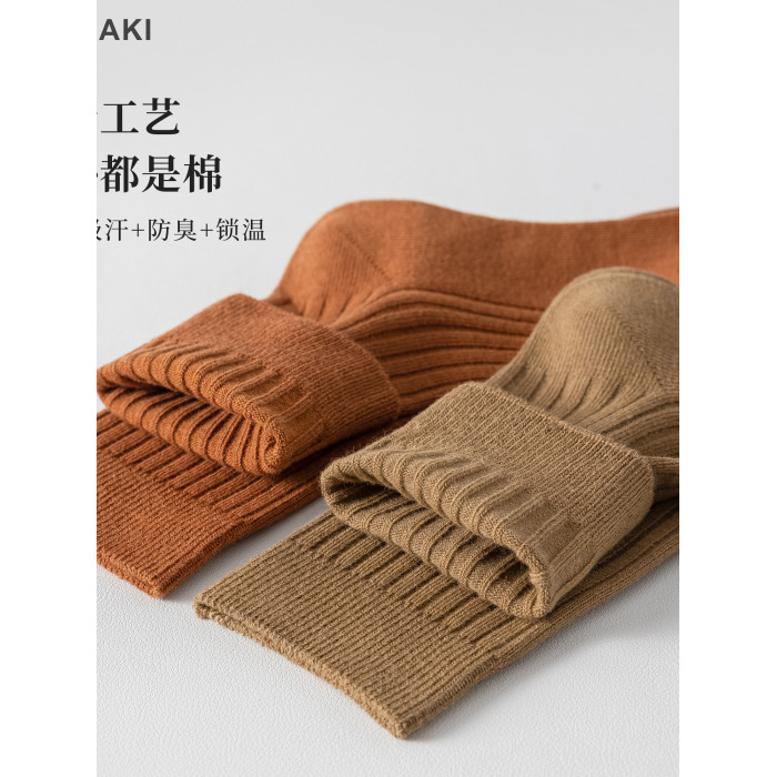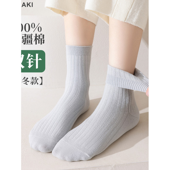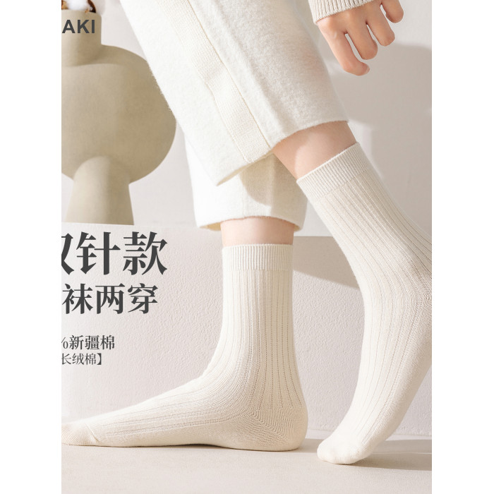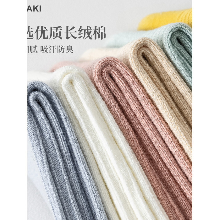 【10雙】女士雙針秋冬款中筒棉襪吸汗防臭美拉德女襪子