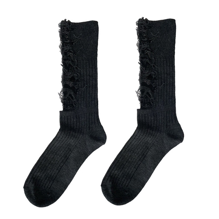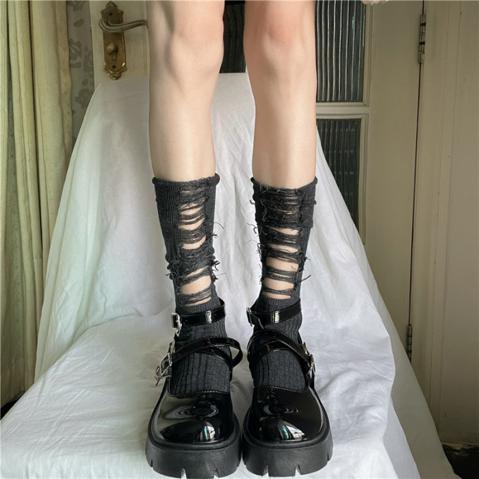吾等是貓 乞丐襪破洞個性小腿襪潮黑白灰三色設計感剪裁ins短襪女