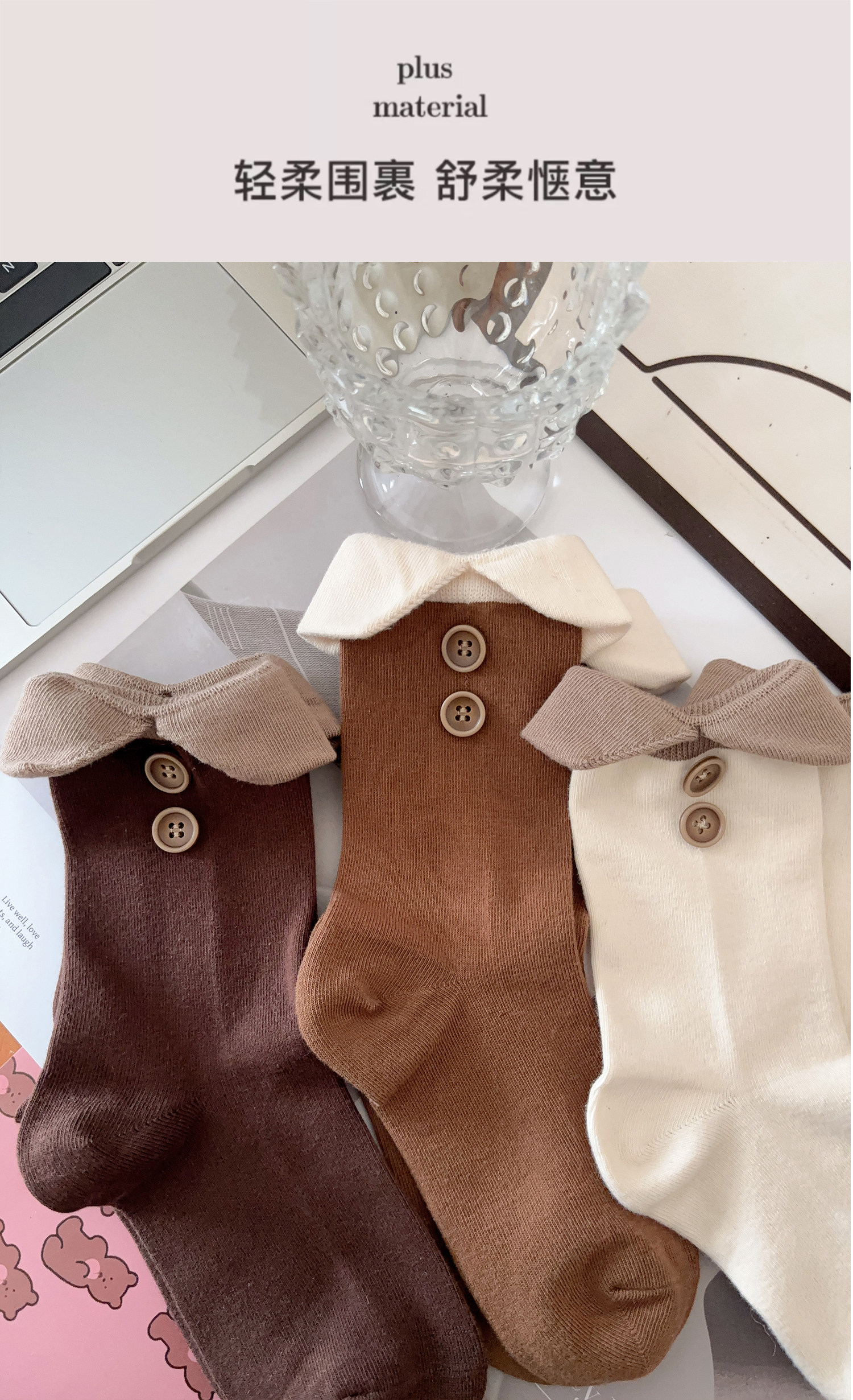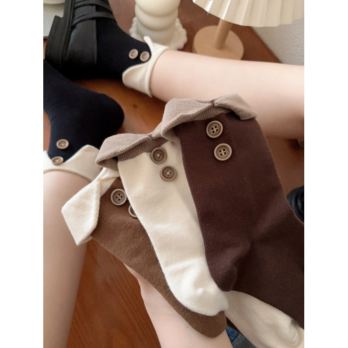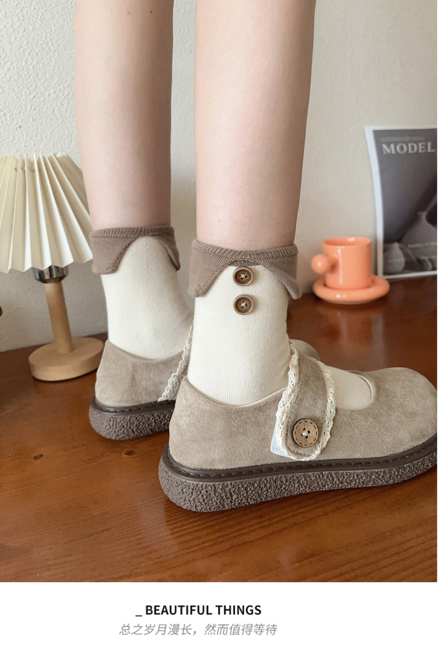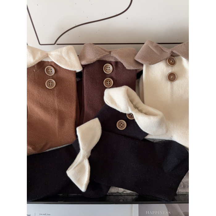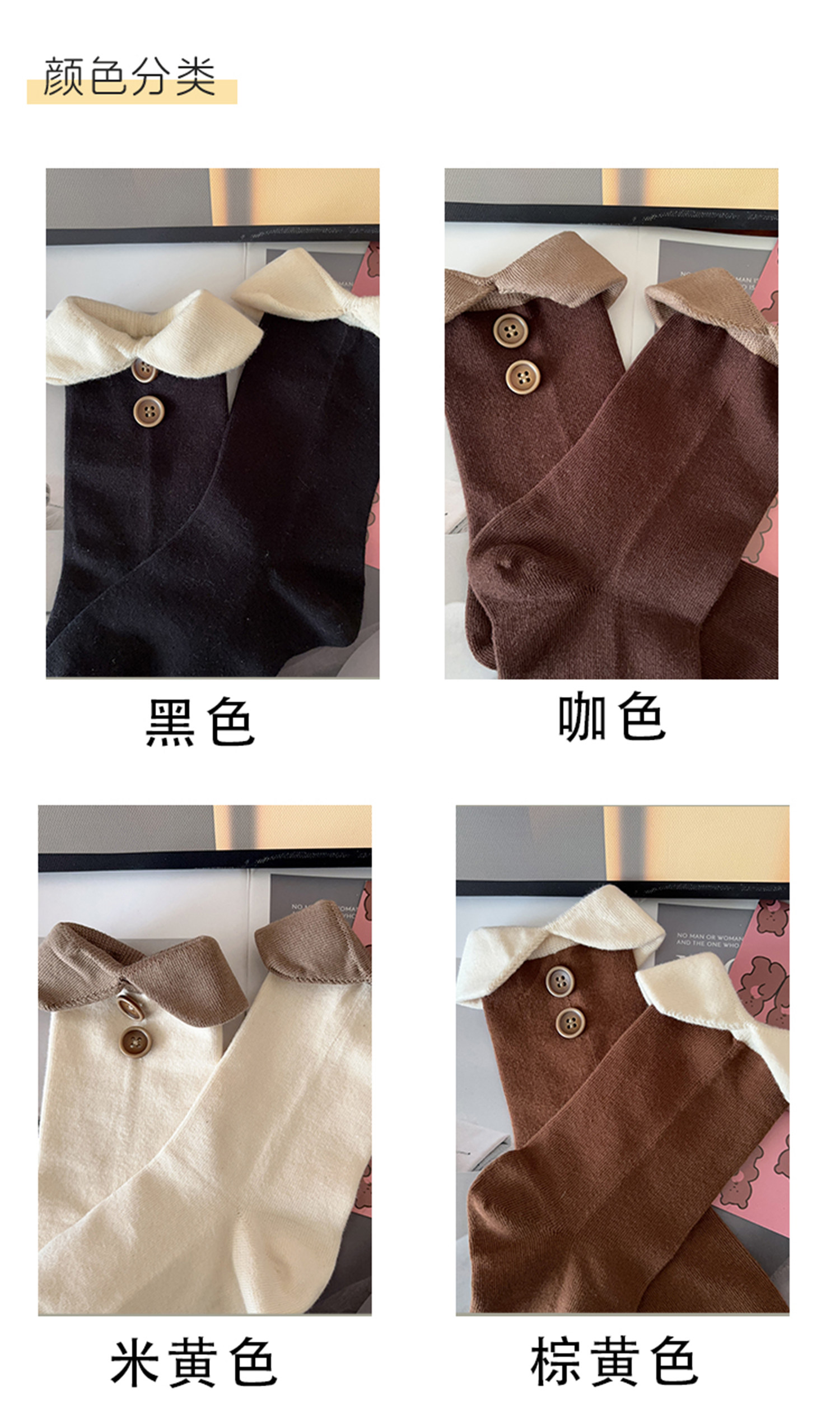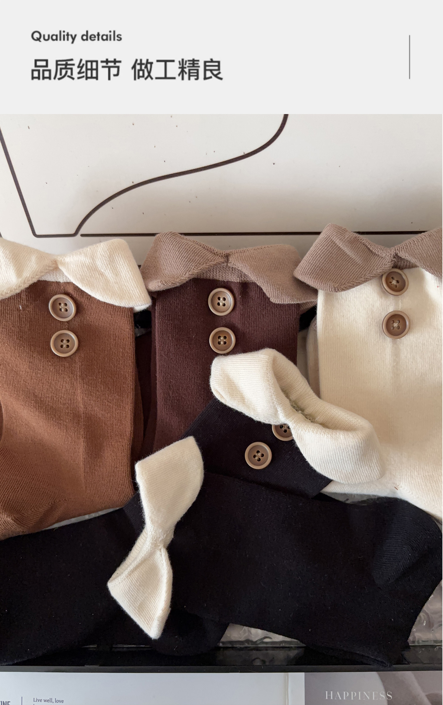 復古翻領紐釦領結襪子女ins風韓系設計襪口翻折精緻立體紐釦百搭