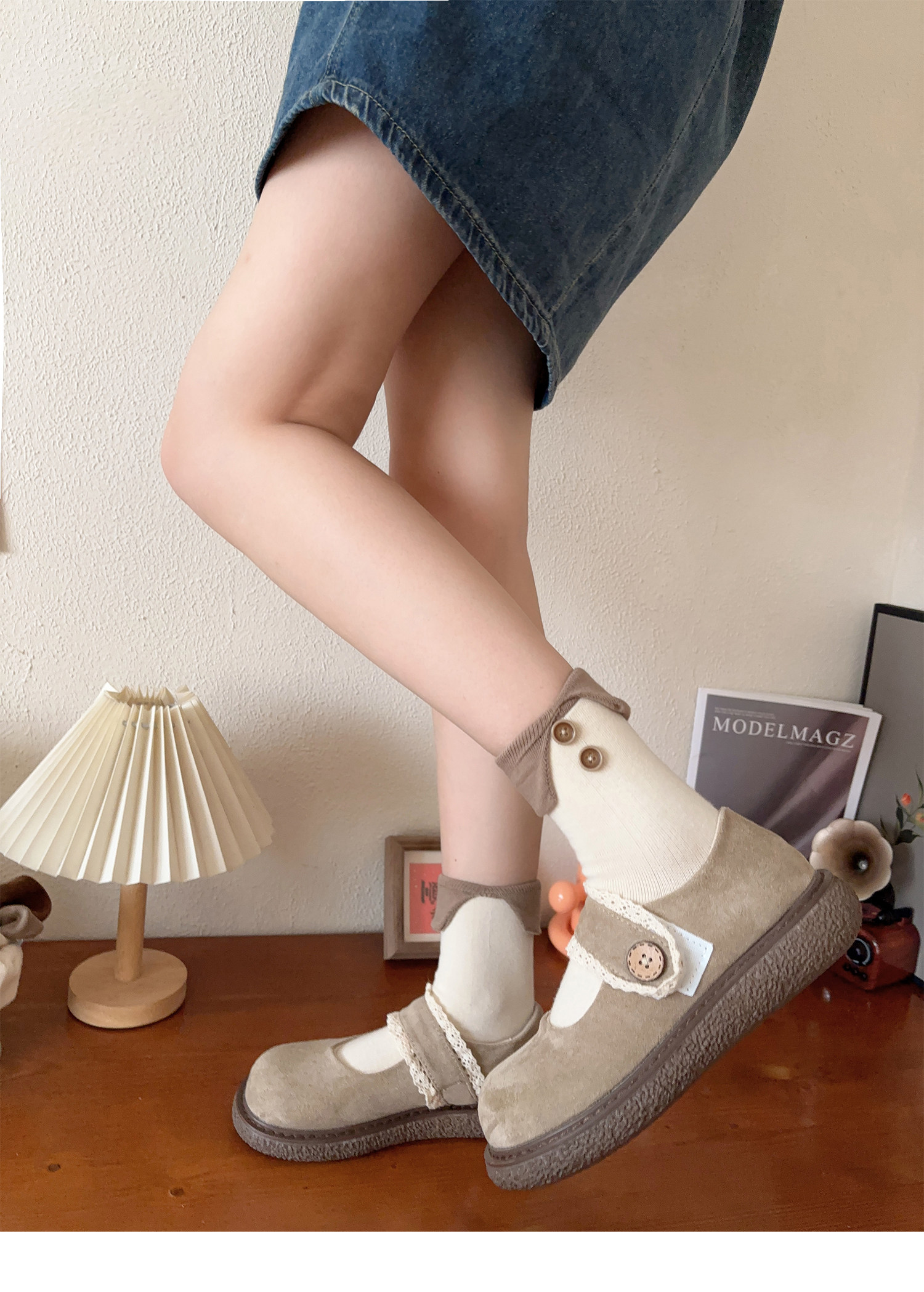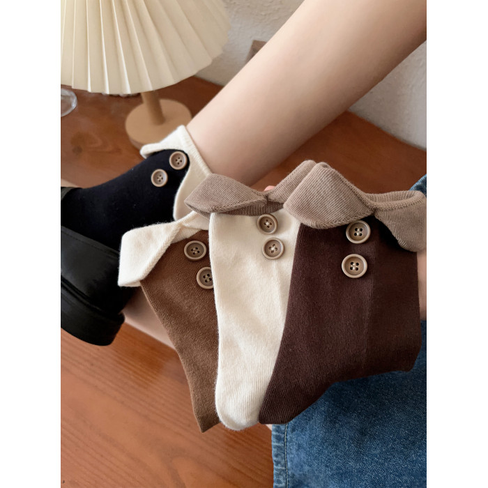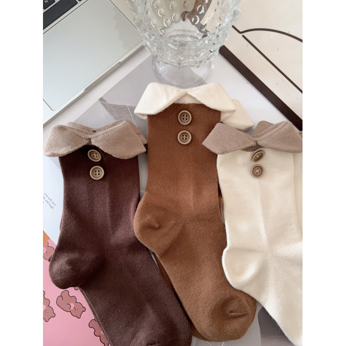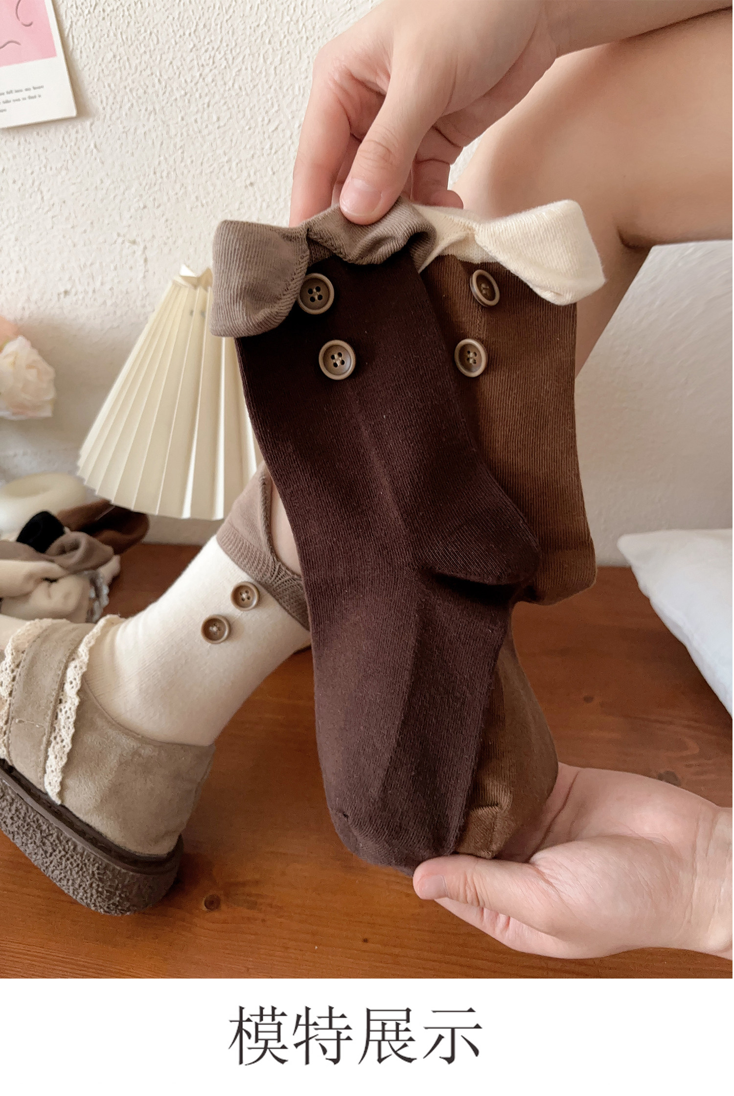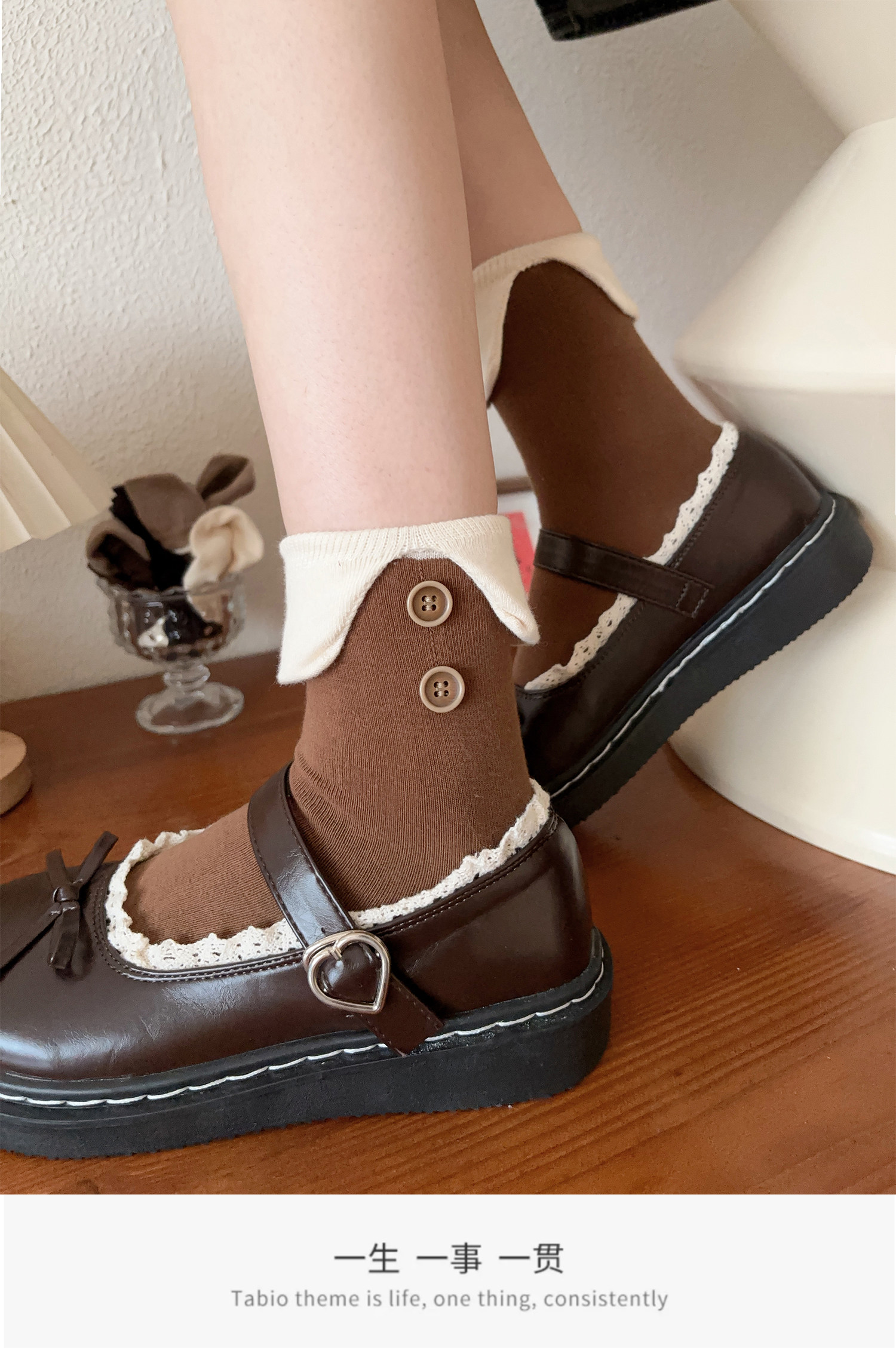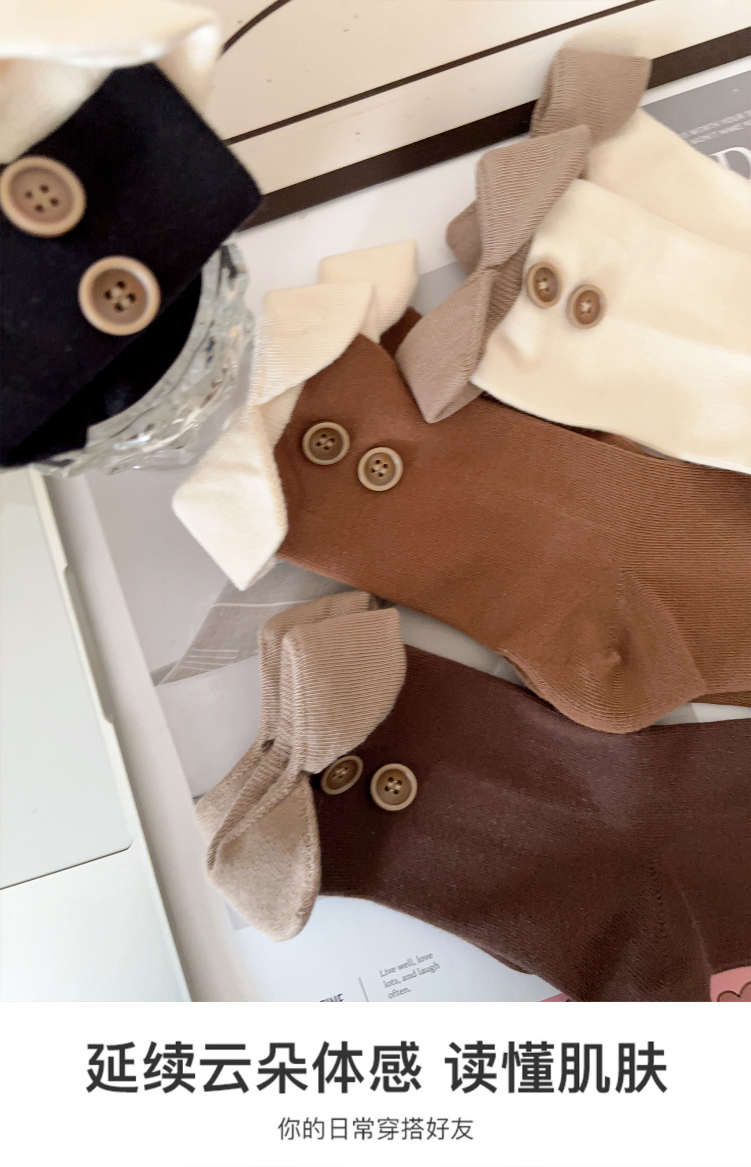 復古翻領紐釦領結襪子女ins風韓系設計襪口翻折精緻立體紐釦百搭