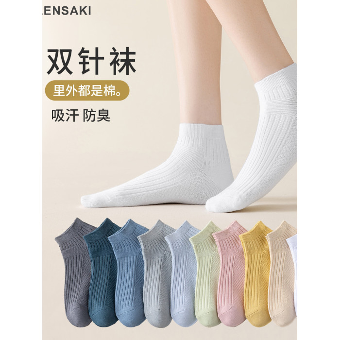 雙針薄棉男女短襪夏款吸汗透氣不臭腳不掉跟棉襪