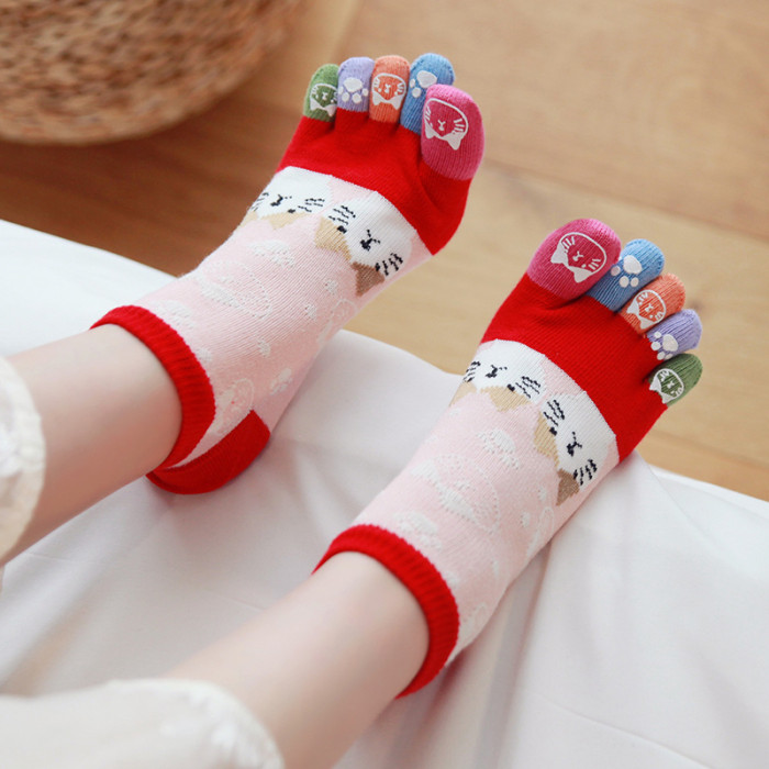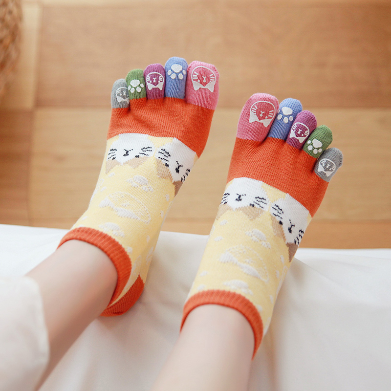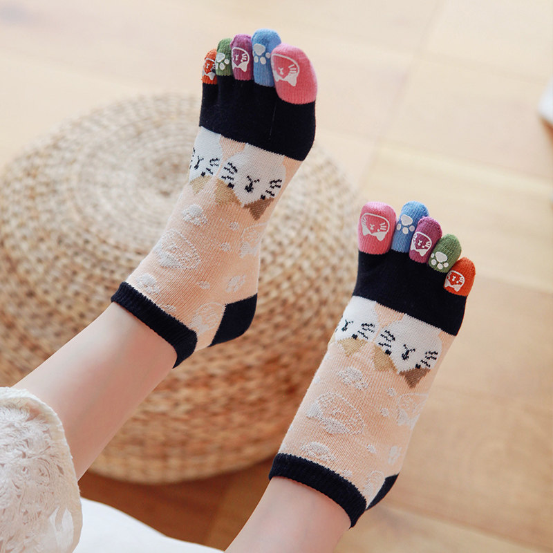 新款可愛甜美五指襪女純棉貓咪分趾襪透氣全棉五趾襪少女日系襪子