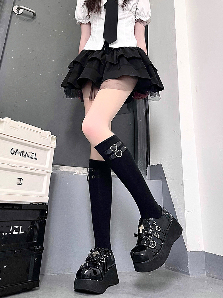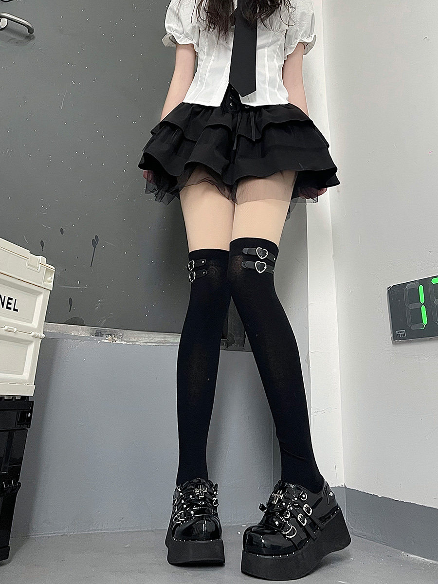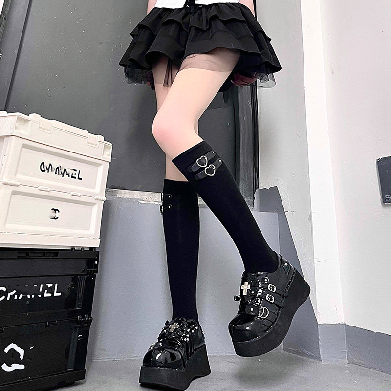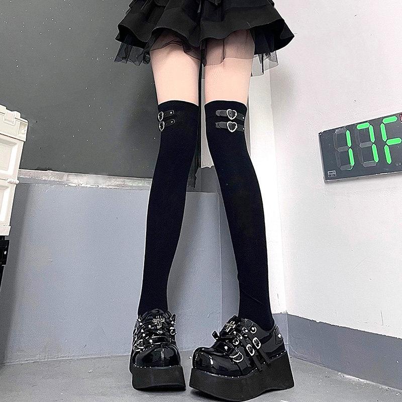 愛心皮釦堆堆長襪辣妹甜酷春夏jk黑色壓力顯瘦學生高筒過膝襪棉秋