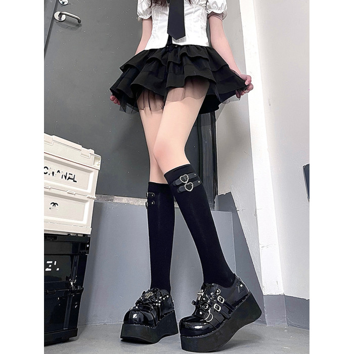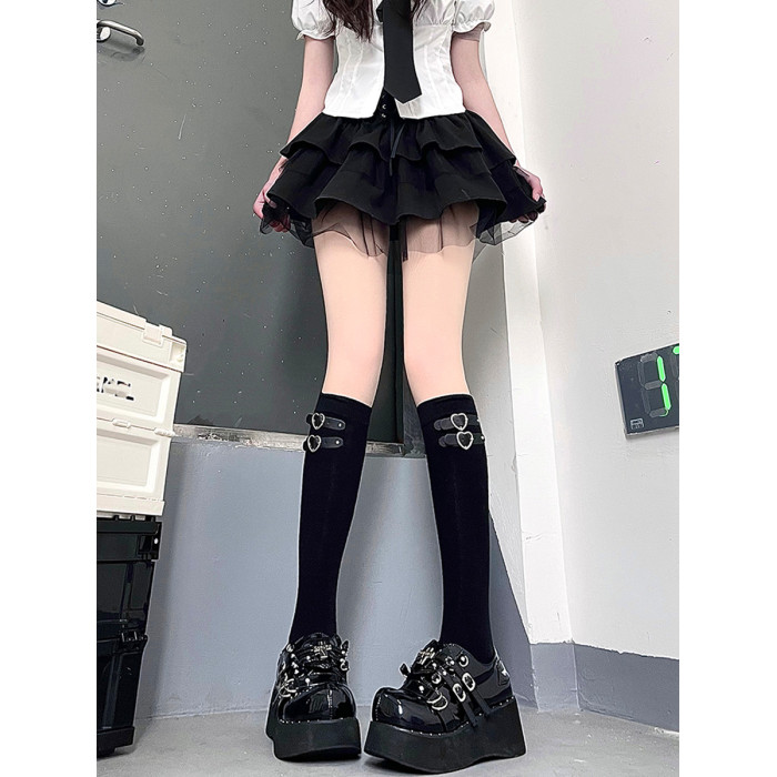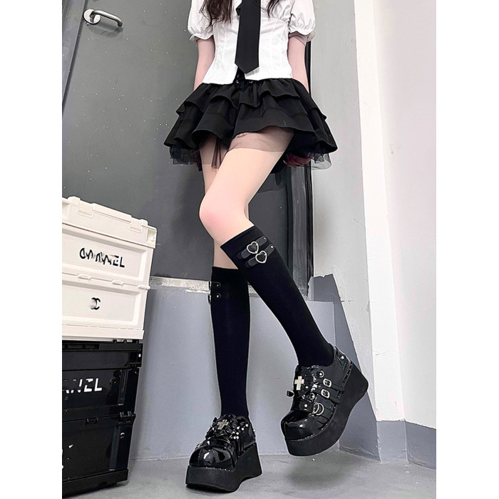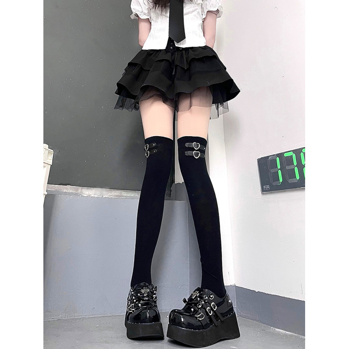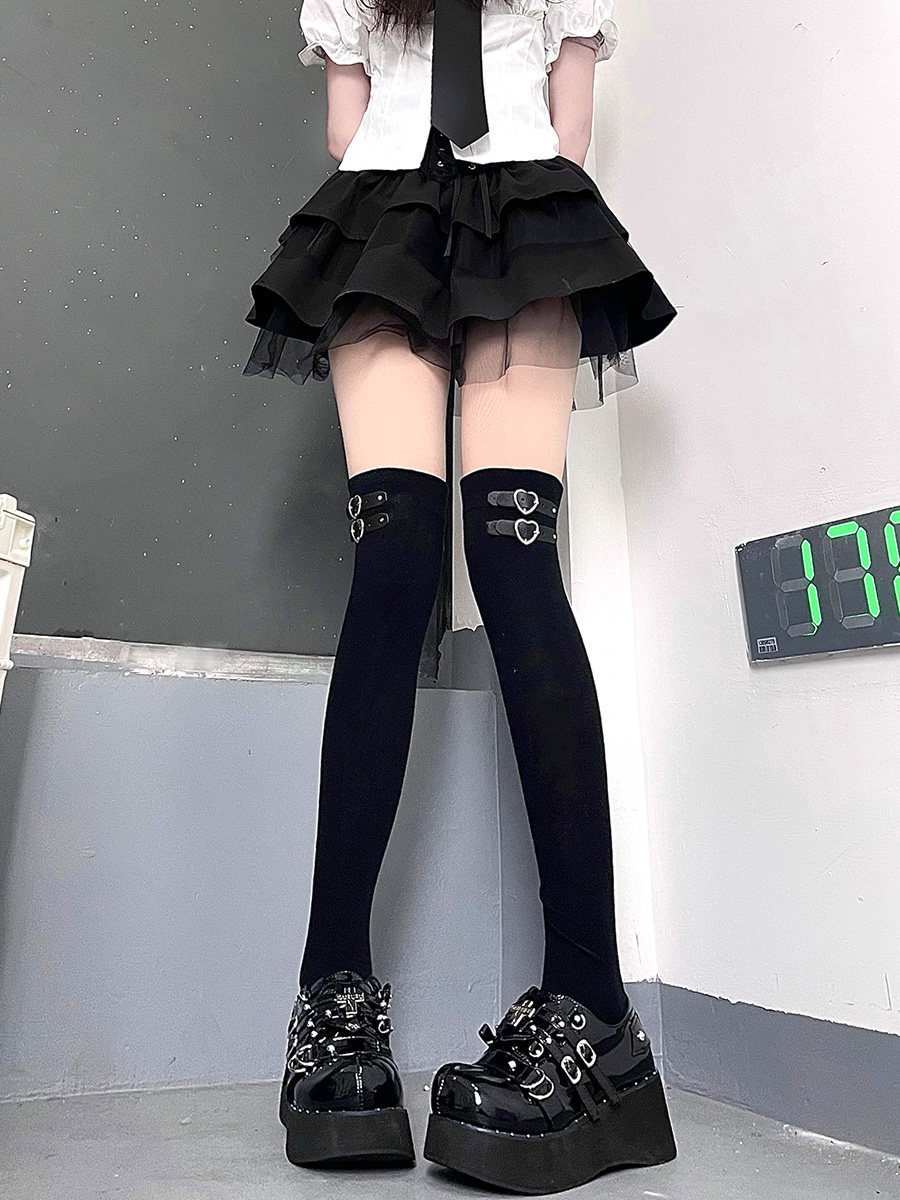 愛心皮釦堆堆長襪辣妹甜酷春夏jk黑色壓力顯瘦學生高筒過膝襪棉秋