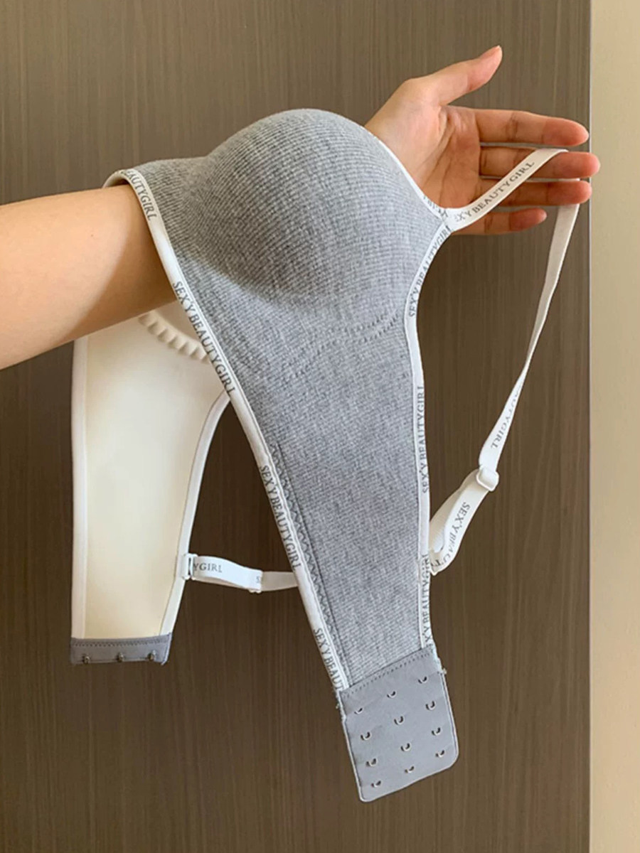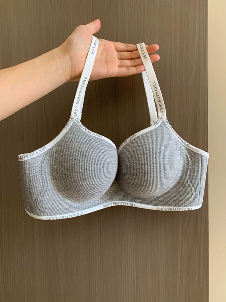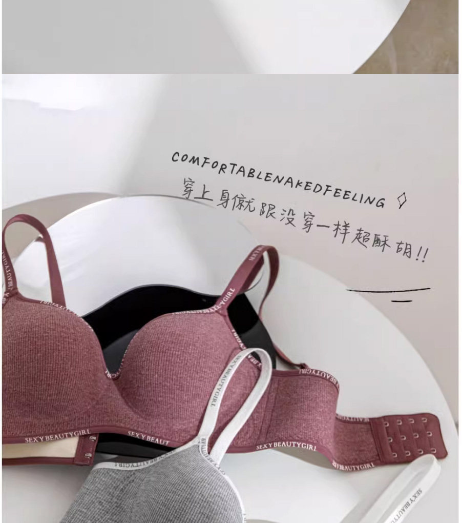 螺紋無痕內衣女聚攏小胸顯大圓圓杯無鋼圈軟支撐防下垂收副乳文胸