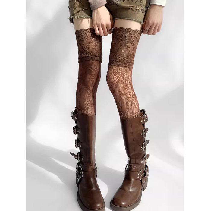 早秋復古純欲天花板!法式蕾絲鏤空過膝長筒襪~美拉德廢土風來襲~