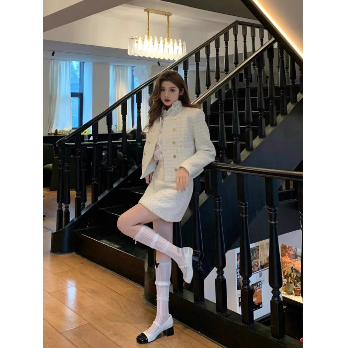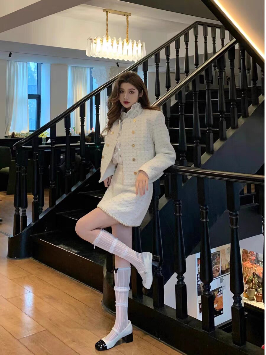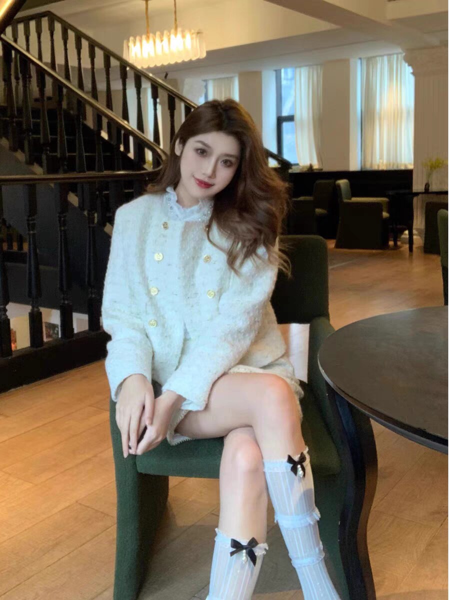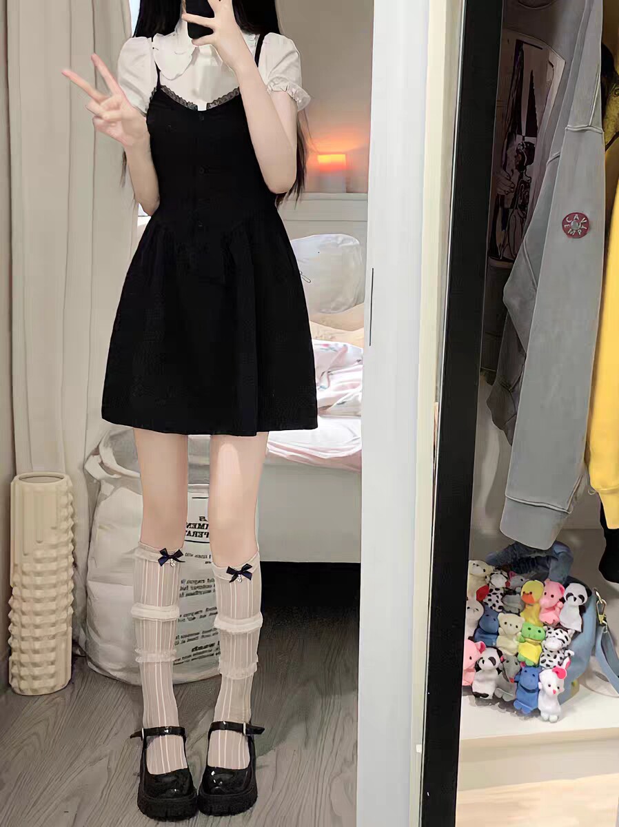 純欲白色蕾絲襪子女春秋中筒花邊薄款長筒蝴蝶結珍珠小腿襪絲襪