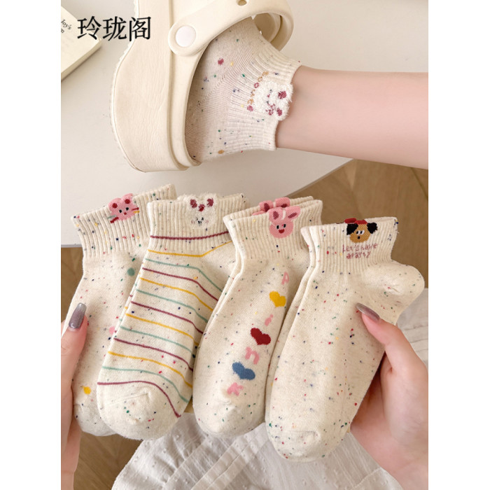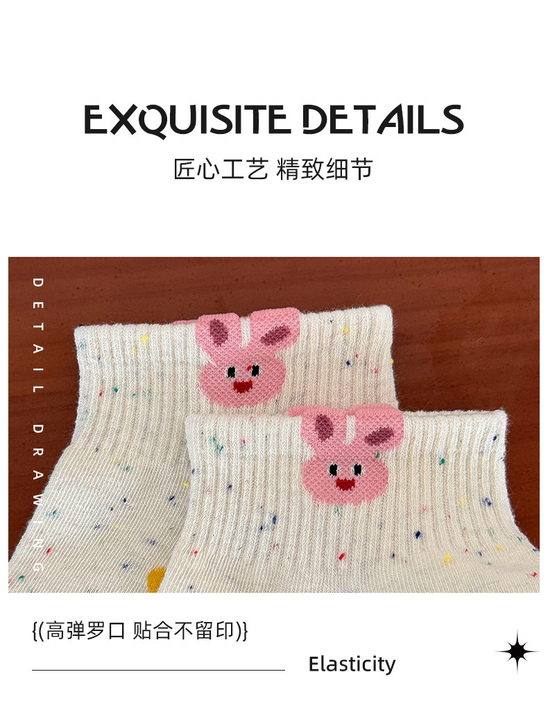 小兔短襪子女棉襪2025新款爆款秋冬甜美卡通女士白色中筒襪初中生