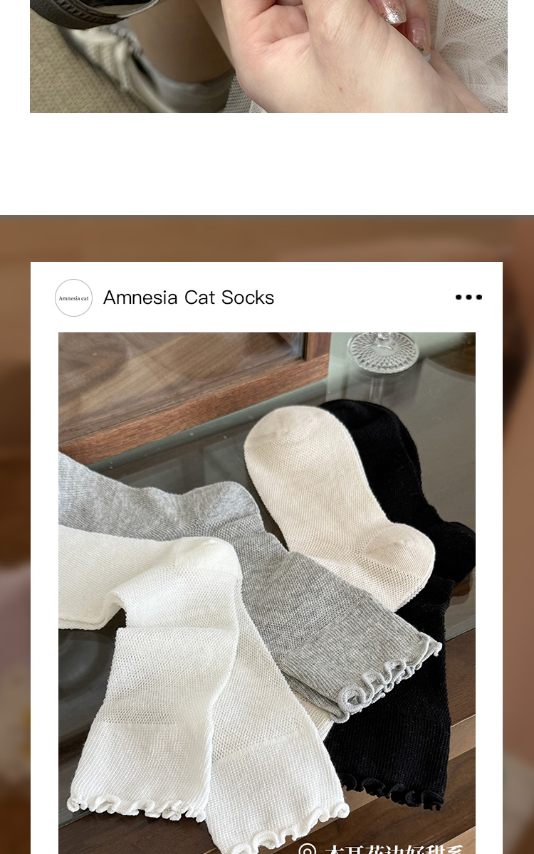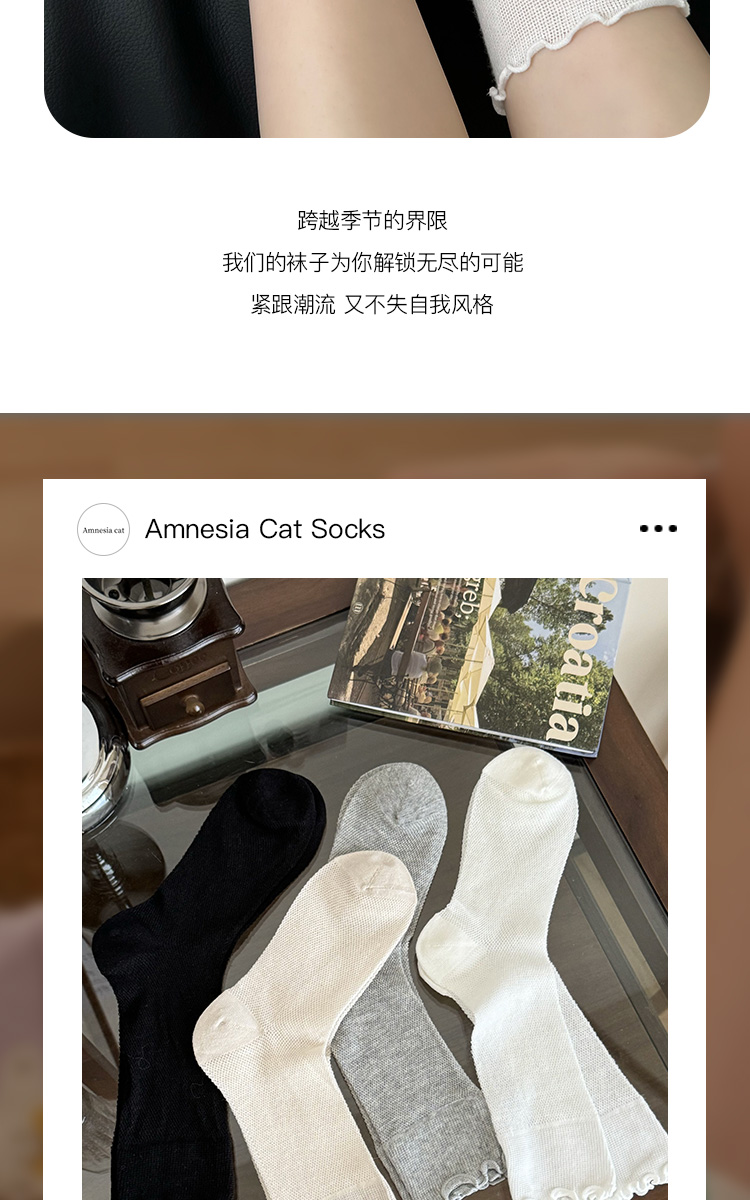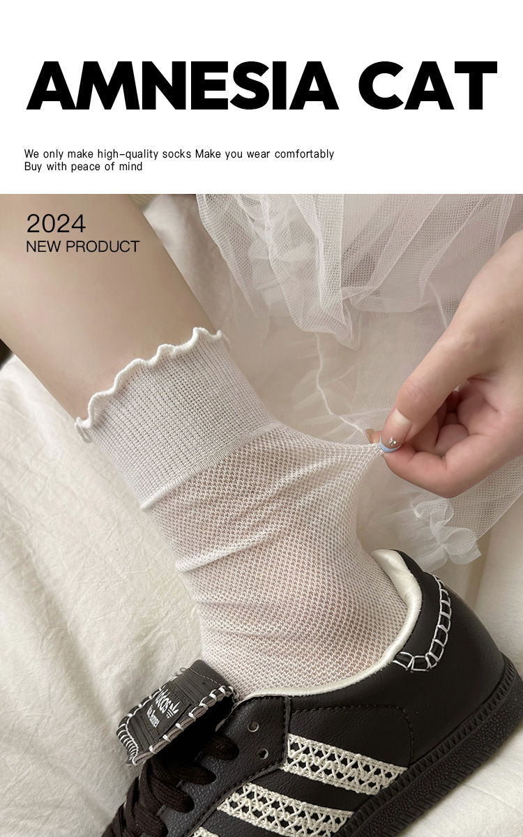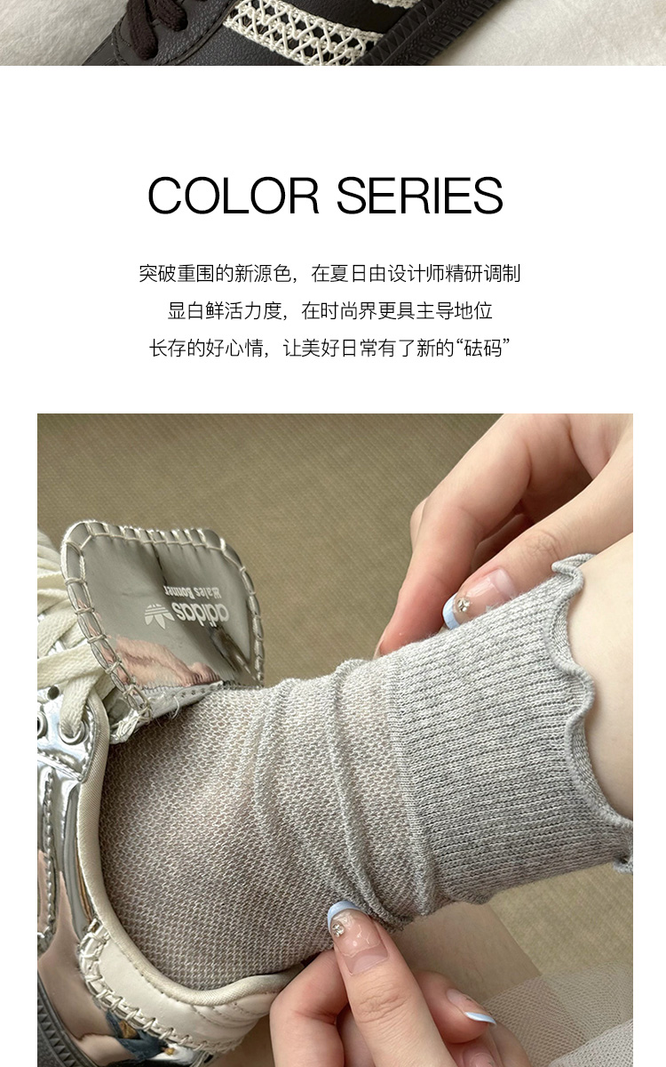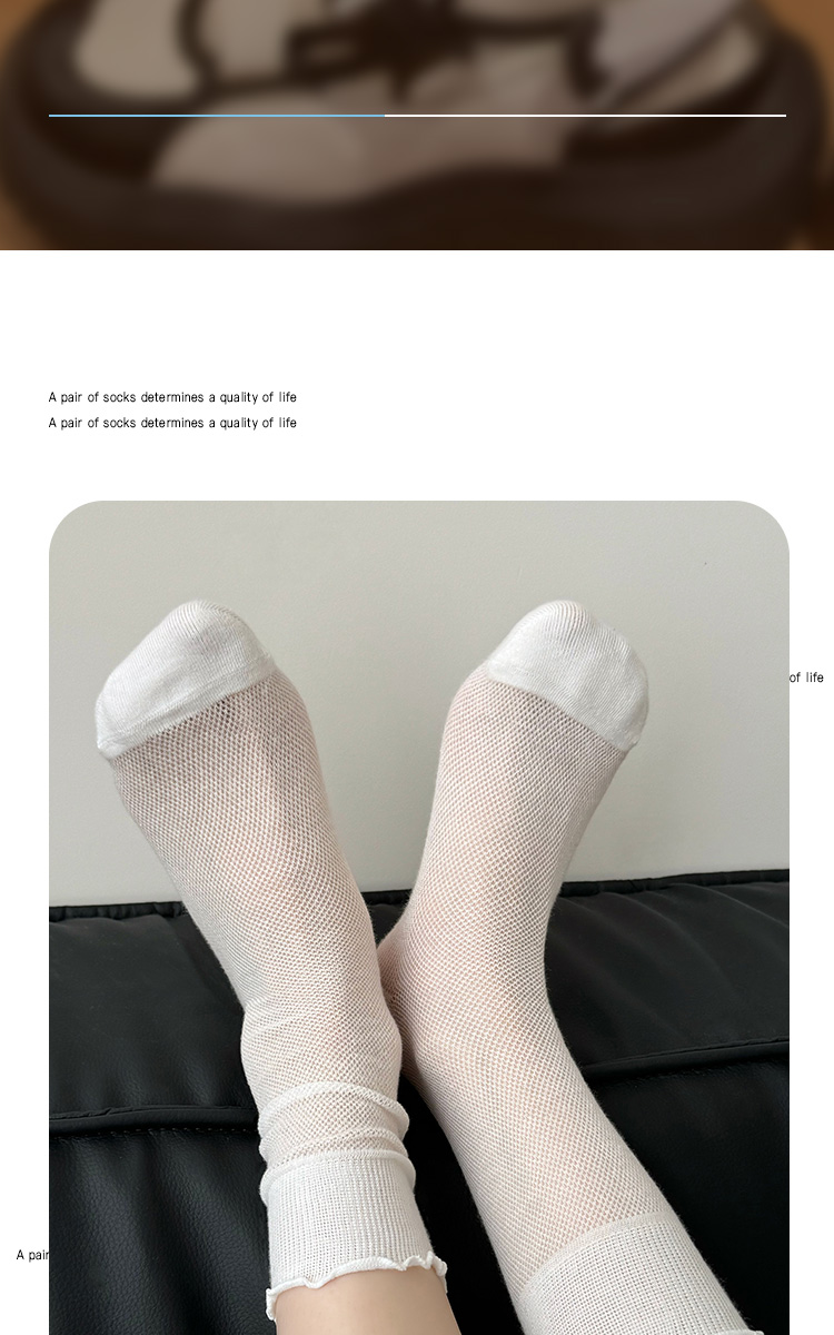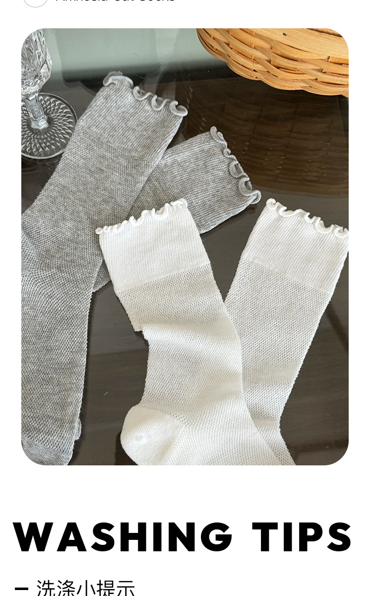 灰色襪子女中筒襪夏季薄款ins潮日系純棉網眼木耳花邊無骨堆堆襪