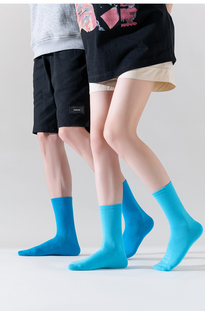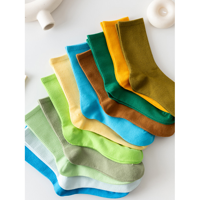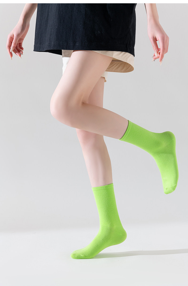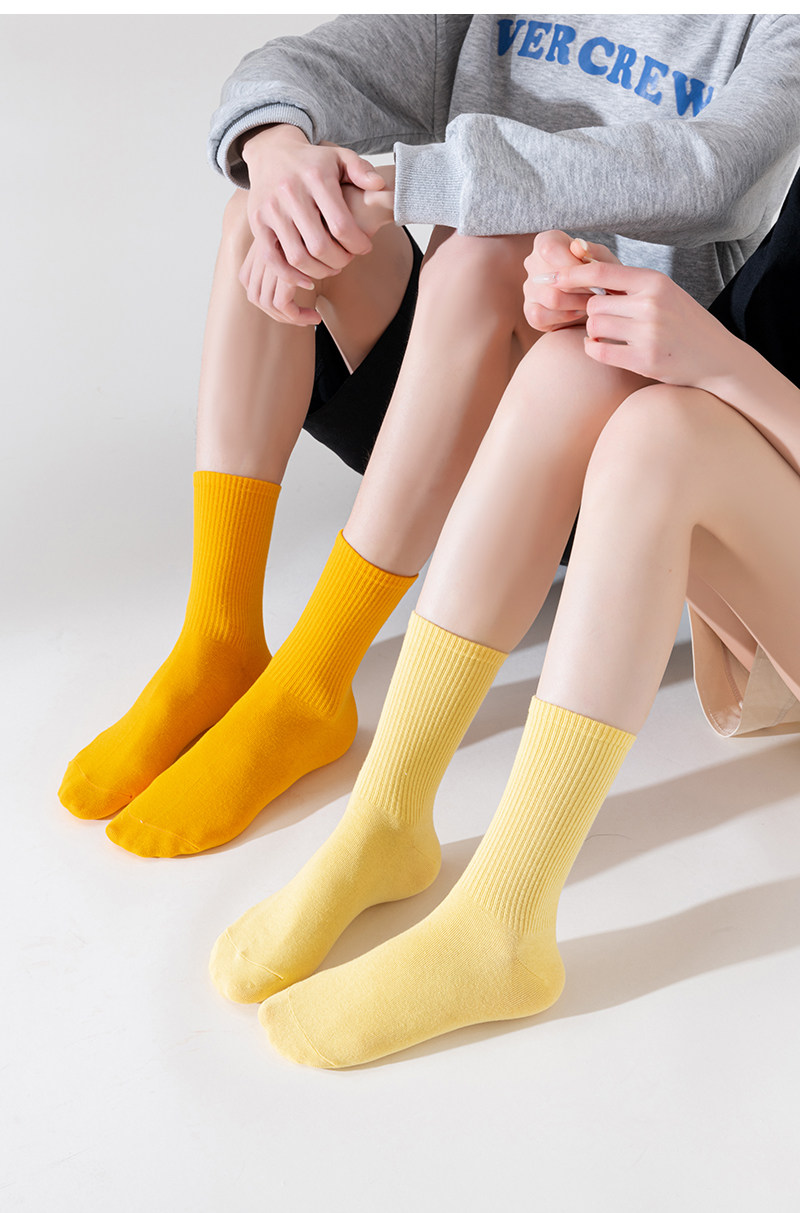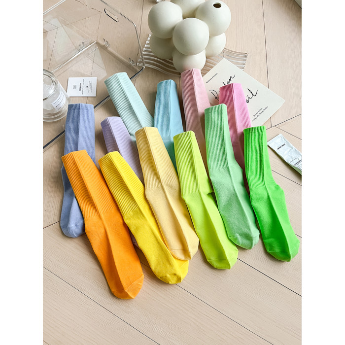 多巴胺彩色棉襪純色中筒襪男女襪子學生襪簡約運動長筒堆堆襪子潮