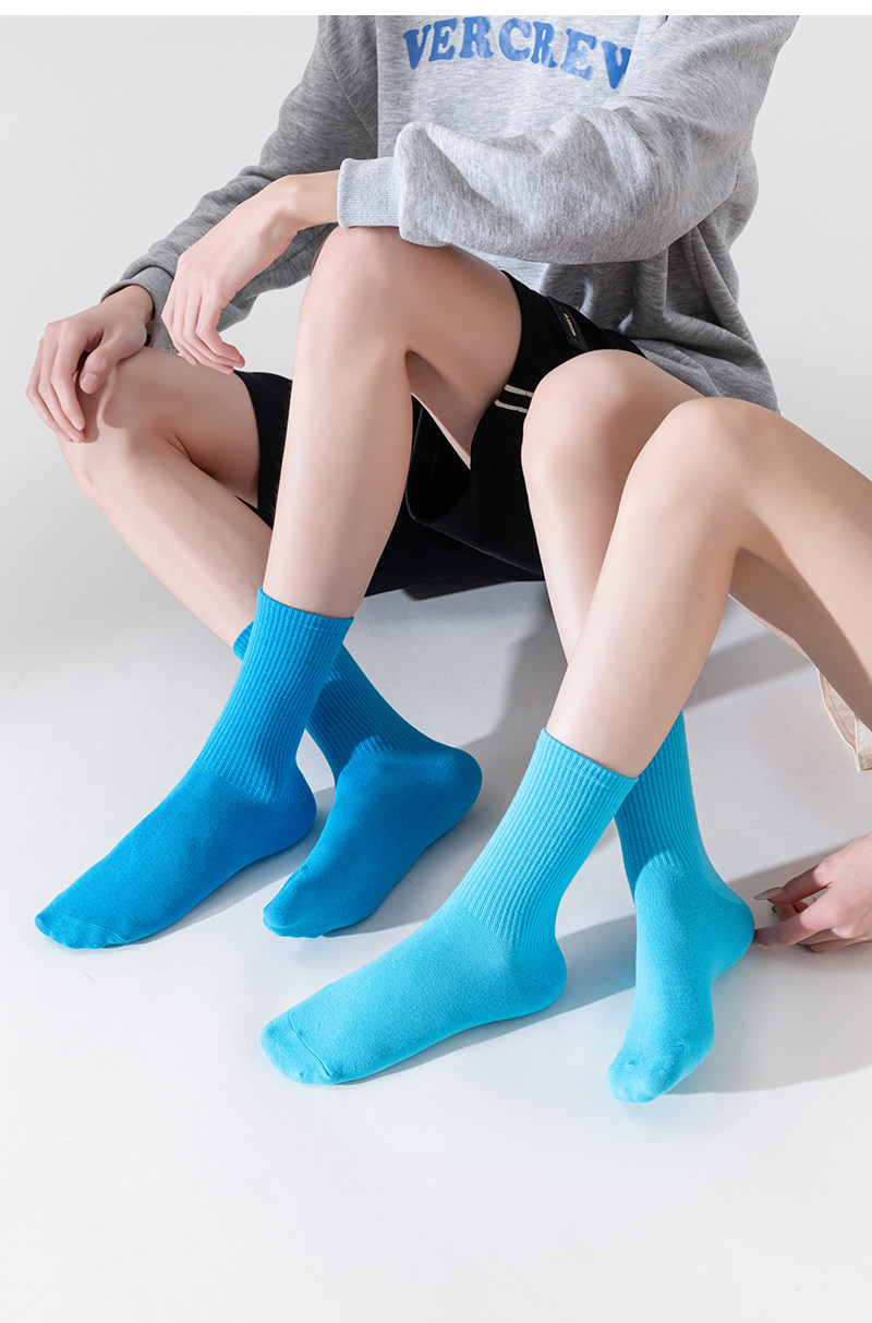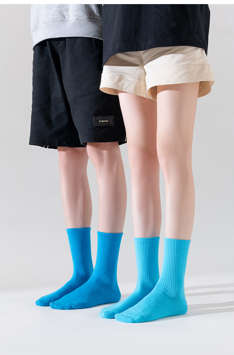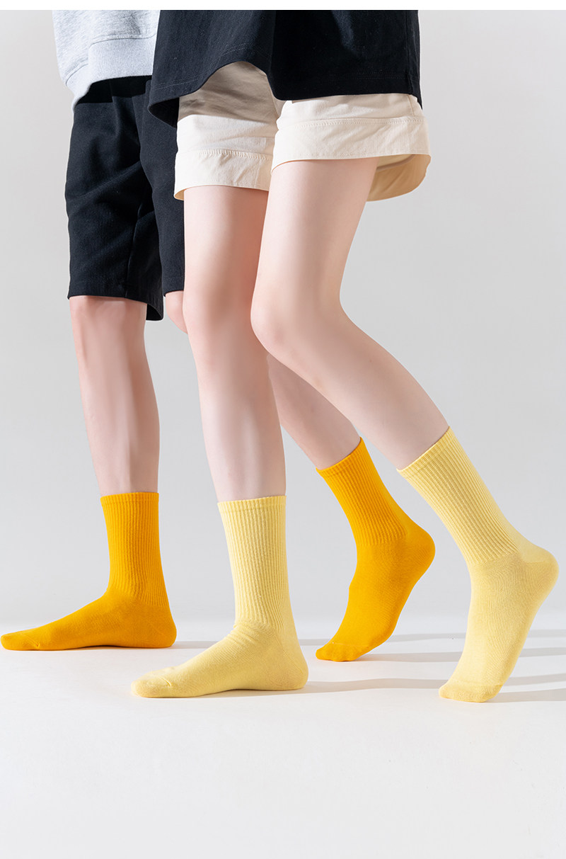 多巴胺彩色棉襪純色中筒襪男女襪子學生襪簡約運動長筒堆堆襪子潮