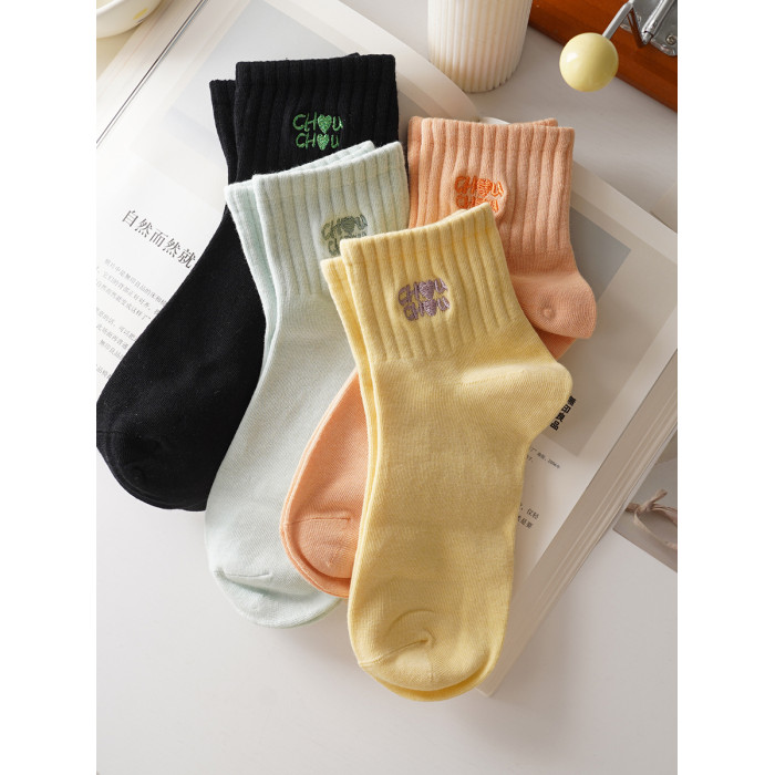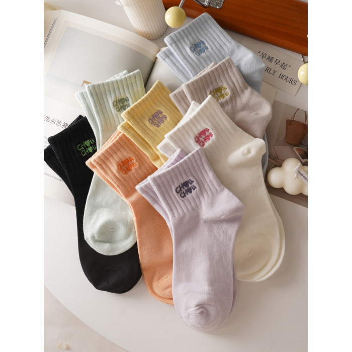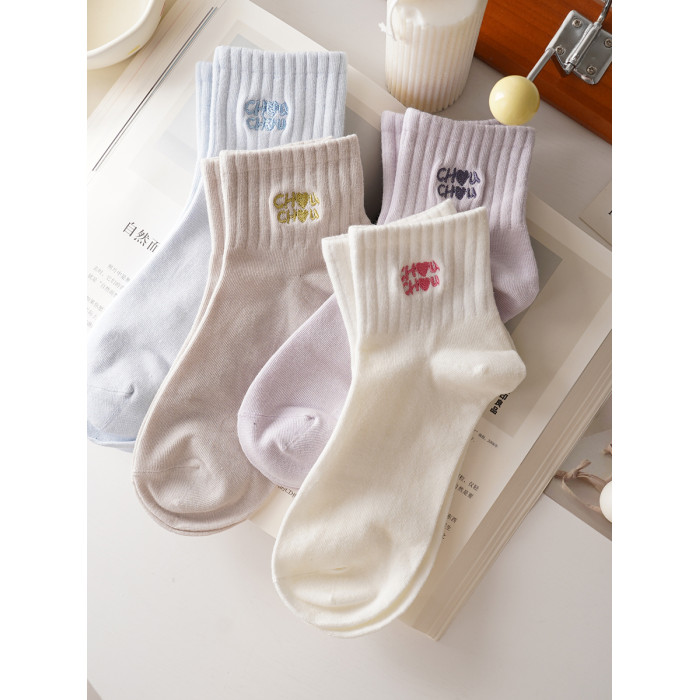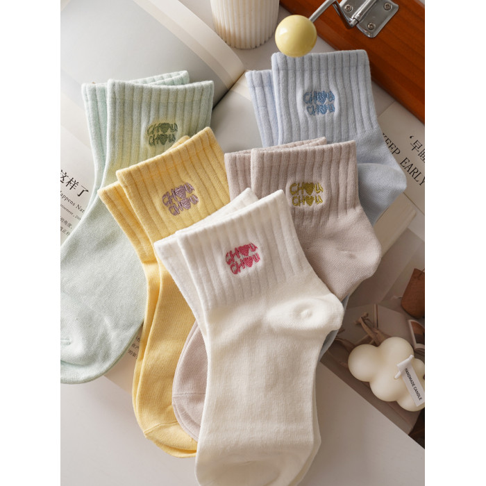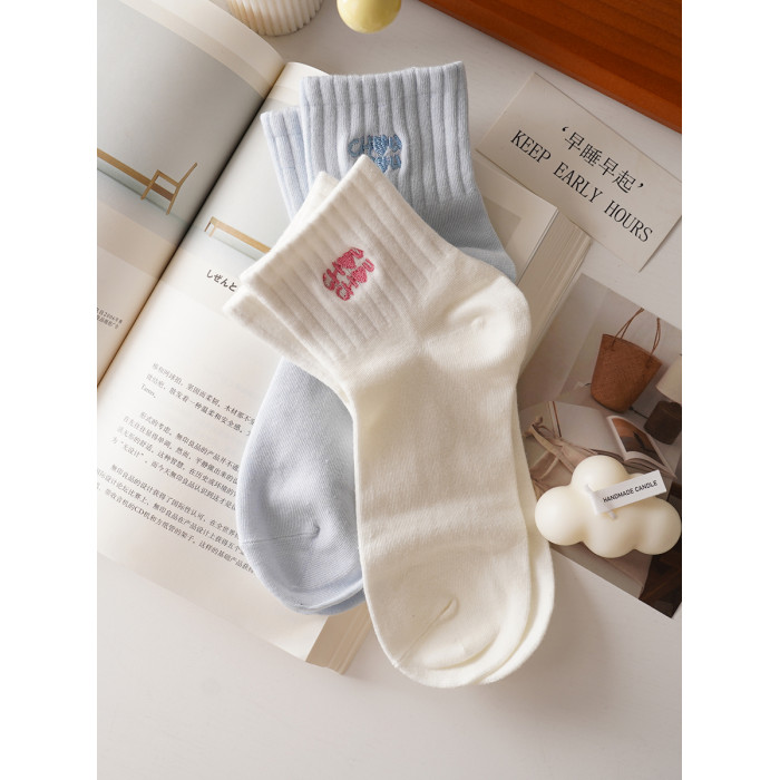 穿上不想脫!字母刺綉純色高橡筋運動短襪女精梳棉春夏季短筒棉襪