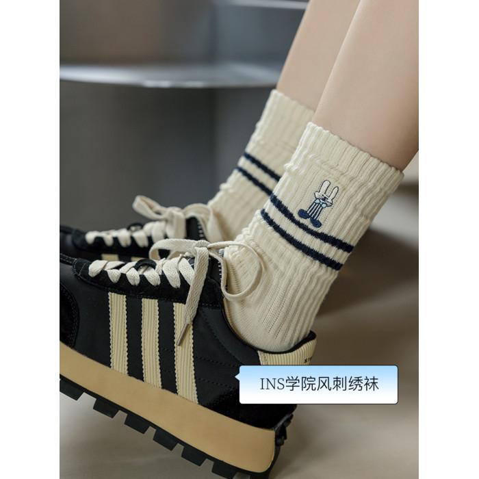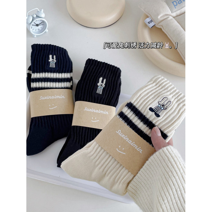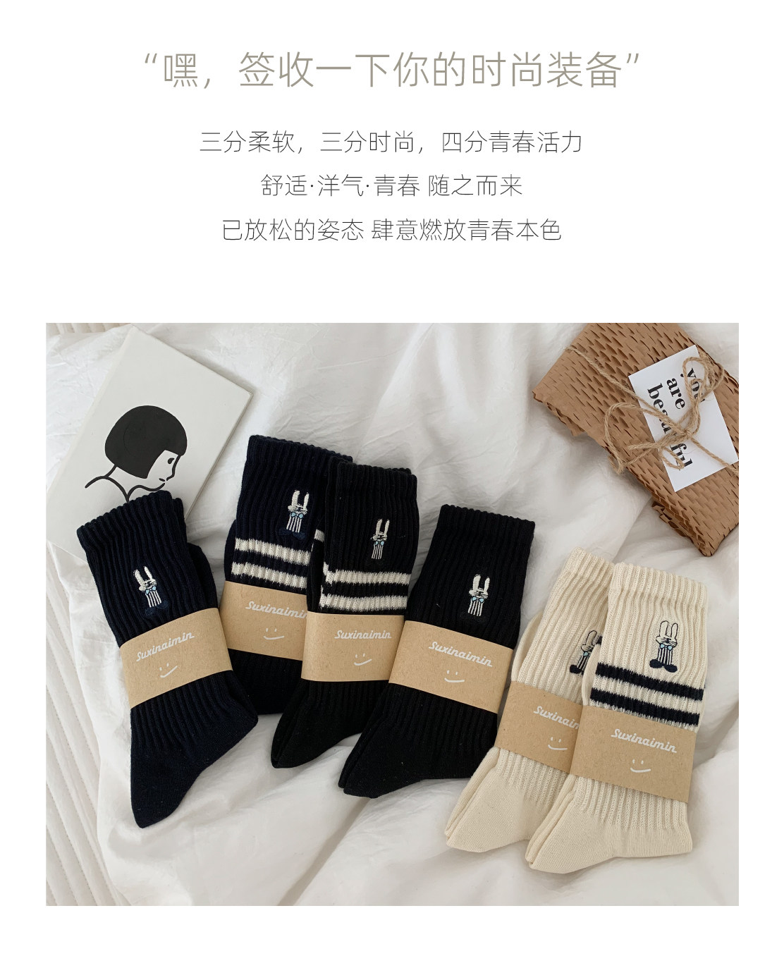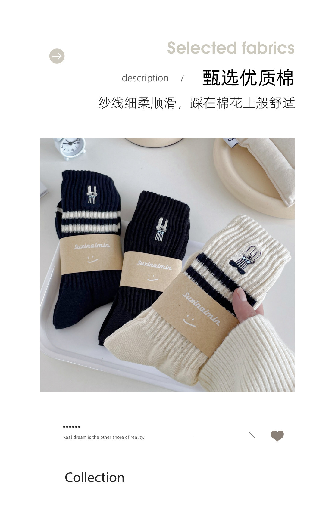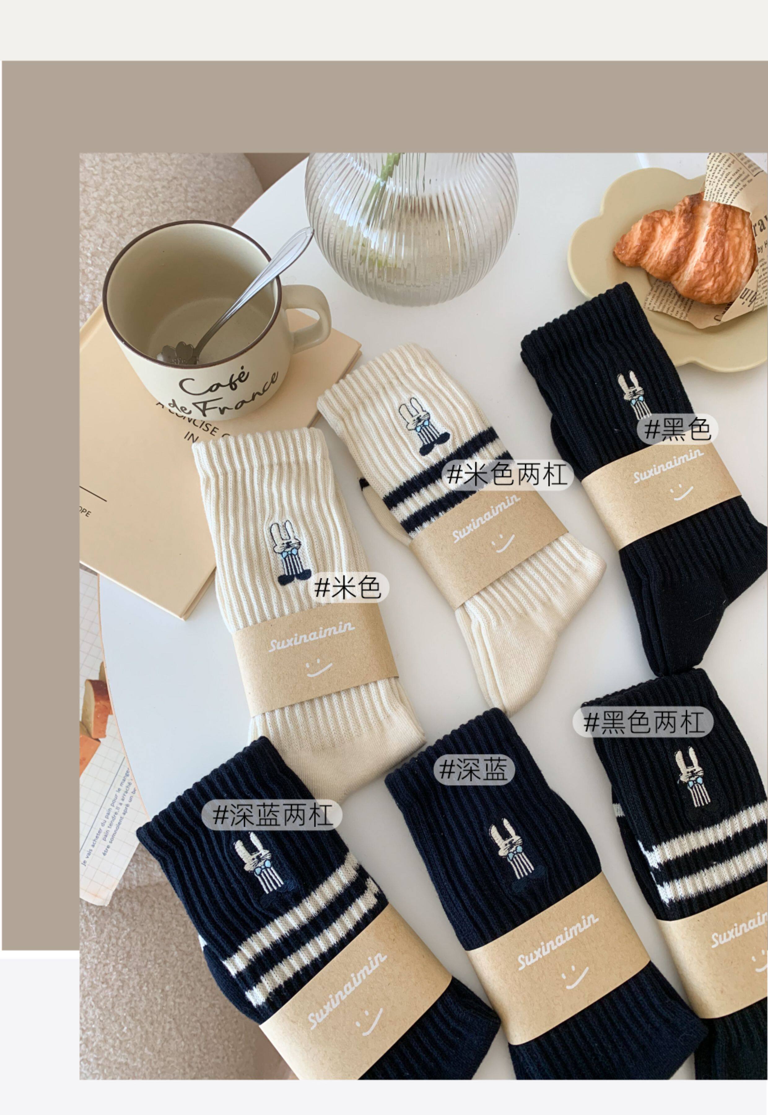兔子襪子女中筒襪夏薄款棉襪ins潮韓版日系卡通運動春秋長堆堆襪