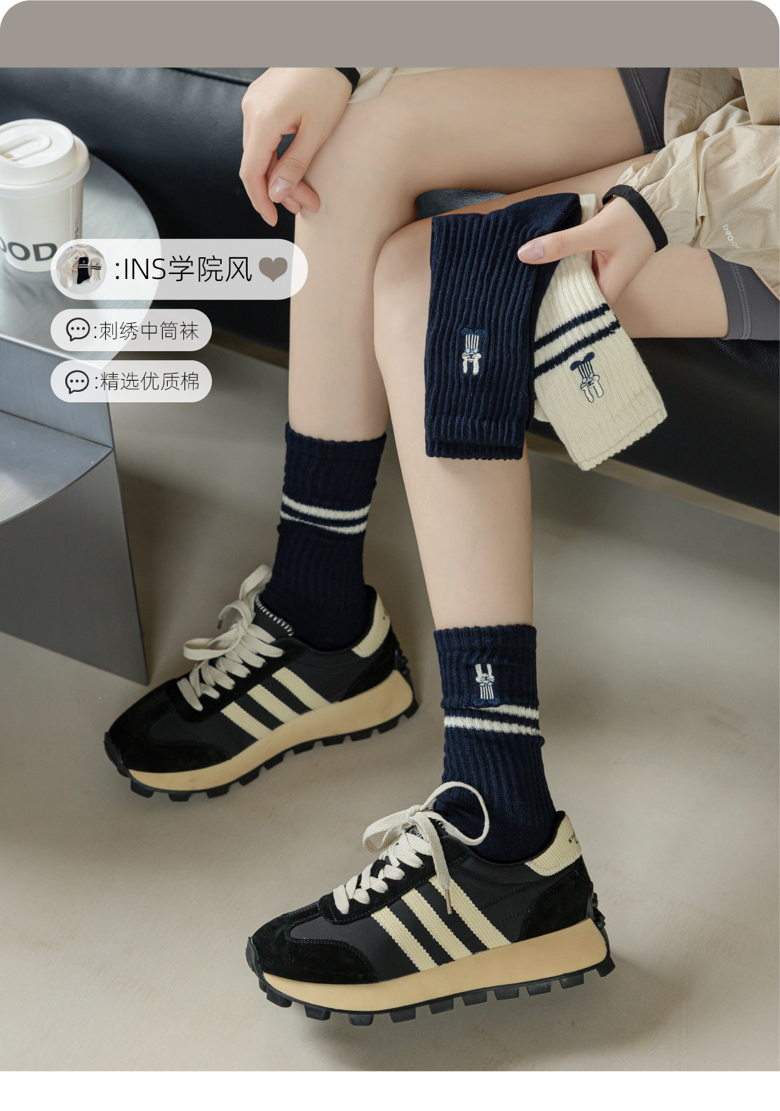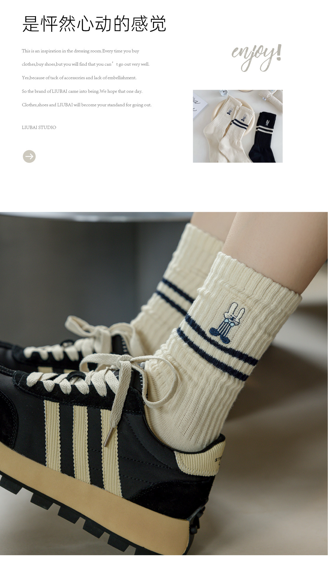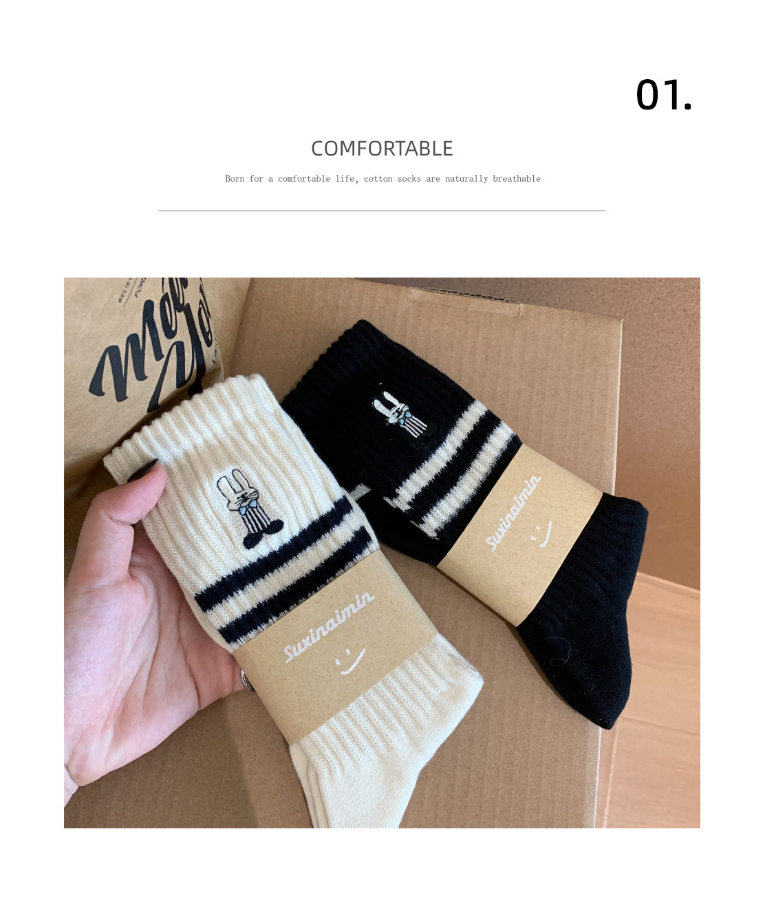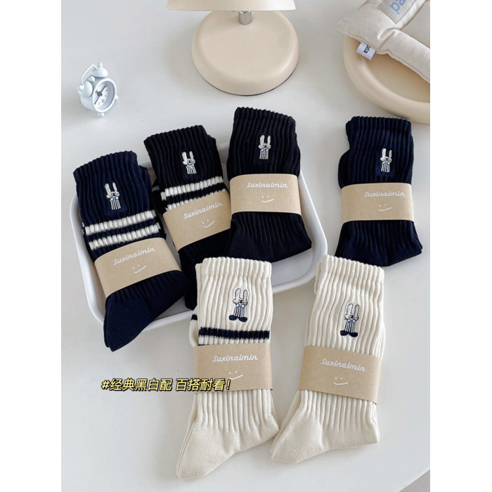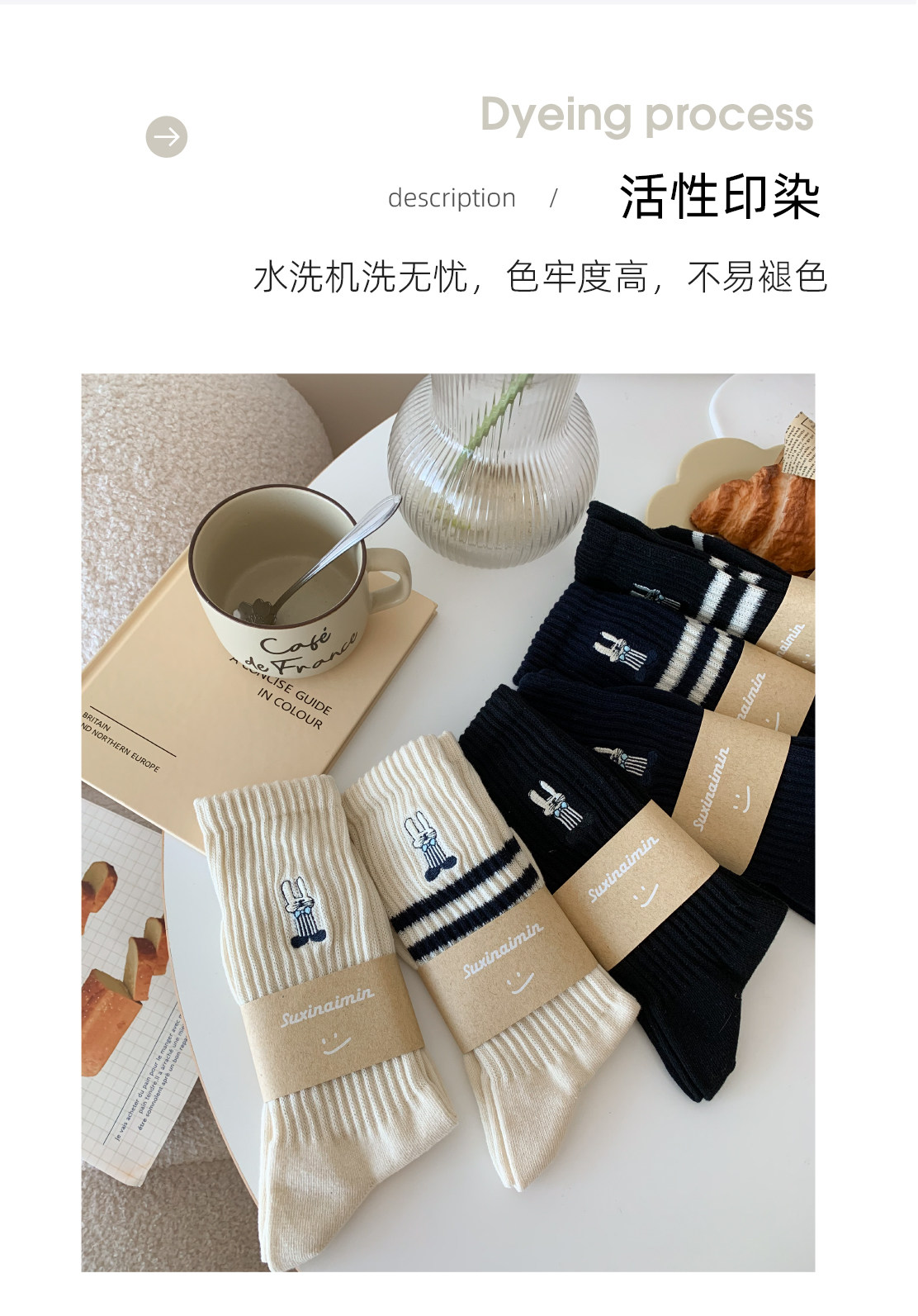 兔子襪子女中筒襪夏薄款棉襪ins潮韓版日系卡通運動春秋長堆堆襪