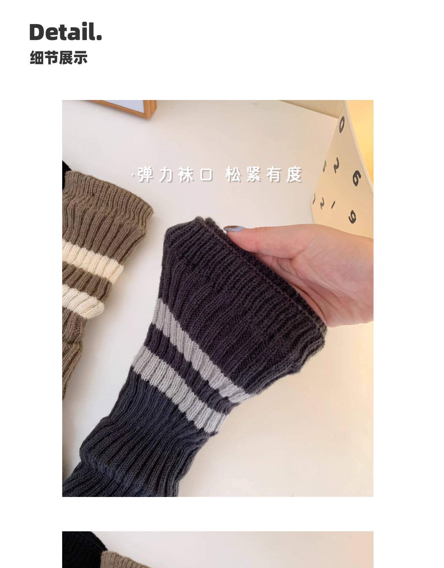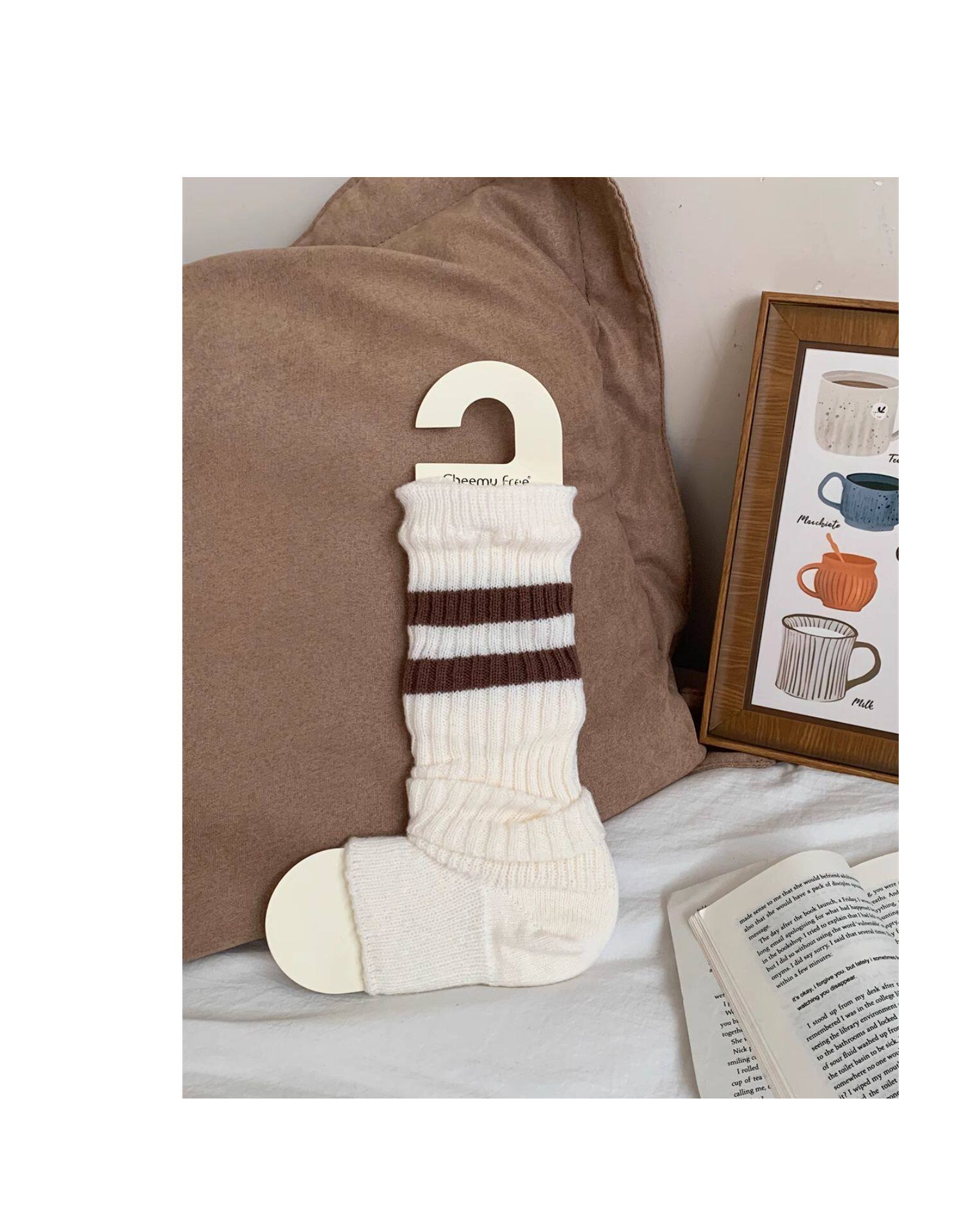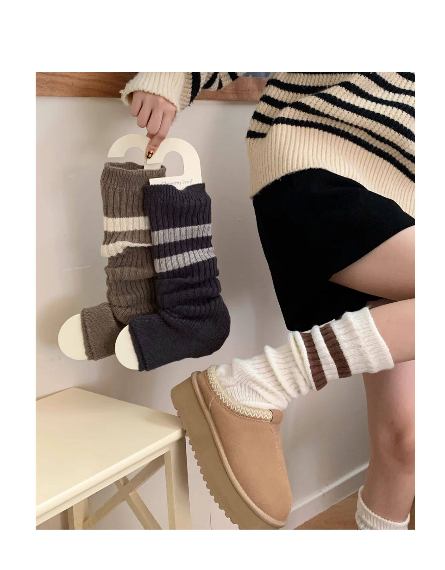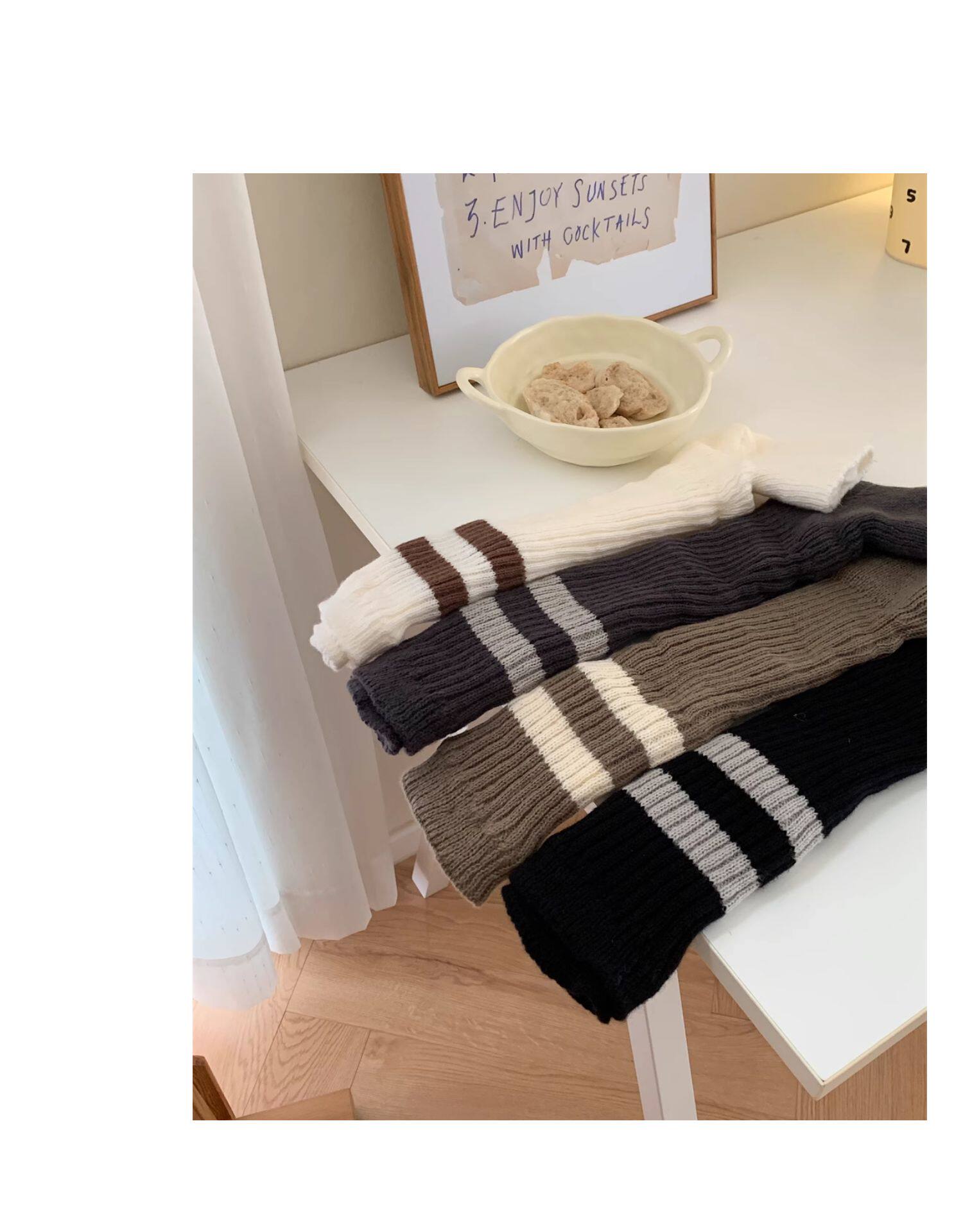 細細條 踩腳款針織襪套日系百搭條紋堆堆襪秋冬雪地靴長筒小腿襪