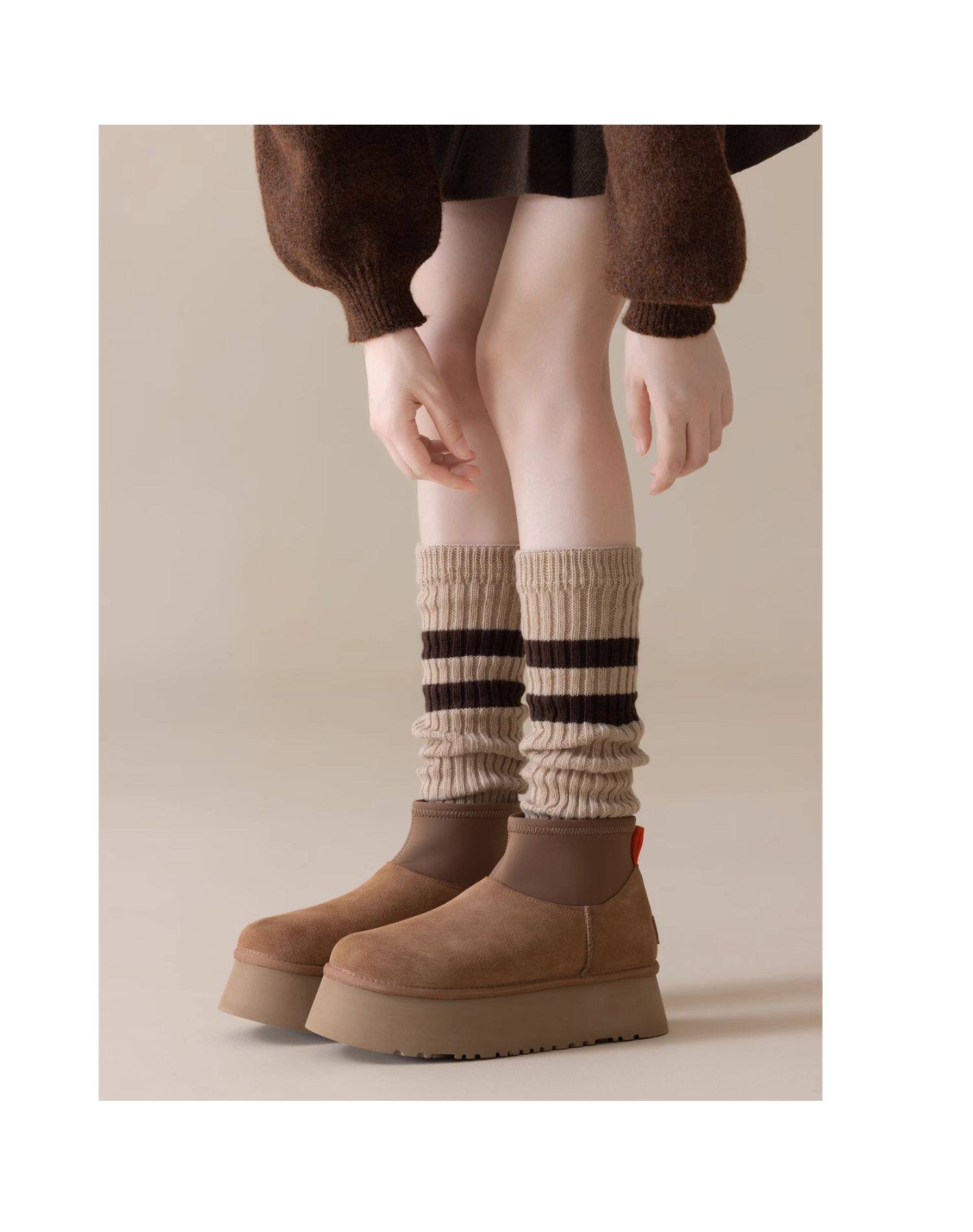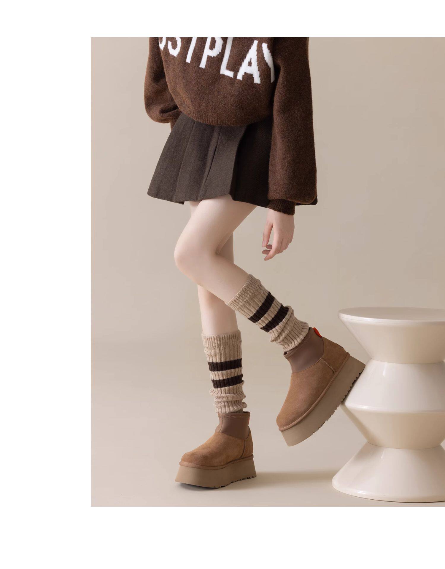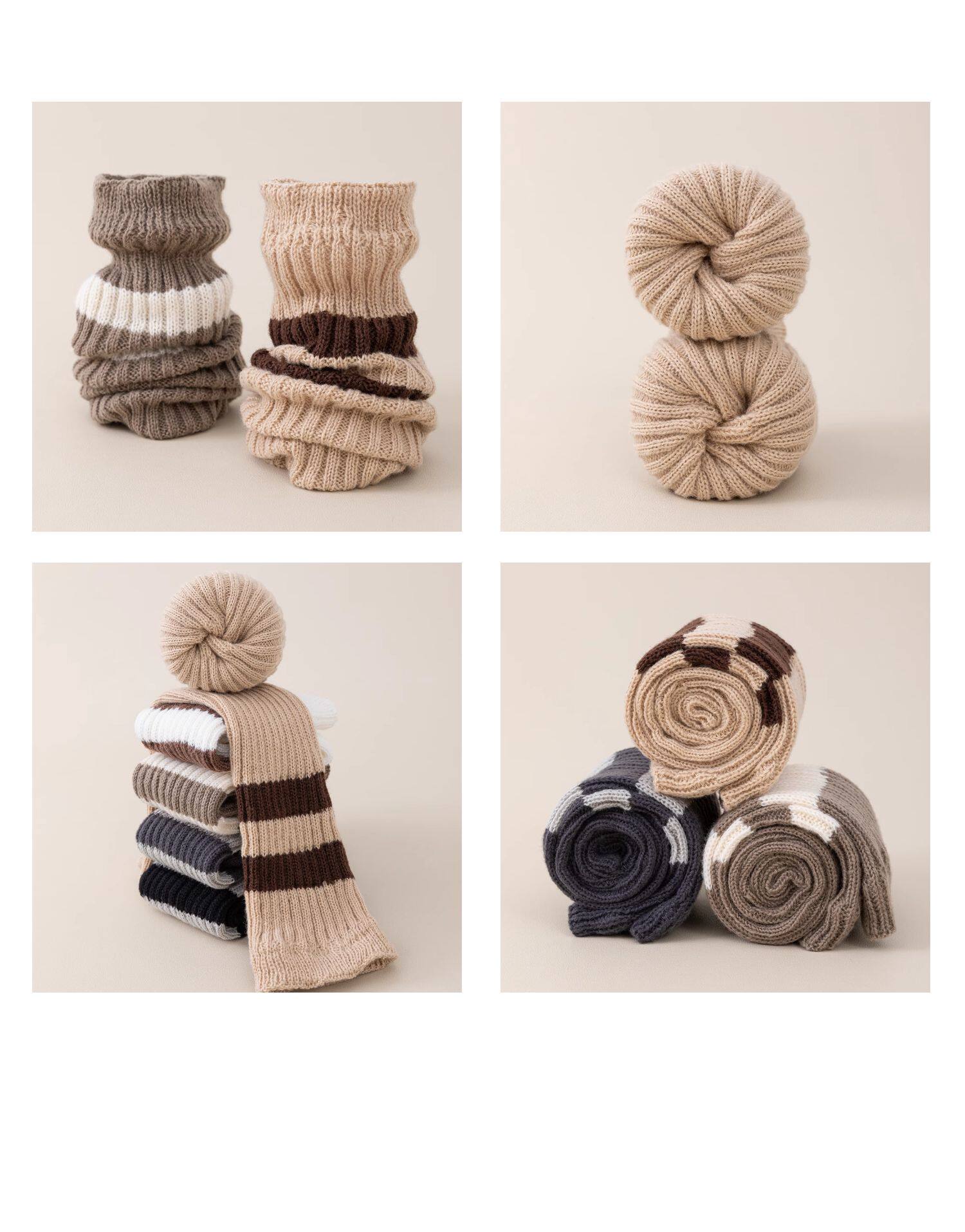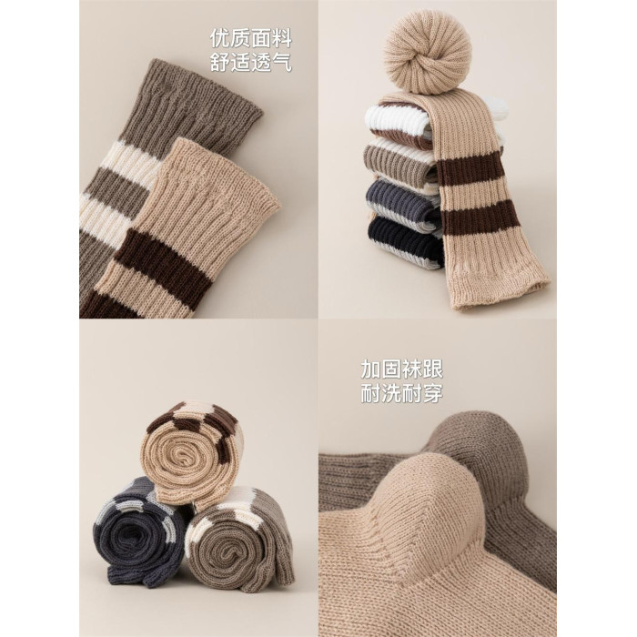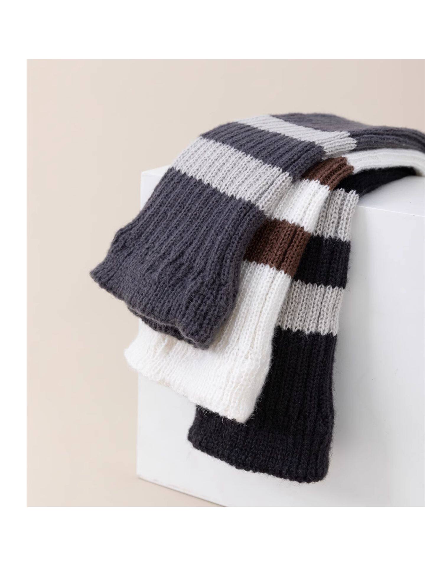 細細條 踩腳款針織襪套日系百搭條紋堆堆襪秋冬雪地靴長筒小腿襪