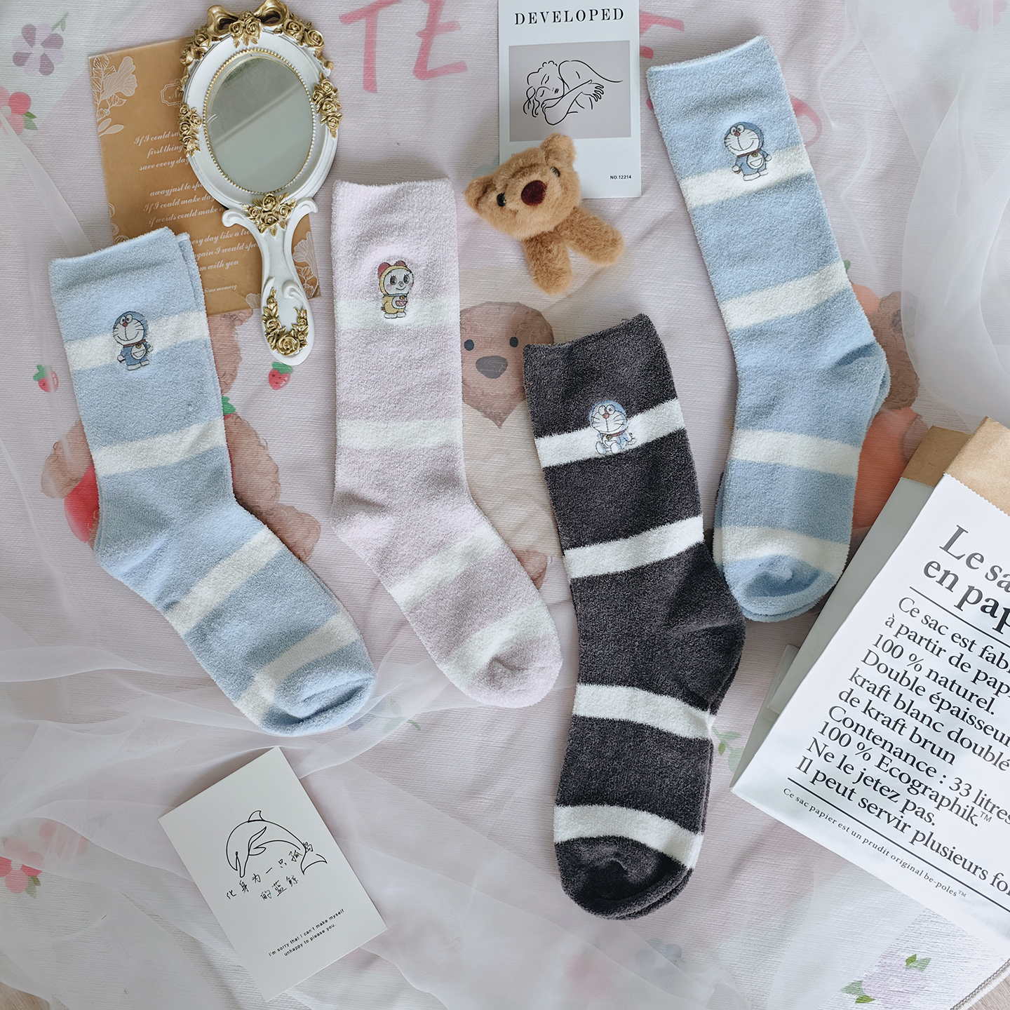日系可愛卡通軟綿綿情侶保暖襪毛毛襪柔軟不勒小腿睡眠襪秋冬新品