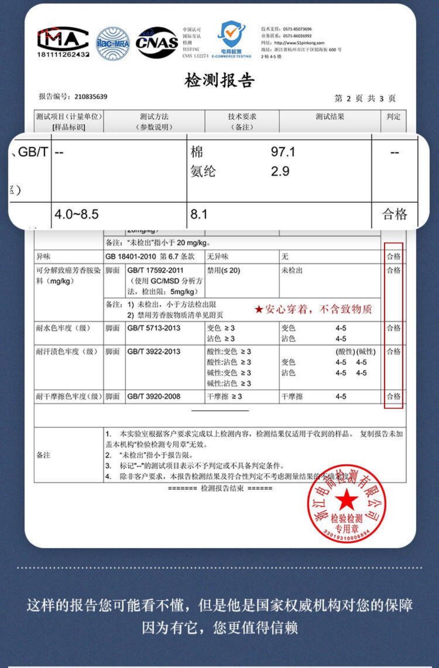 | 面料材質成分 | 棉97.1% 聚氨酯彈性纖維(氨綸)2.9% |