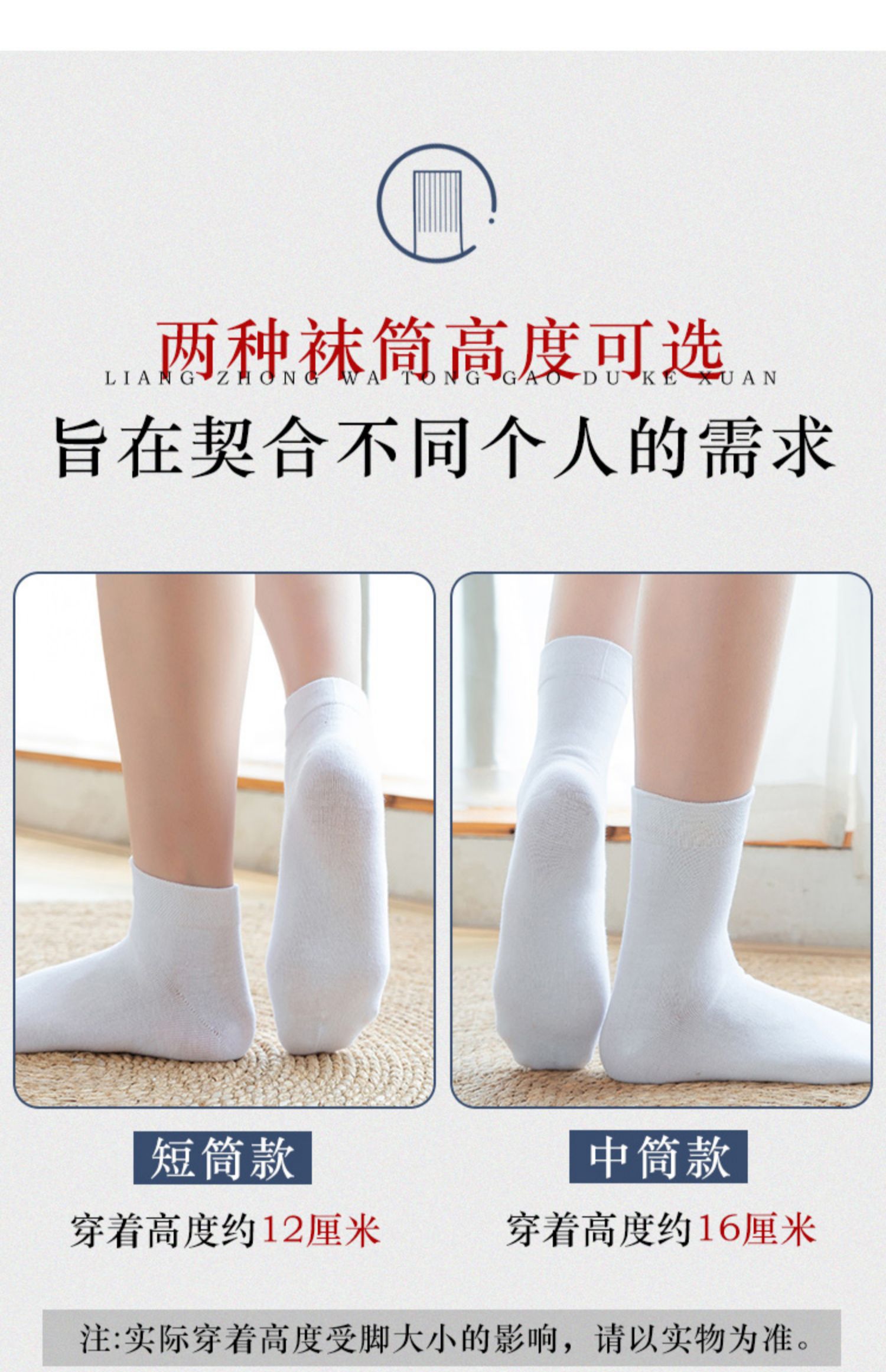 純白色襪子女男春秋季純棉襪純色低幫短襪春夏季薄款中筒運動長襪