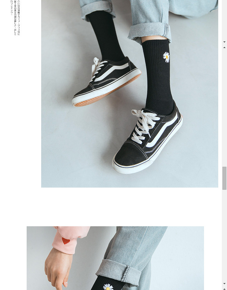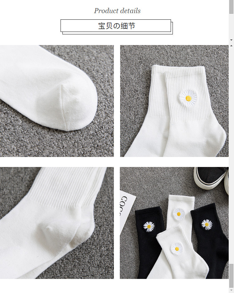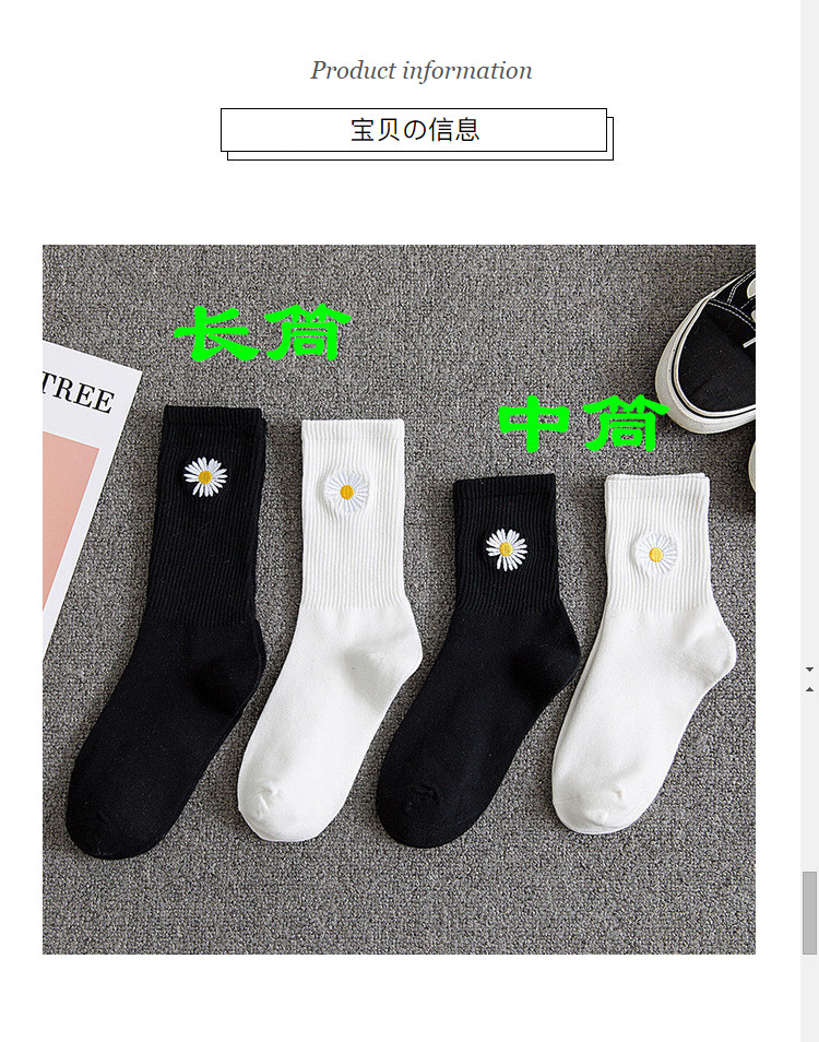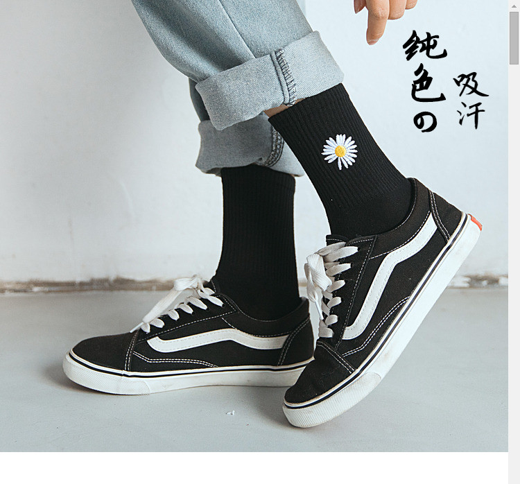 新款小雛菊襪子權志龍同款菊花黑色男運動襪可愛刺綉小花女中筒襪