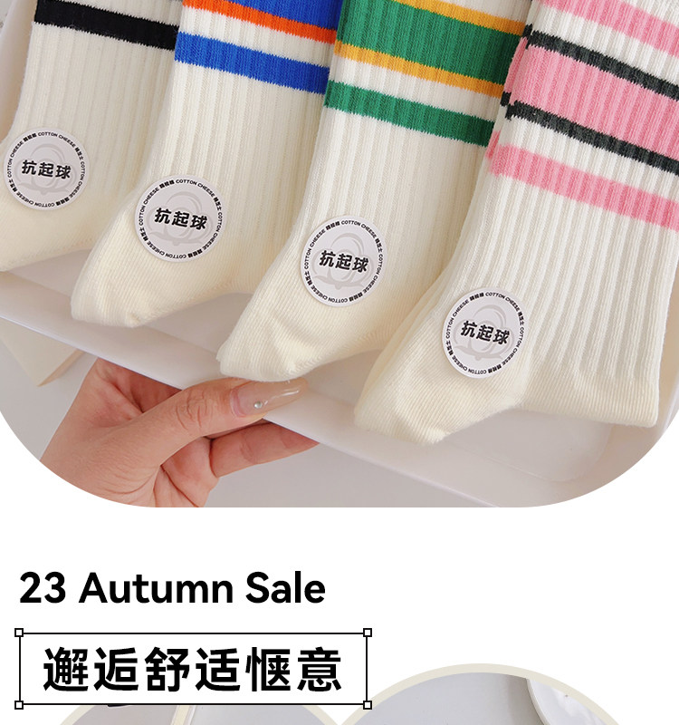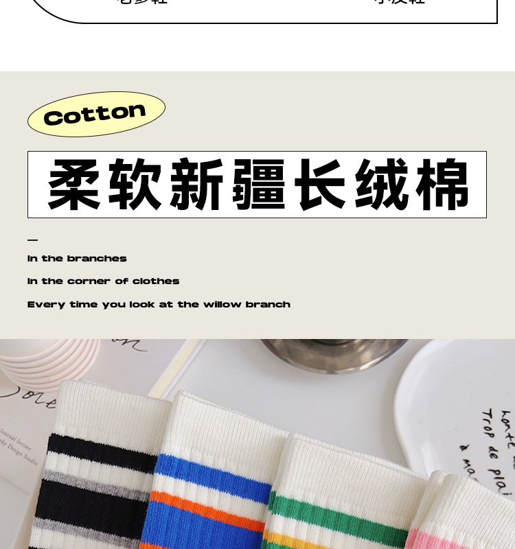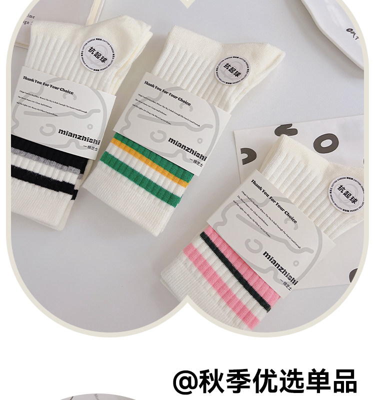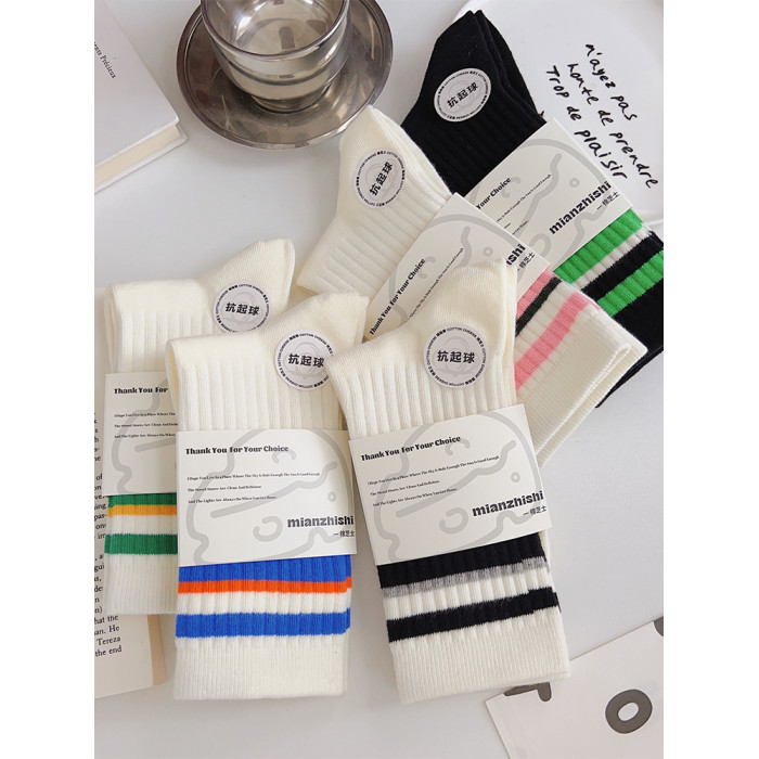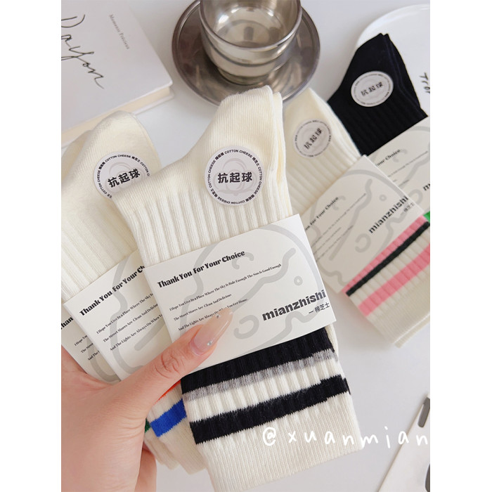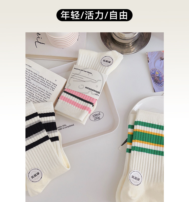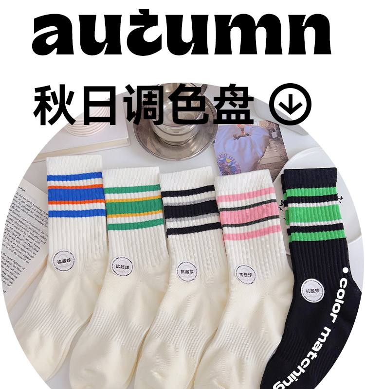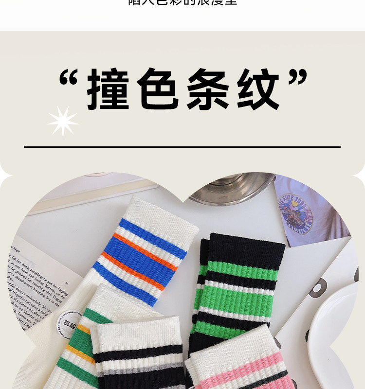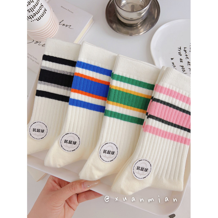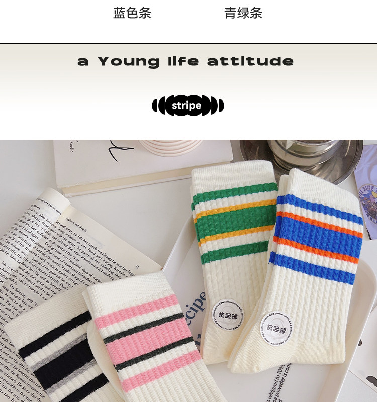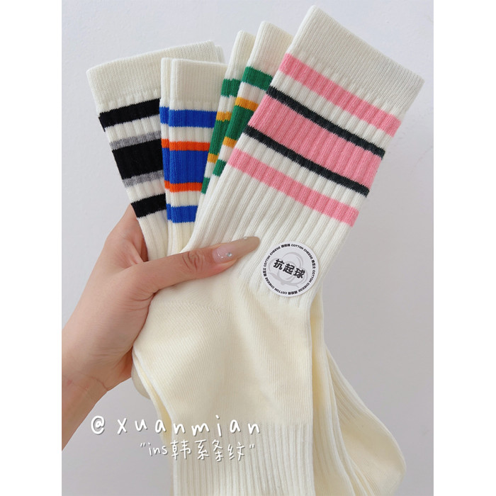 抗起球條紋襪子女中筒襪純棉ins潮配鯊魚褲春秋款情侶運動長襪女