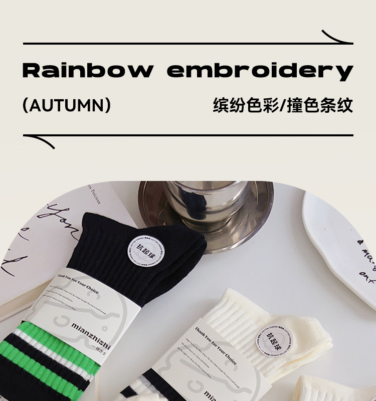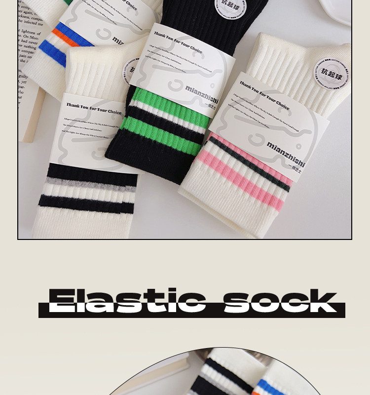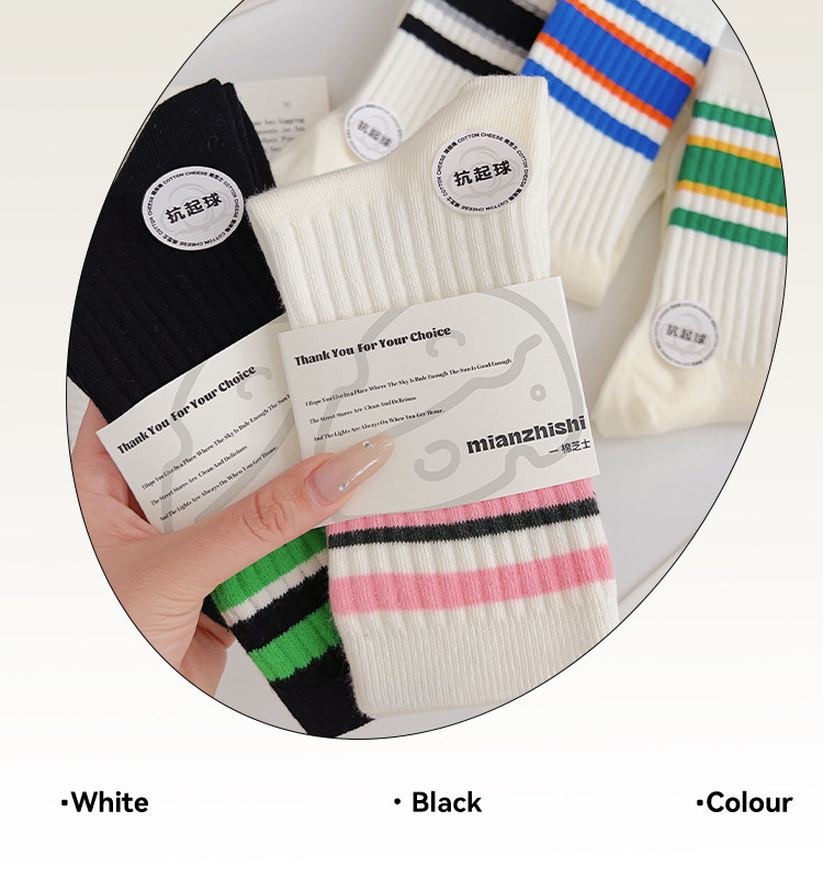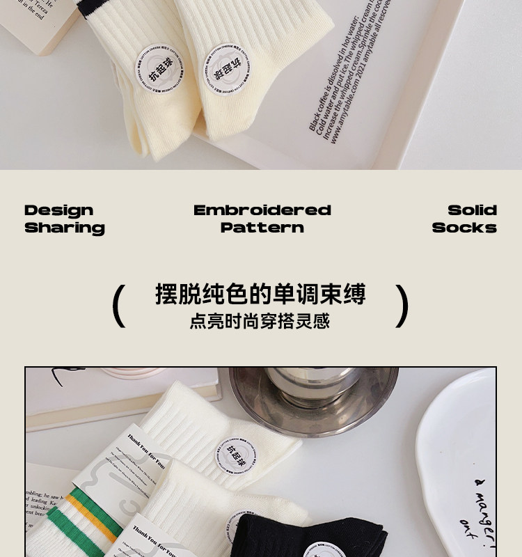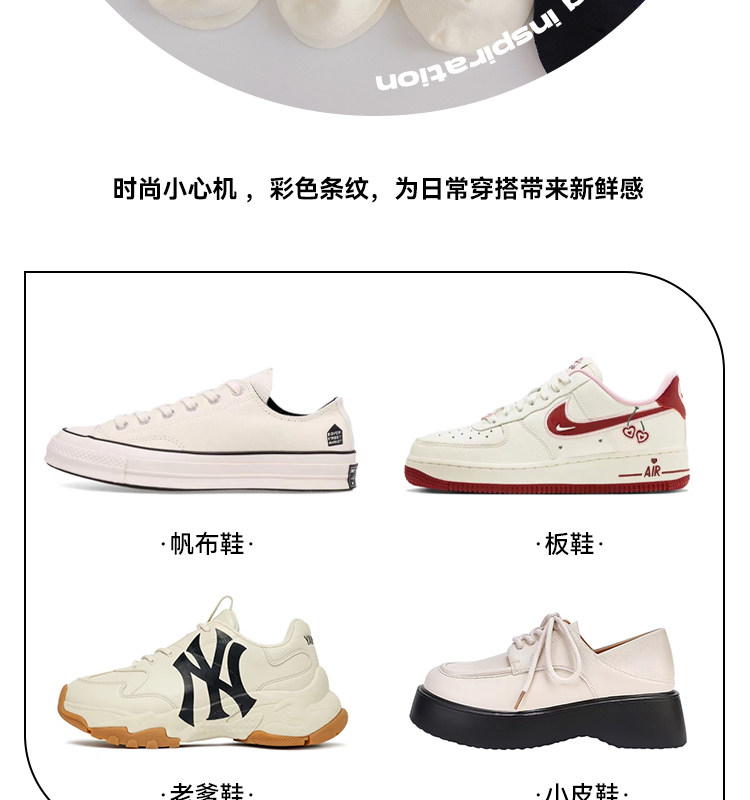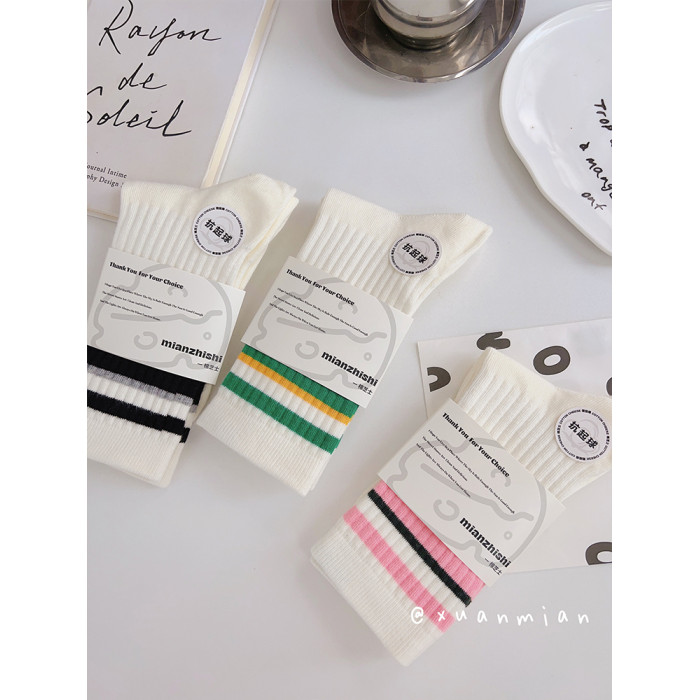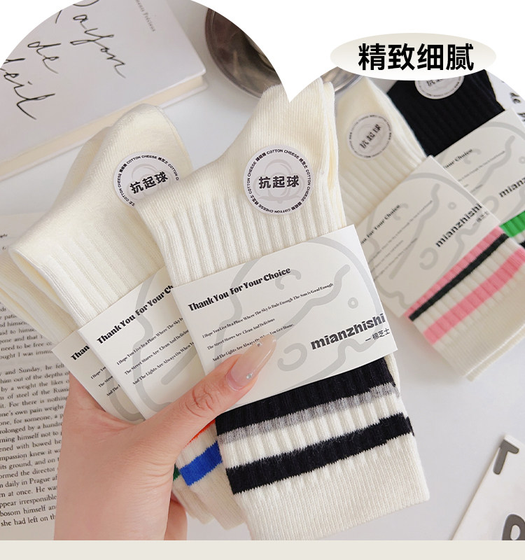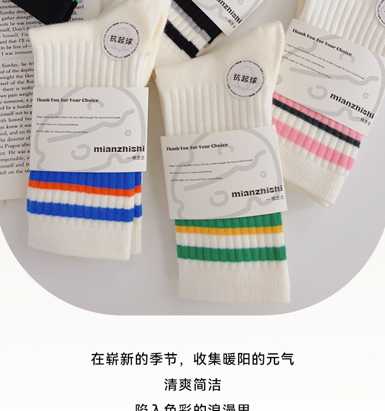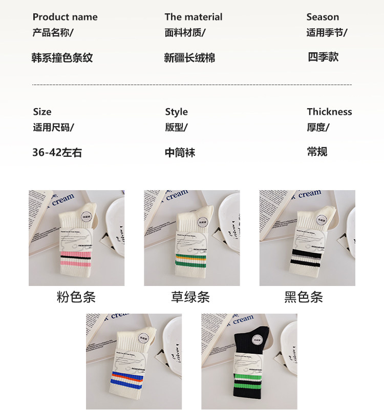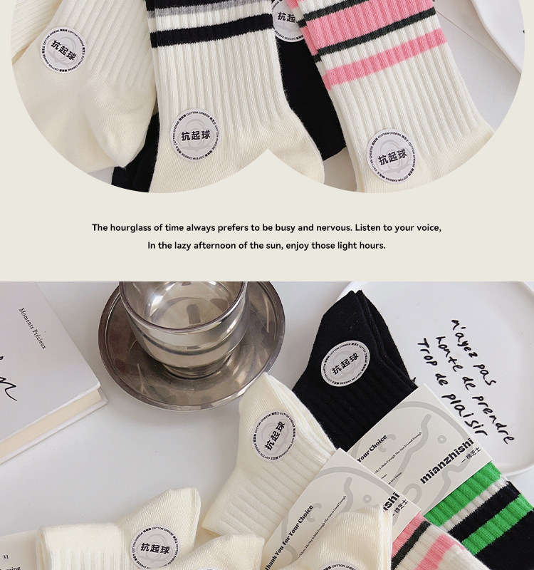 抗起球條紋襪子女中筒襪純棉ins潮配鯊魚褲春秋款情侶運動長襪女