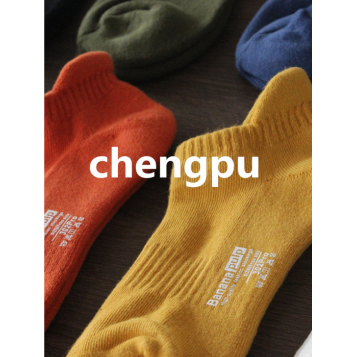 彩色毛巾底襪子男短襪秋冬短筒毛圈運動襪加厚純色低幫矮腰毛巾襪