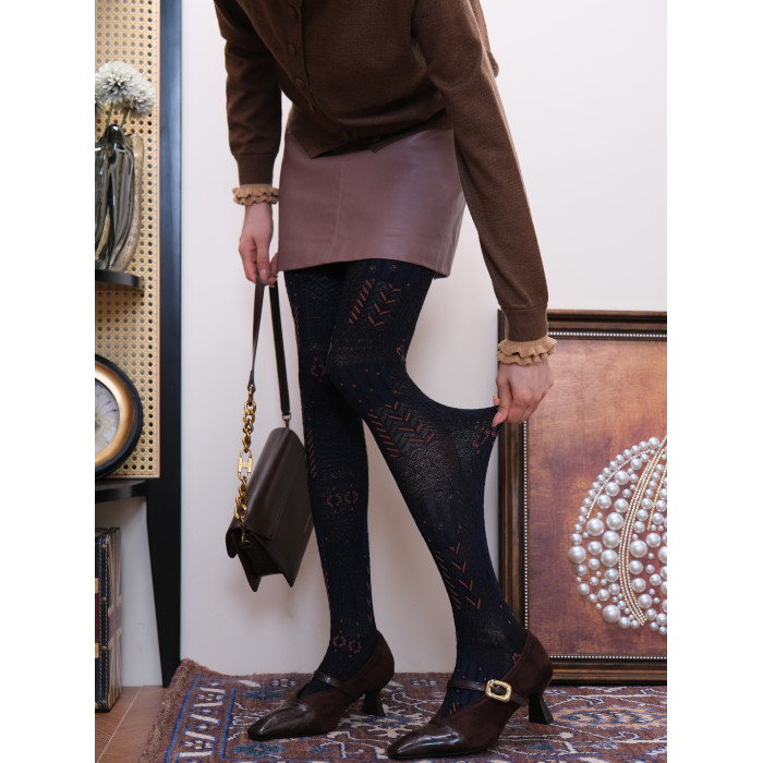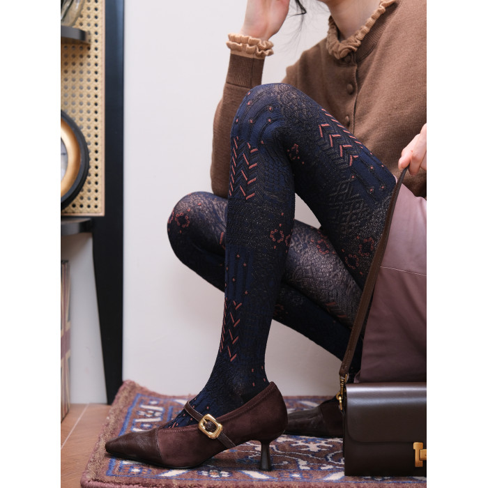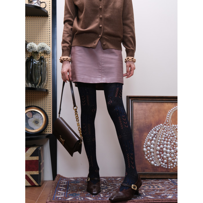 布爾喬亞靛藍色私藏7st island秋冬日系古著感精織打底褲連褲襪女