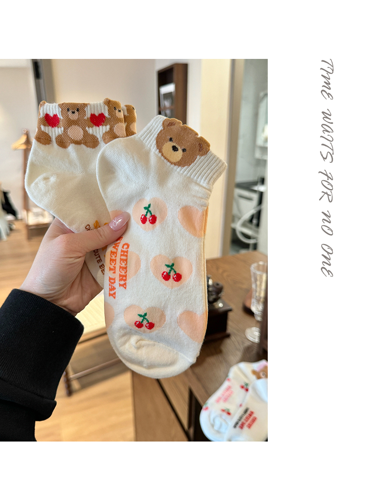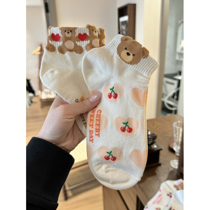 洞洞鞋襪子可愛卡通女短筒夏季薄純棉低幫小熊潮凸凸淺口運動春秋
