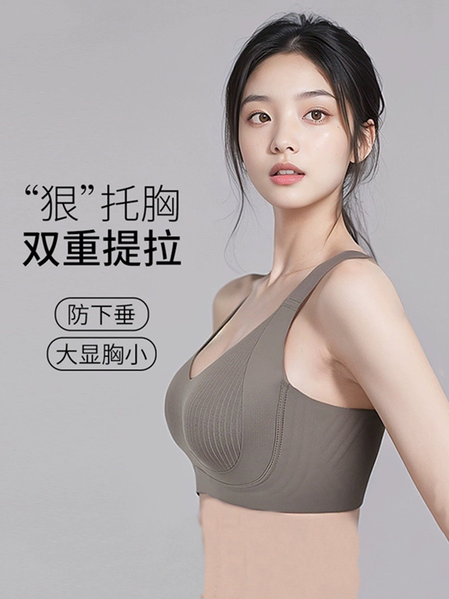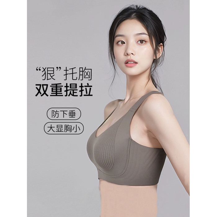 好奈斯無痕內衣女大胸顯小防下垂全罩杯無鋼圈調整型運動文胸船襪