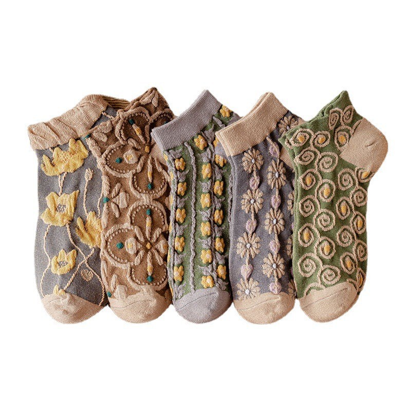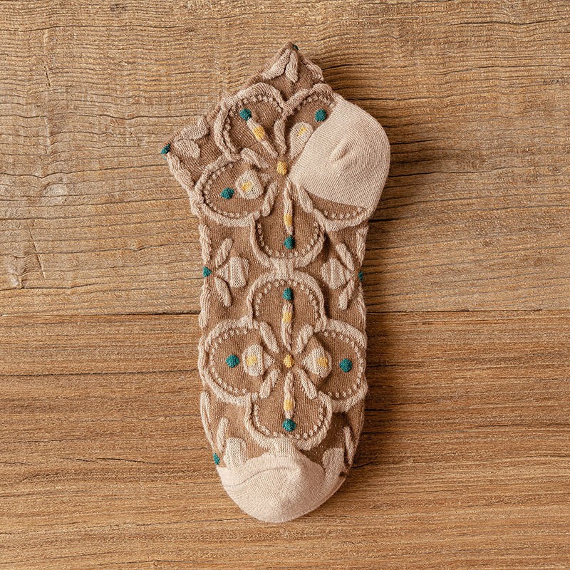 復古風襪子女短襪不掉跟森系潮襪浮雕女短襪宮廷低幫短襪百搭