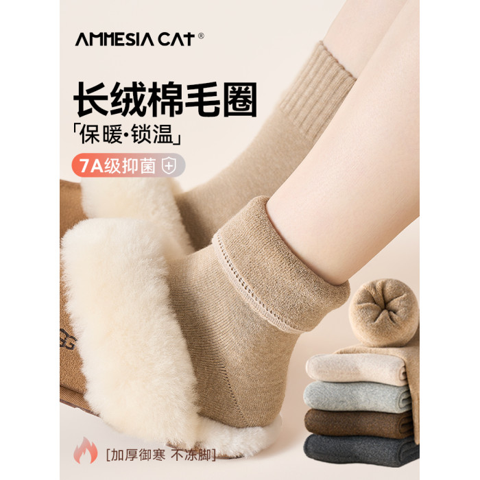 雪地靴襪子女秋冬款厚襪子加絨毛圈襪加厚保暖地板襪冬季中筒襪女