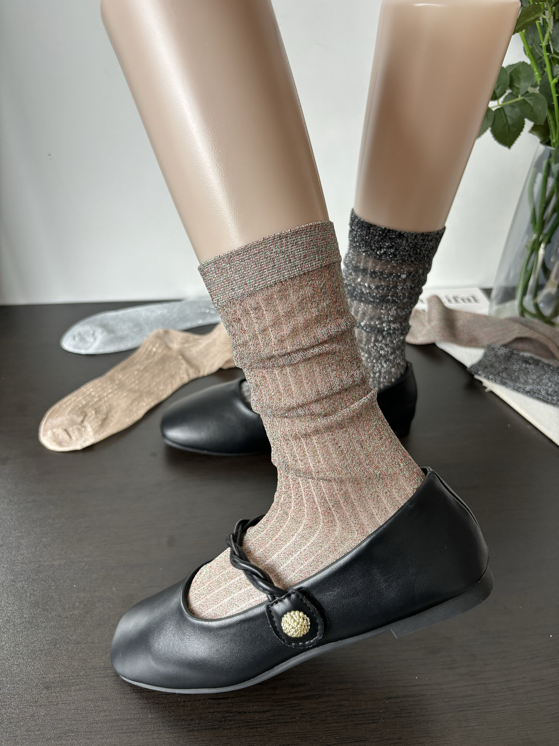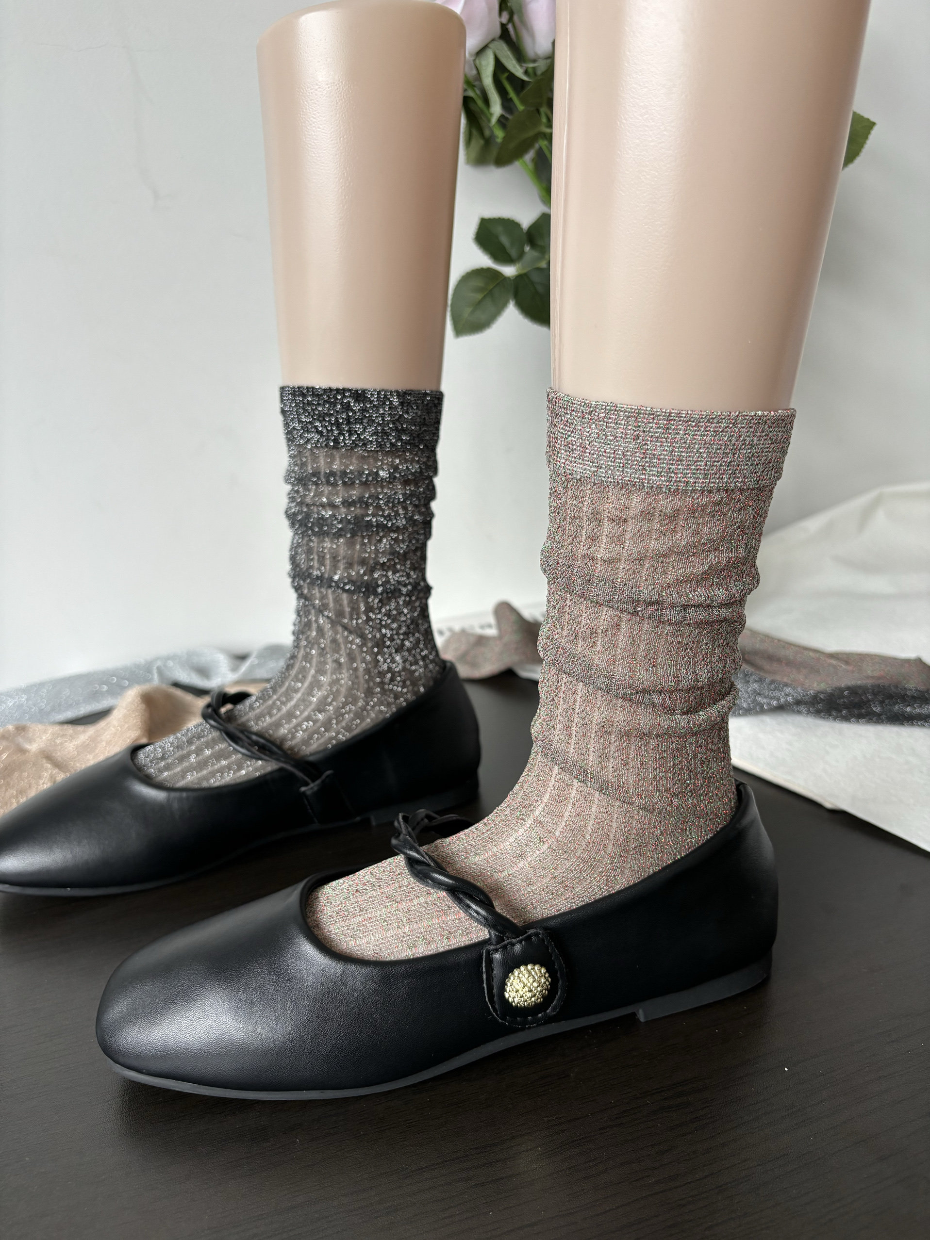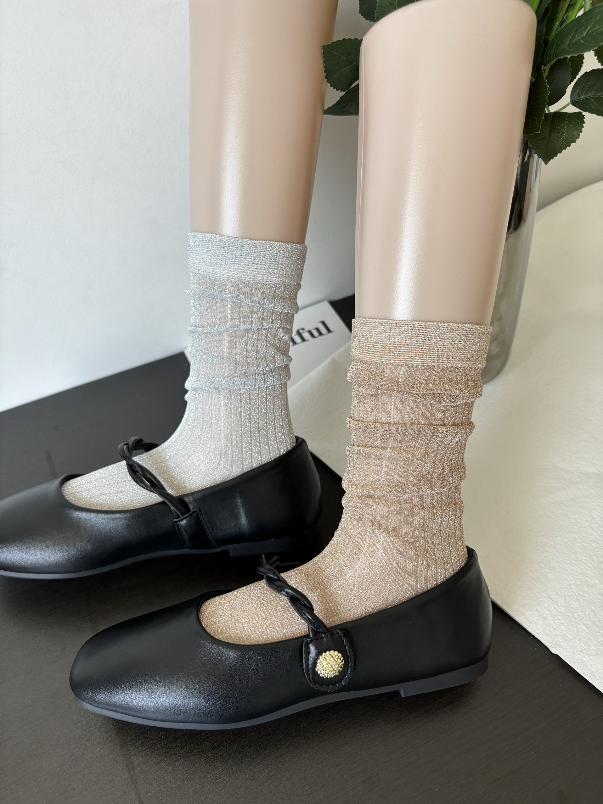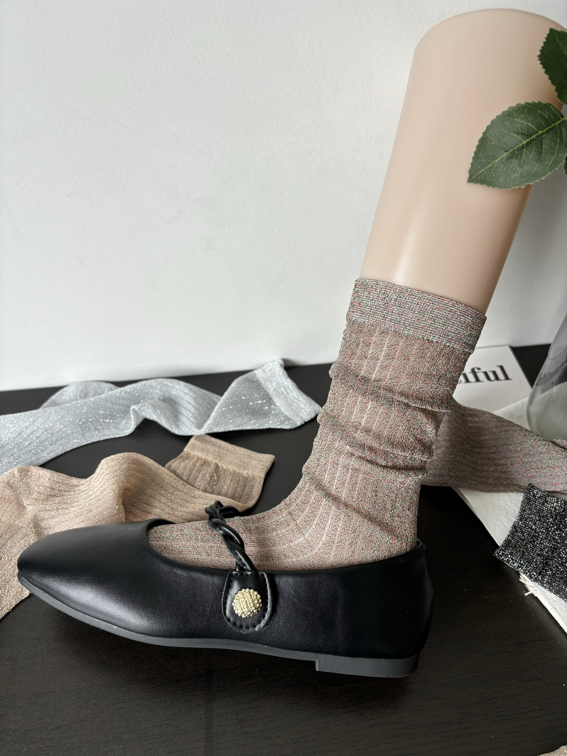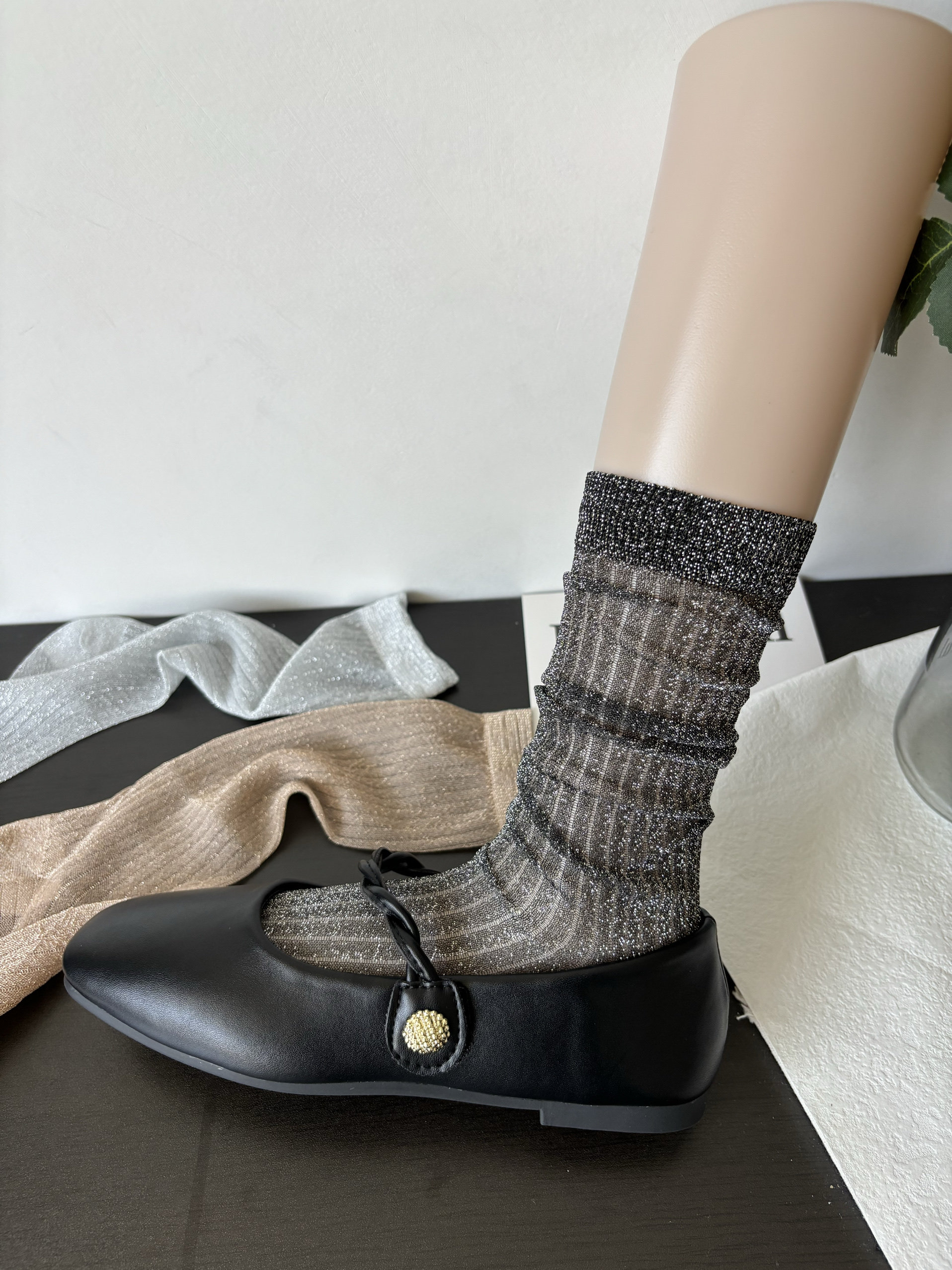 夏季薄款微閃亮絲襪子女中筒襪ins潮復古時髦竪條紋走秀款堆堆襪